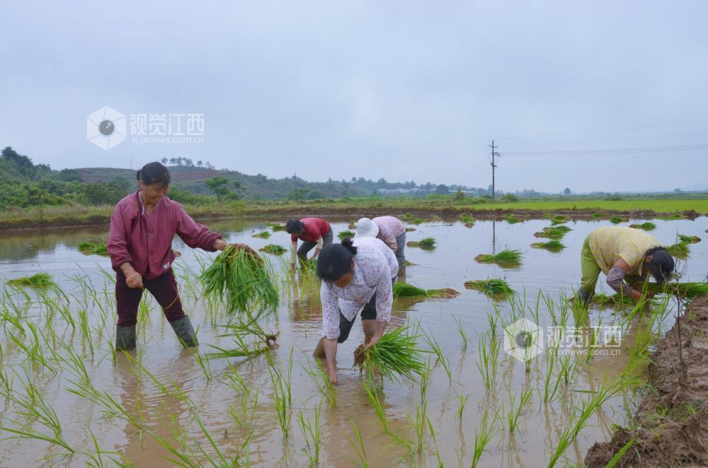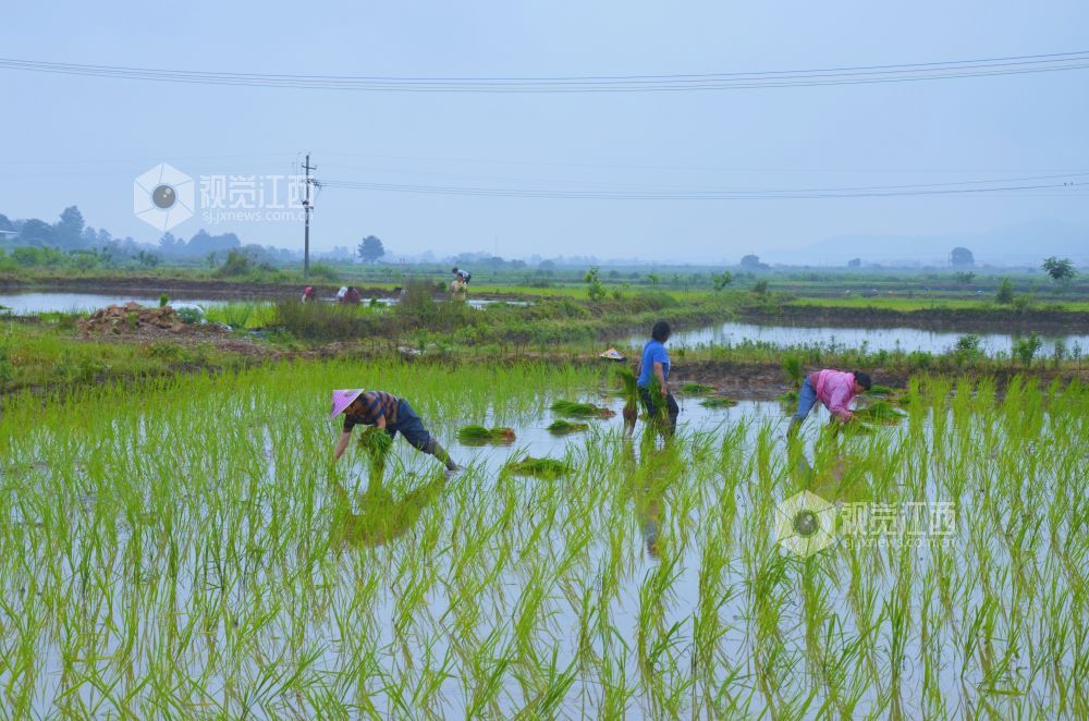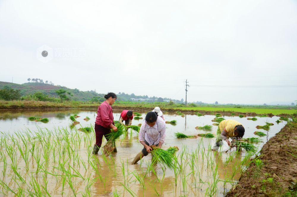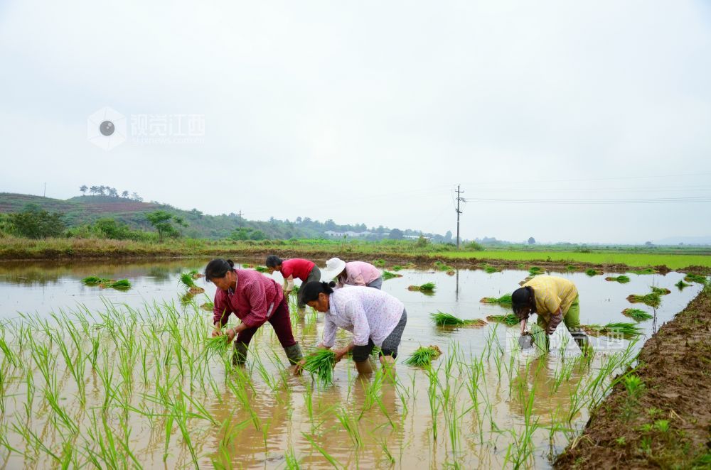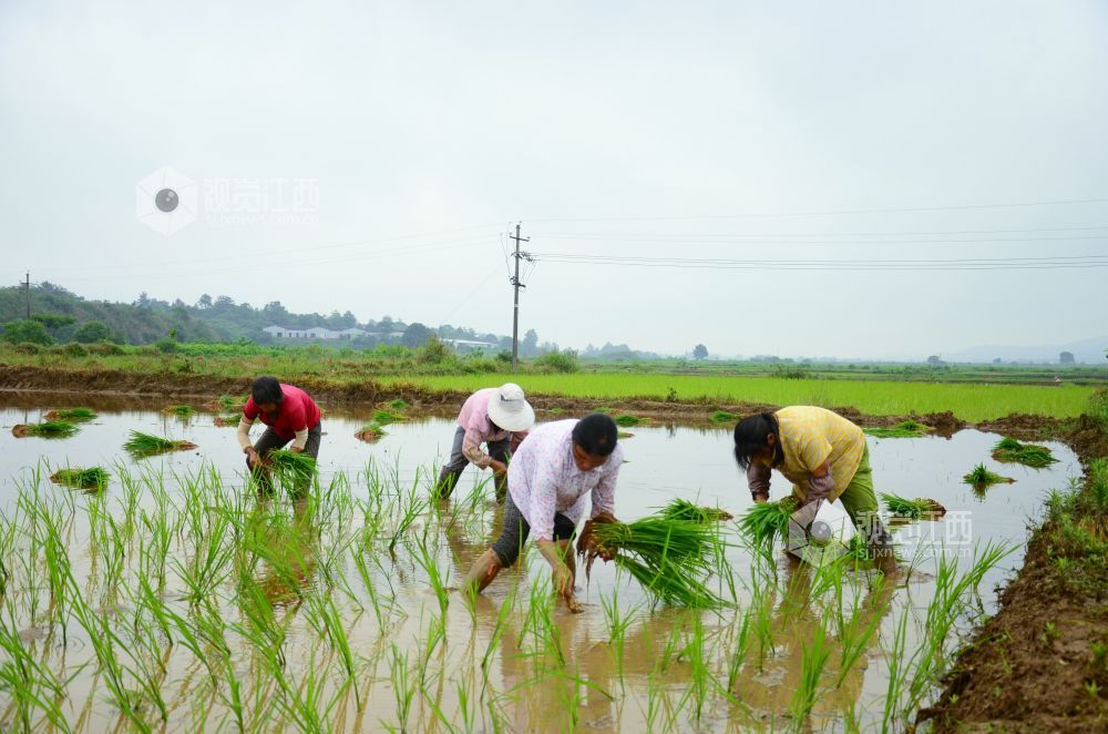 时下正是中稻插秧有利时节,永新县各乡镇农民抢抓农时进行插秧,确保中稻丰收。