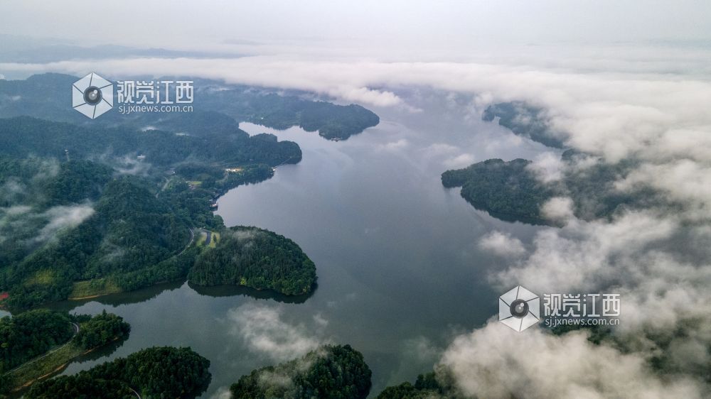 6月14日,久雨初晴,江西省新余市仙女湖上空云海翻涌,十分壮观。