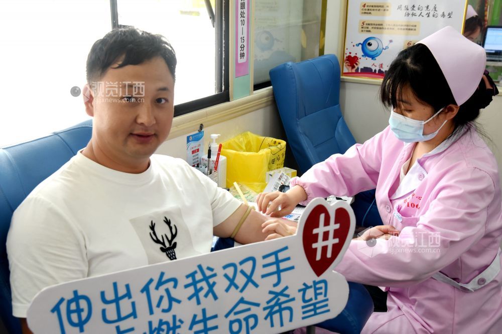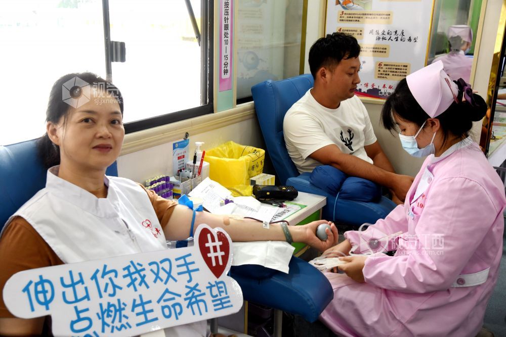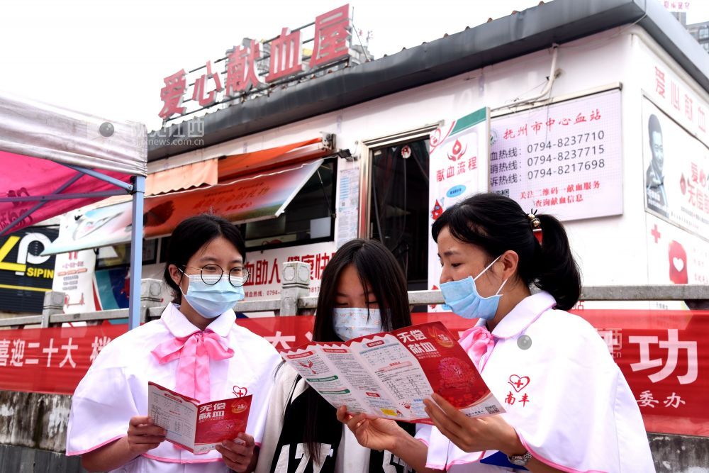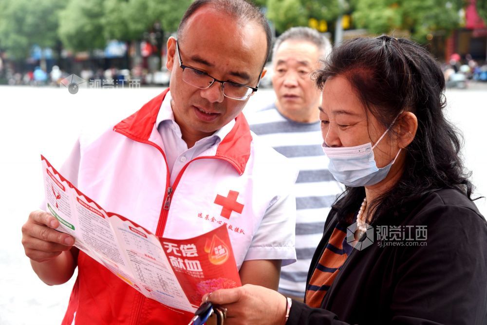 2022年6月14日,由江西省抚州市南丰县卫健委、县红十字会联合举行的“献血是一种团结行为。加入我们,拯救生命。”活动在县中兴广场爱心献血屋进行。