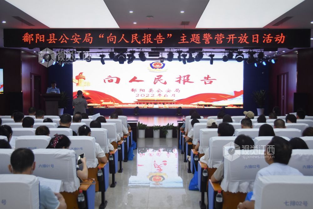 2022年6月15日,江西省鄱阳县公安局举行“向人民报告”主题警营开放日活动,邀请县人大代表、县政协委员、社区干部代表、学生代表等走进警营,近距离了解、体验公安工作。 构建和谐警民关系,增强人民群众对公安工作的信任和支持,切实提升人民群众的安全感、满意度。