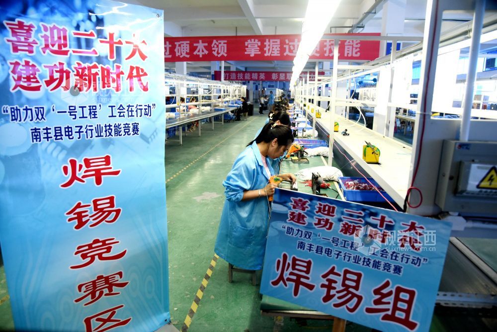 2022年6月16日,江西省南丰县举办喜迎二十大 建功新时代 “助力双‘一号工程’工会在行动”全县电子行业技能竞赛,40余名企业职工参加了此次技能竞赛决赛。