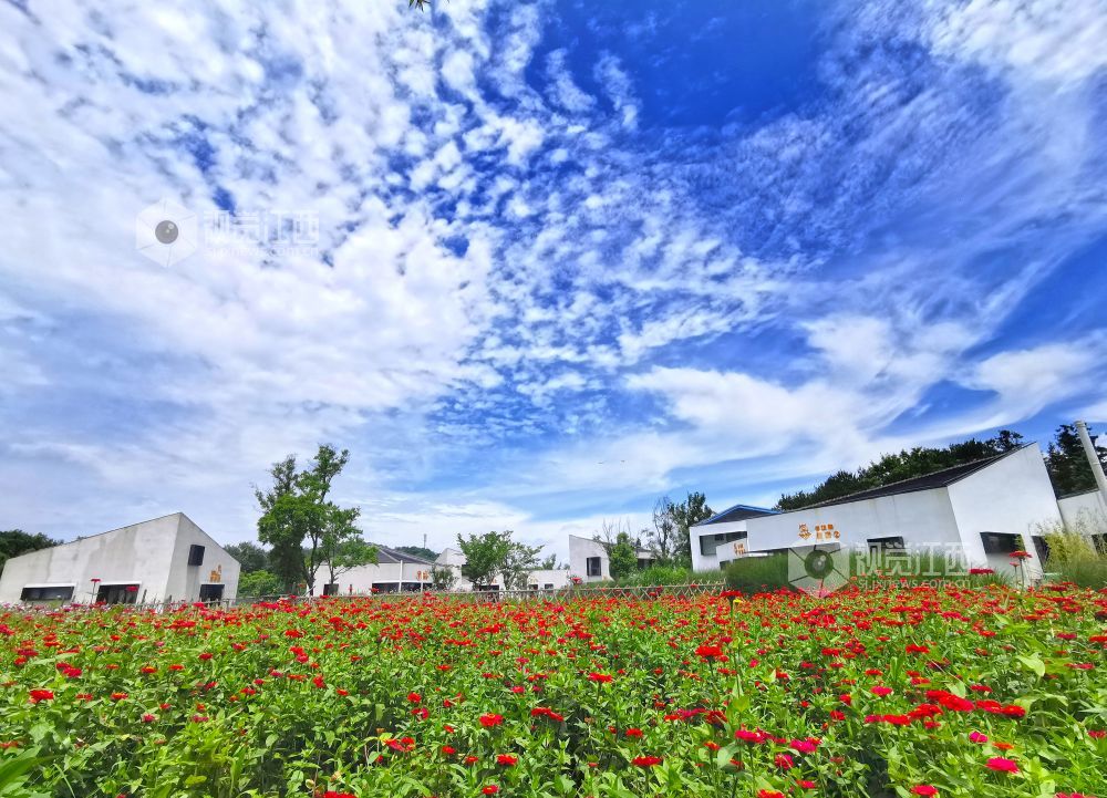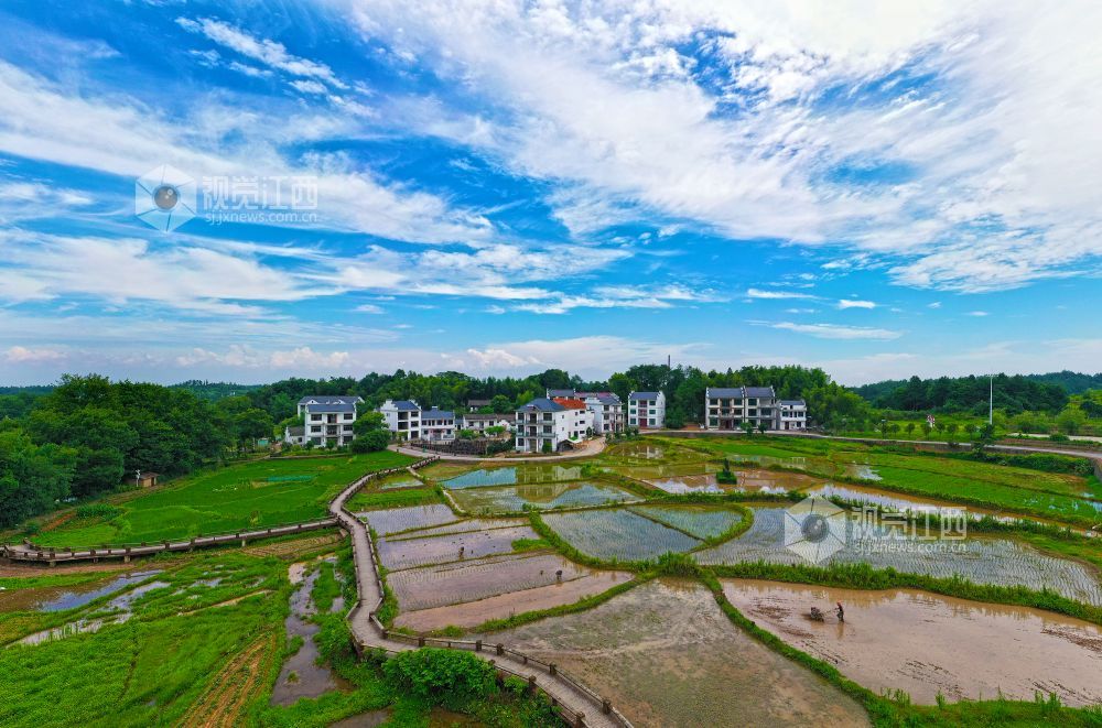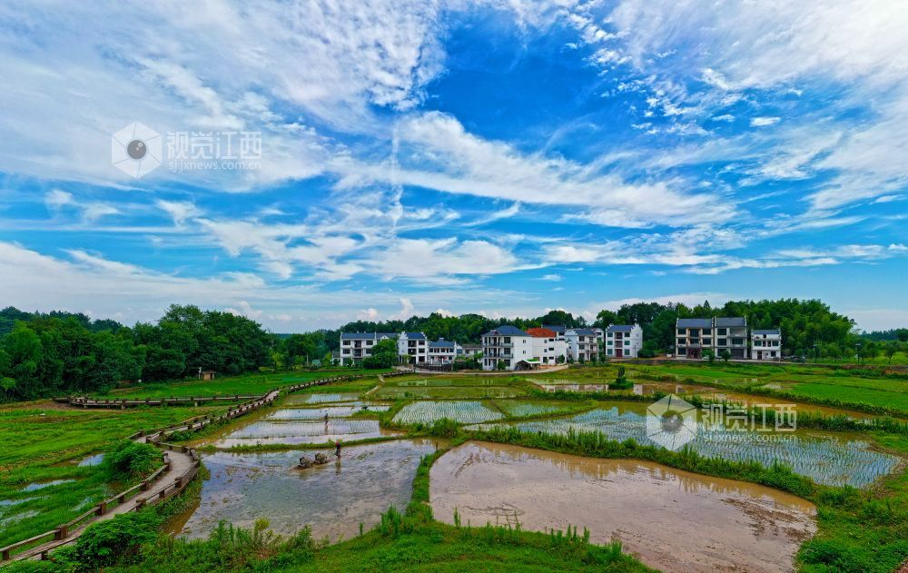 2022年6月17日,航拍江西省上饶市铅山县鹅湖镇紫竹林,青瓦白墙的乡村民居在蓝天白云、青山绿水环抱中,显得格外迷人。
