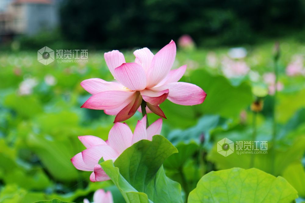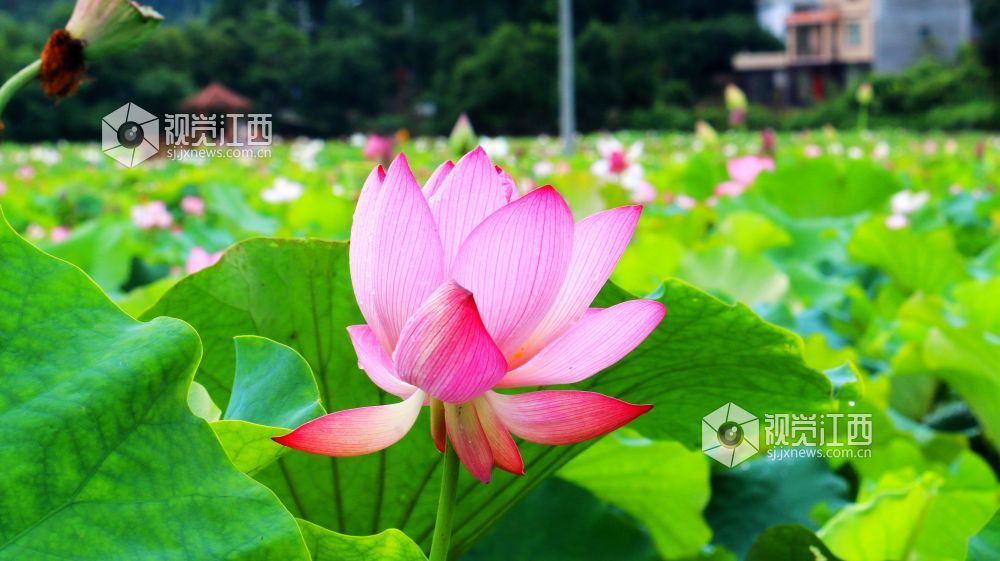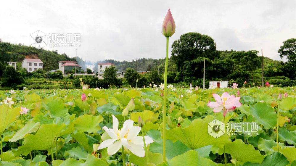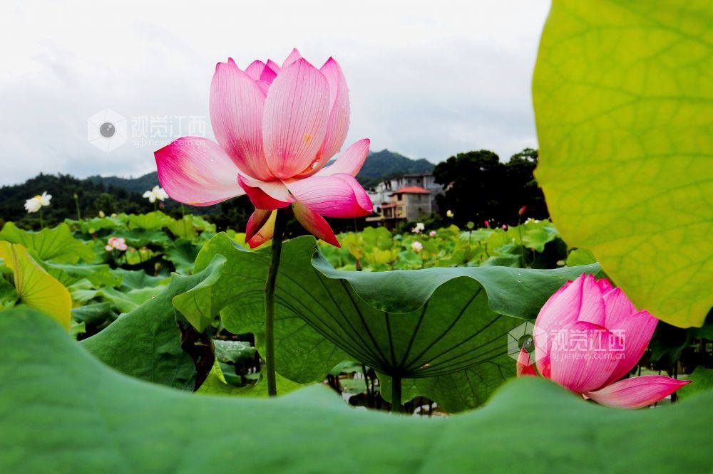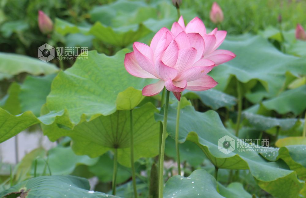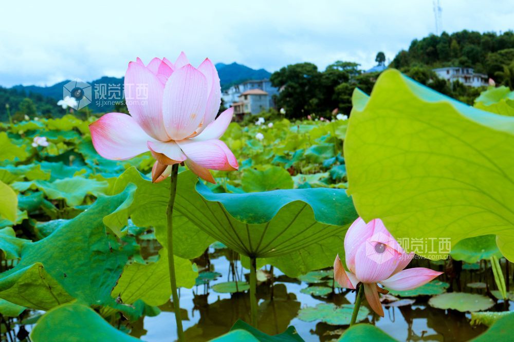 2022年6月18日,江西省遂川县碧洲镇良岗村田园里朵朵荷花竞相绽放。