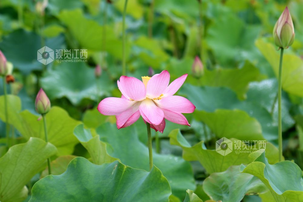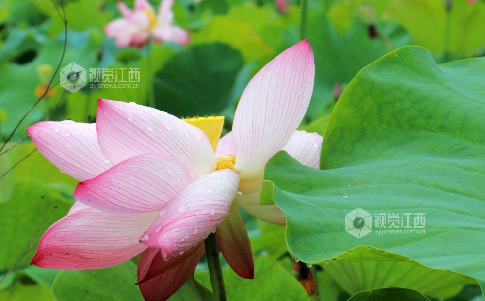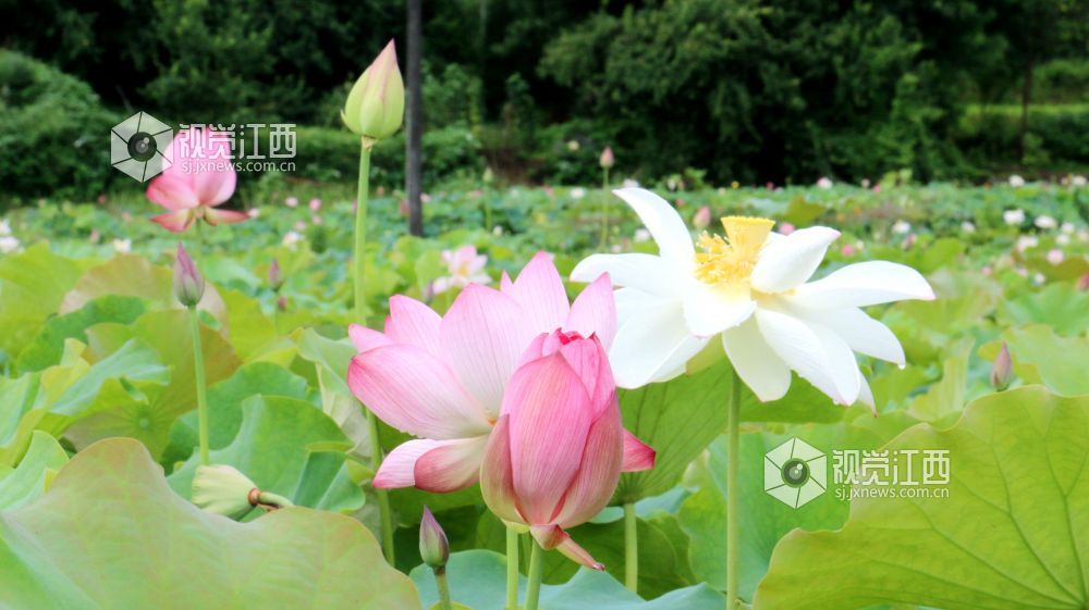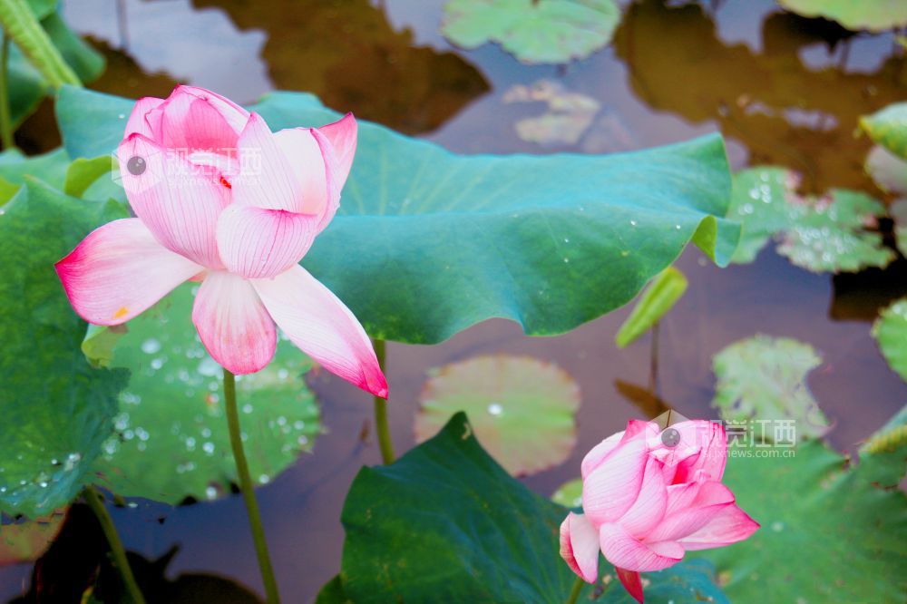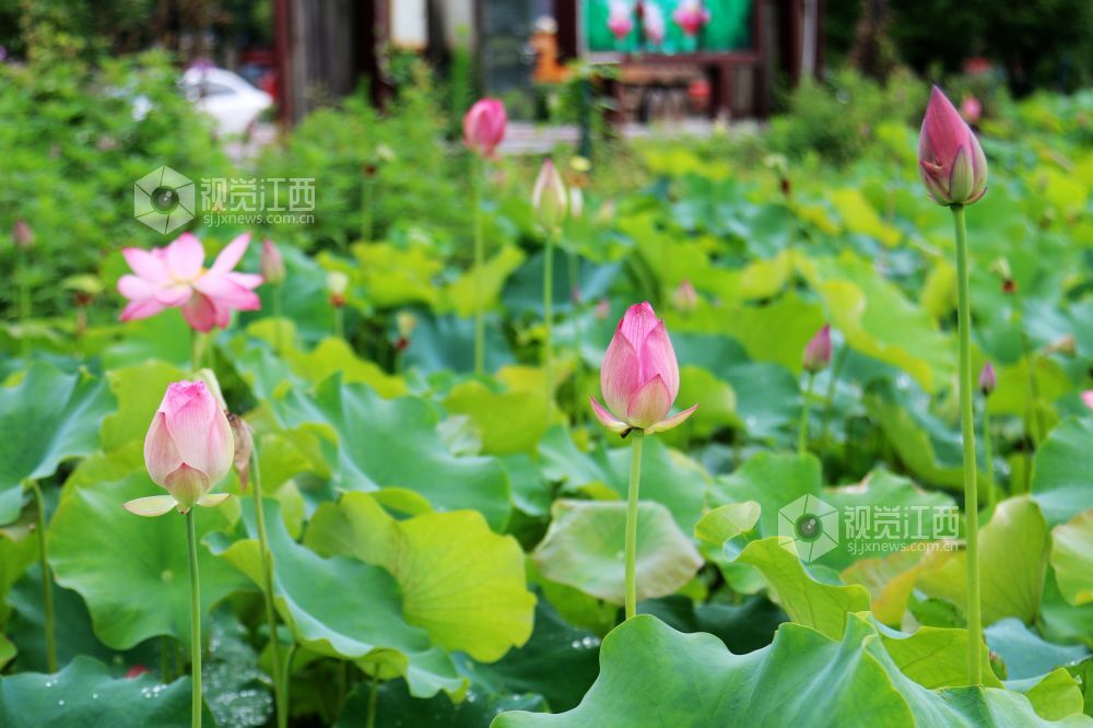 2022年6月18日,江西省遂川县碧洲镇良岗村田园里朵朵荷花竞相绽放。