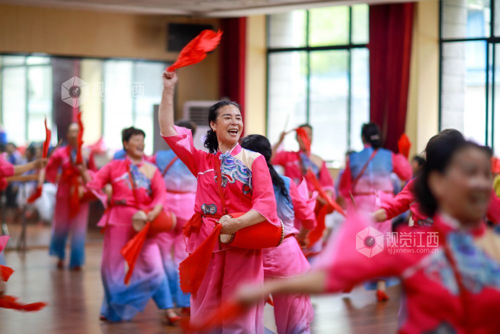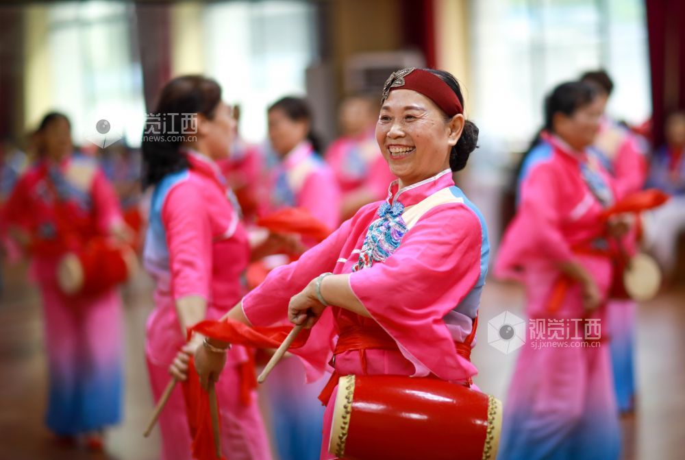 2022年6月21日,江西省吉安市吉水县老年大学,老年学员正在开心打腰鼓。近年来,江西省吉安市吉水县老年大学以“老有所教,老有所学,老有所乐,老有所为”为宗旨,精准对接老年人需要,开设音乐舞蹈、书法美术、中医养生、营养烹饪等老年人喜闻乐见的课程,着力打造良好学习环境,积极营造文化娱乐氛围,让老年大学成为老年朋友的温馨家园。