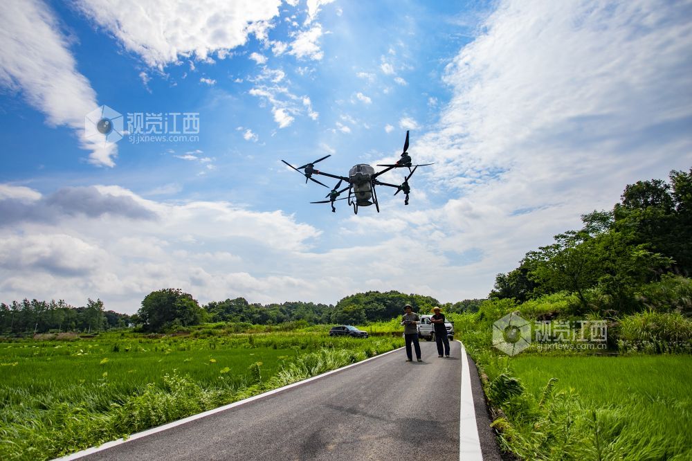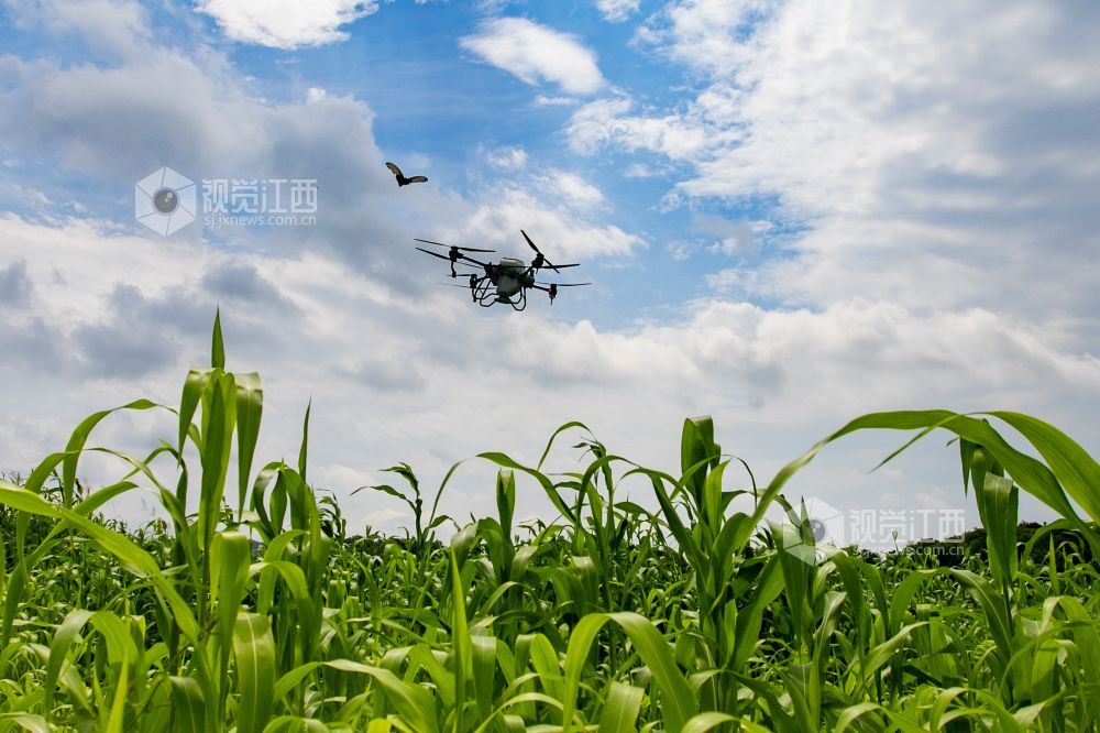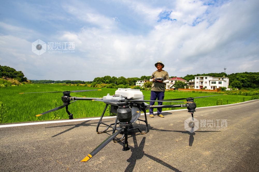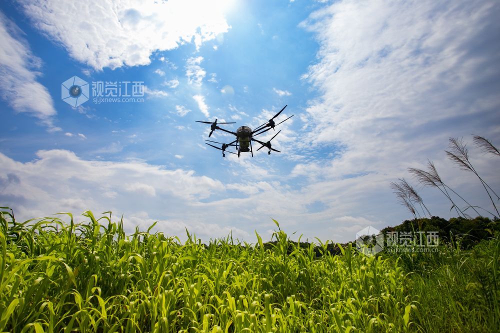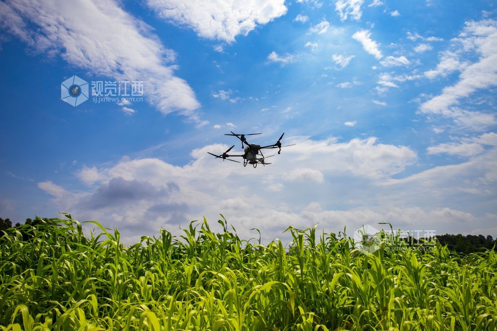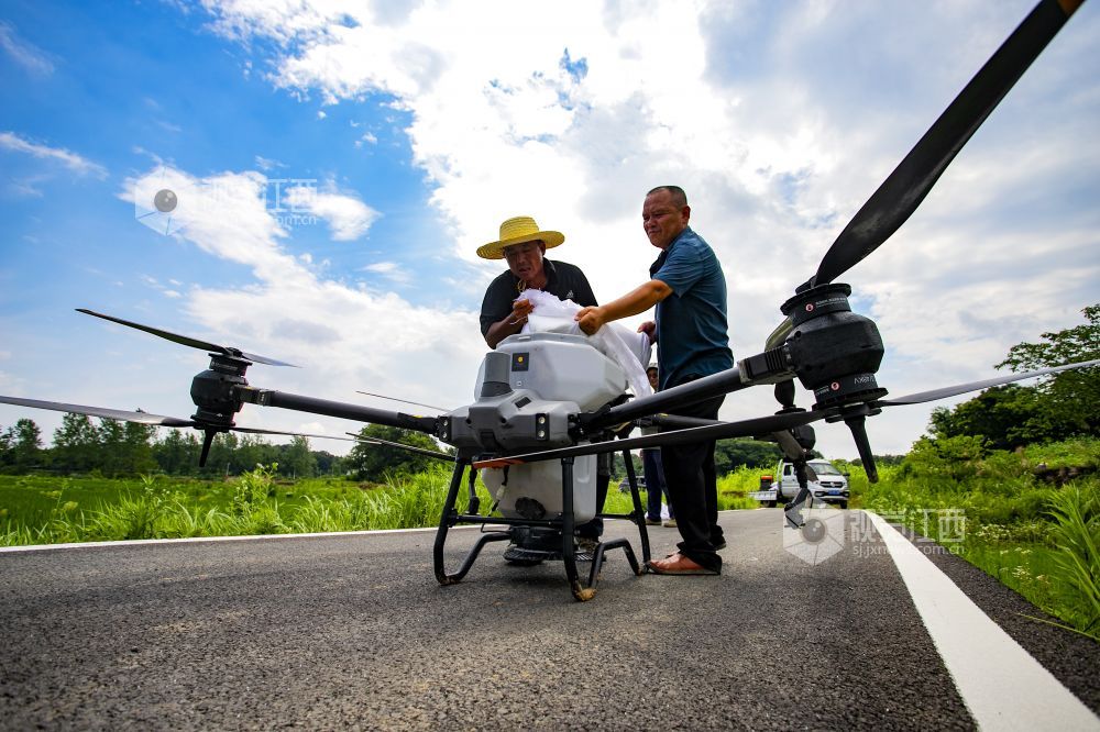 2022年6月23日,江西省九江市湖口县农技专员正在操作无人机给高粱施肥。“三夏”时节,湖口县农业农村部门送农技服务下乡,科学组织指导农户适时开展农事作业,为全年粮食丰产丰收奠定坚实基础。