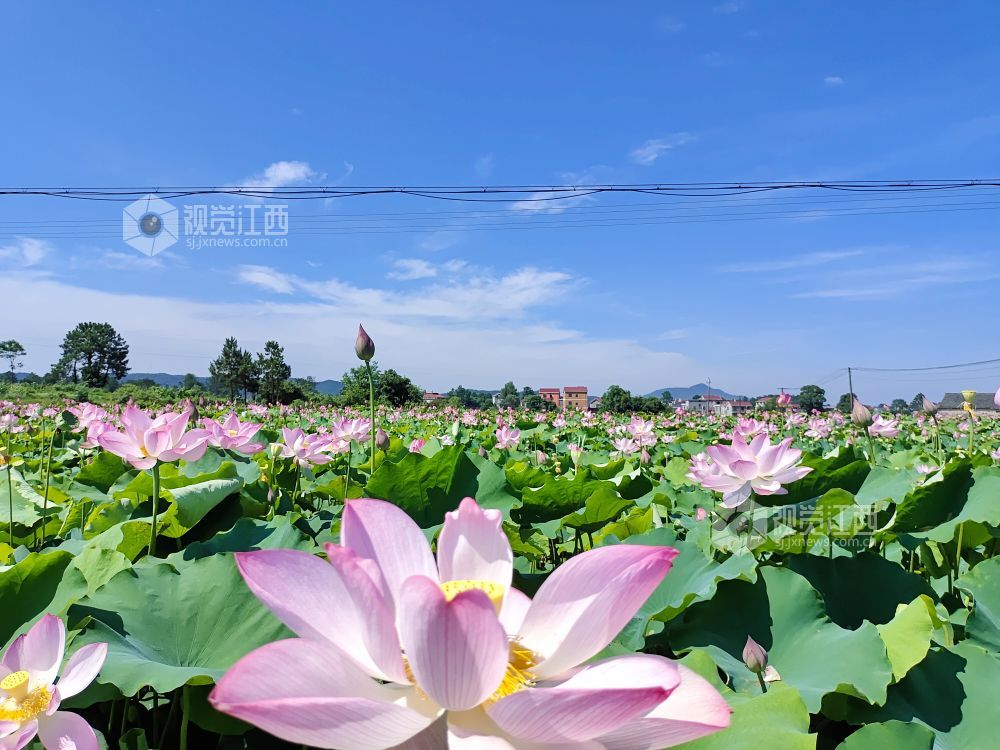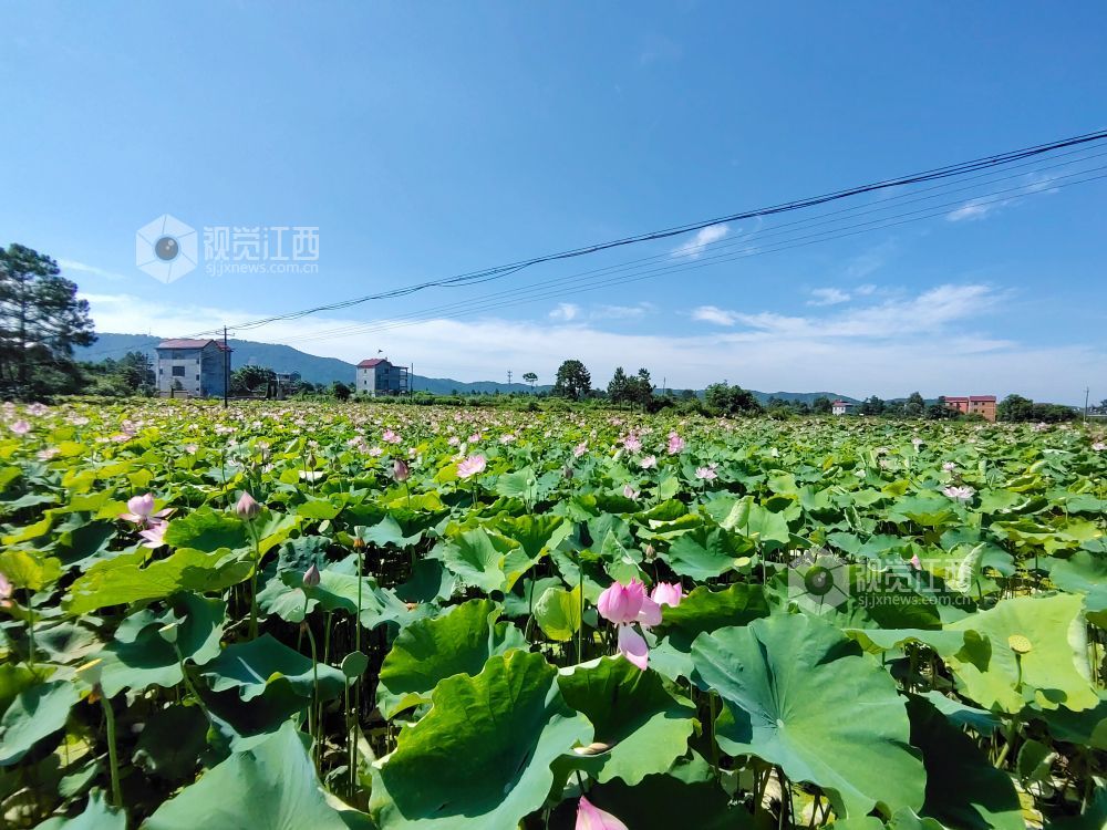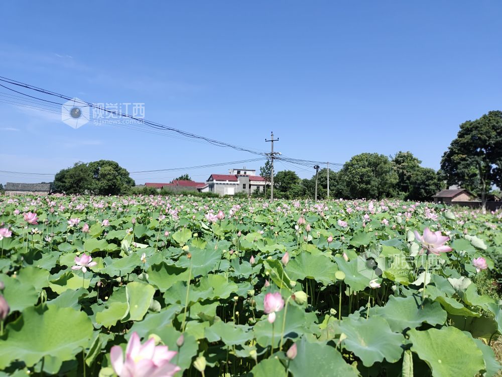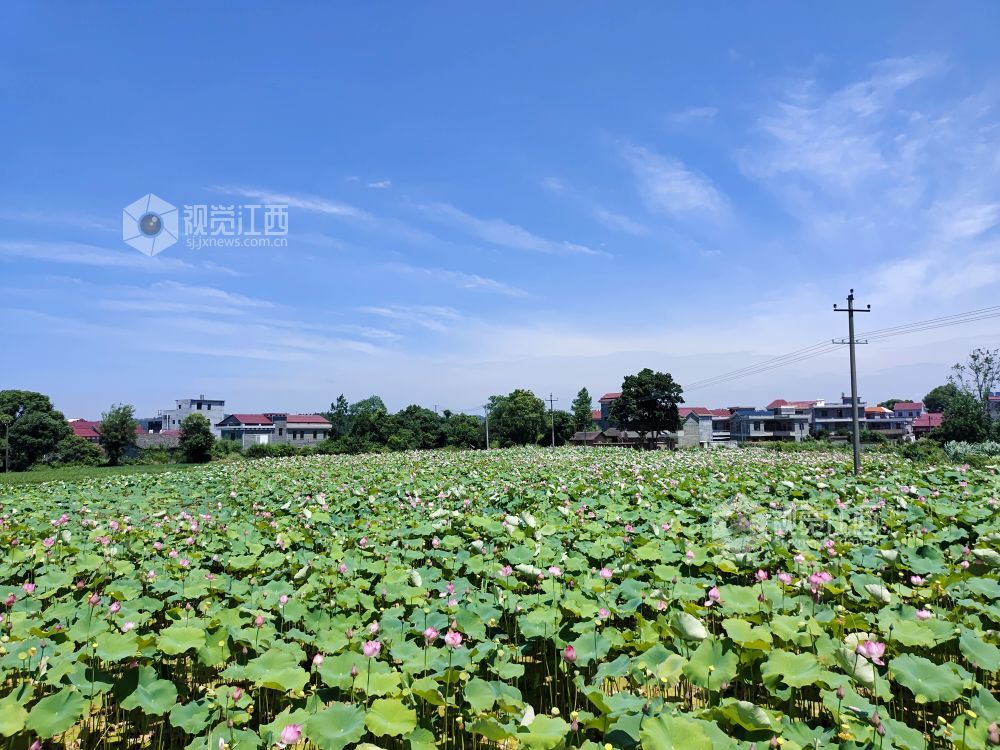 6月24日,江西省吉安市泰和县南溪乡锦溪村的一大片的荷花竞相绽放。