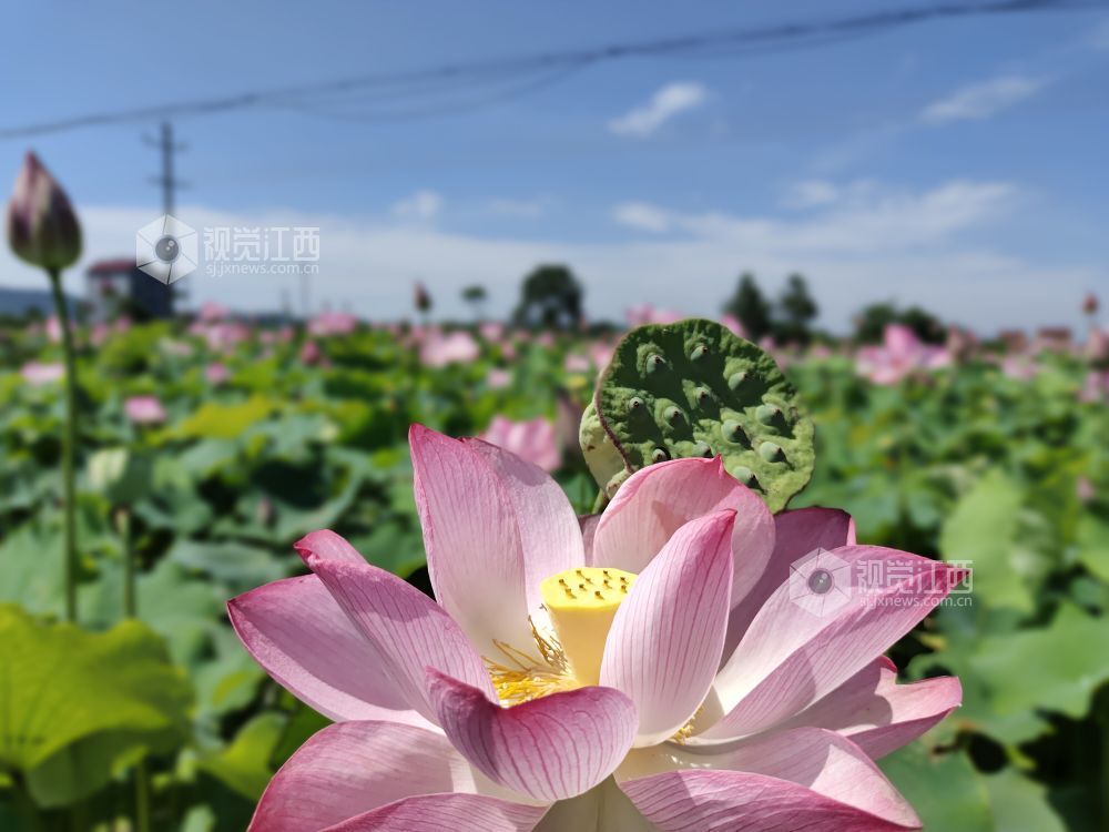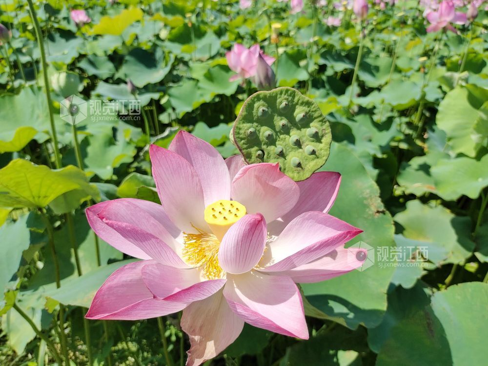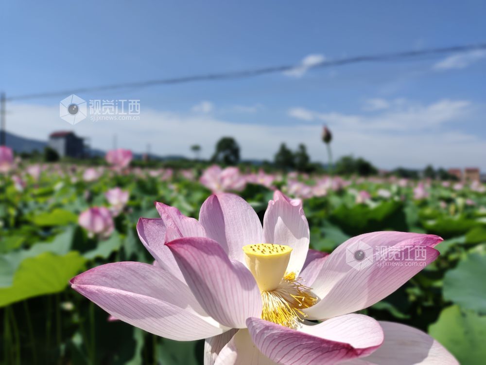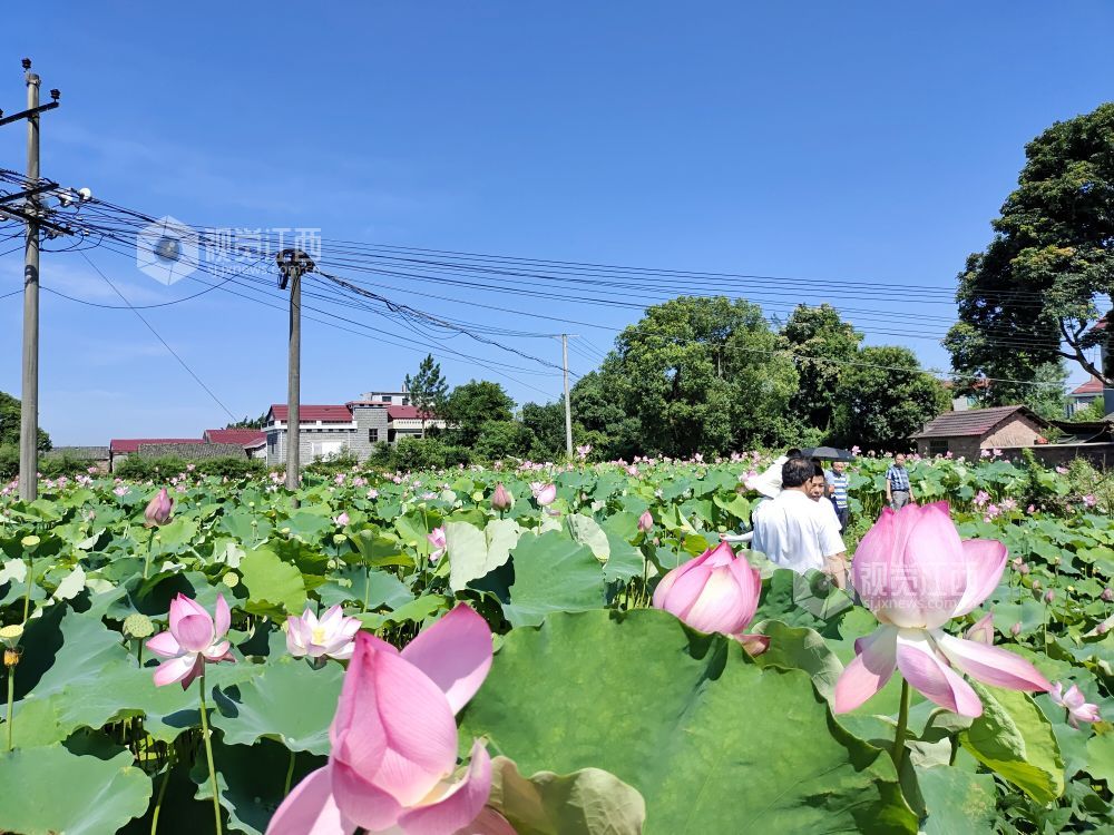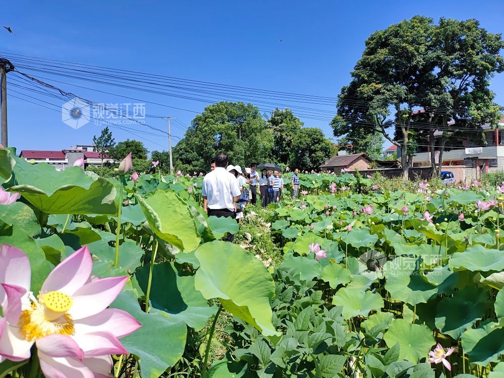 6月24日,江西省吉安市泰和县南溪乡锦溪村的一大片的荷花竞相绽放。