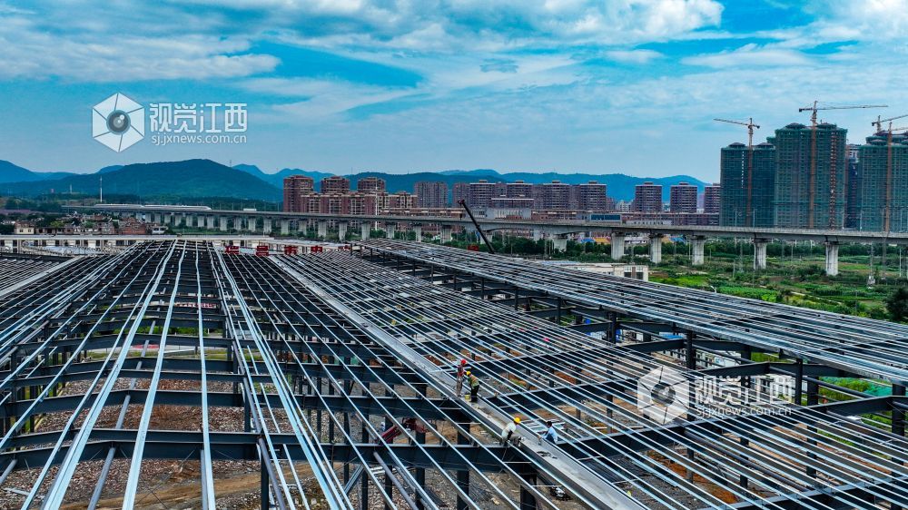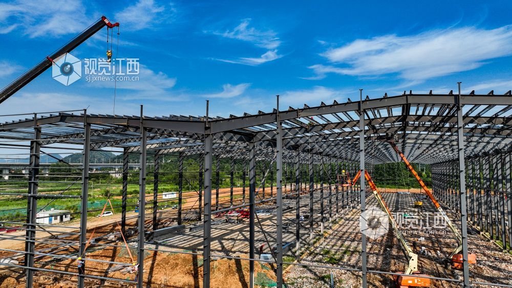 6月25日,江西省瑞昌市大唐新区联盛智慧物流仓储园项目工地上,工人们正在进行钢结构吊装及焊接施工。该项目建成后,将构建起业内先进的四维智能管理系统,提高物流整体作业效率,实现智能化、标准化、机械化、无纸化的现代绿色物流园区。