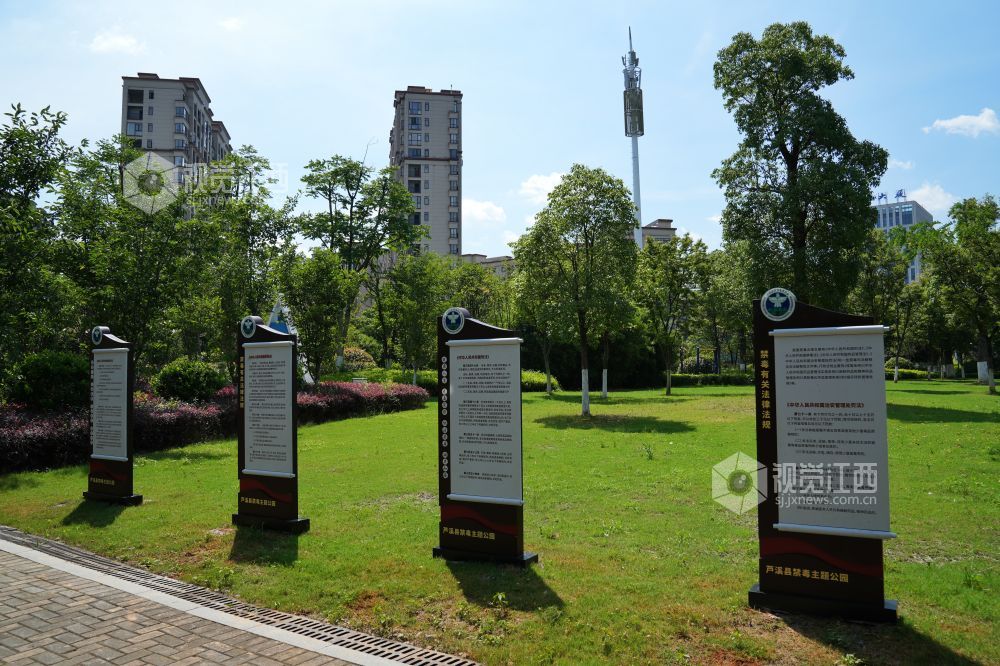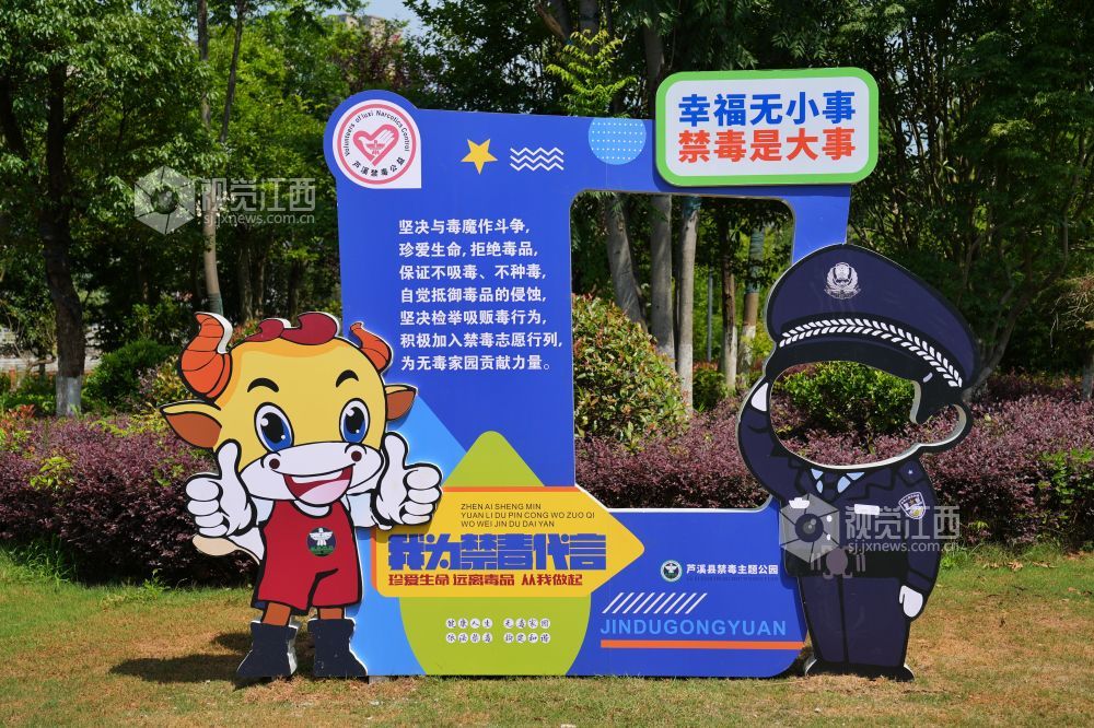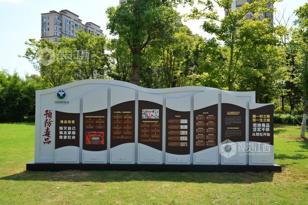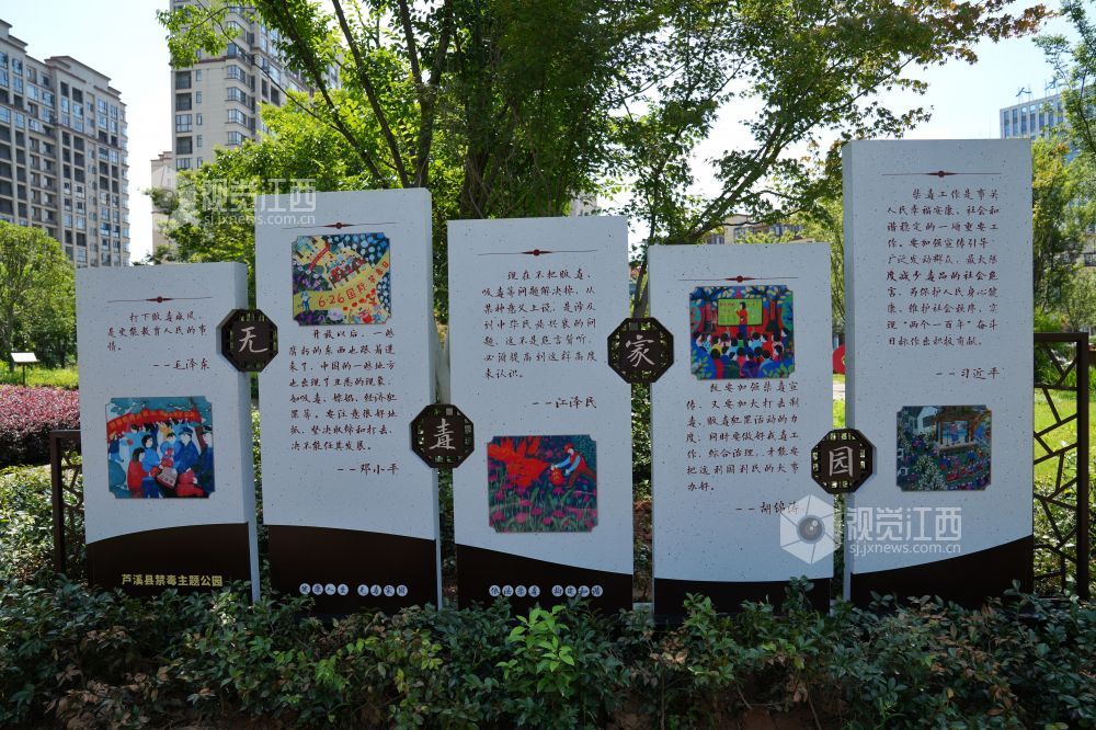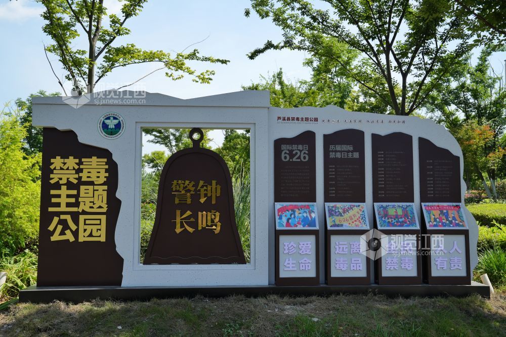 2022年6月25日,江西省萍乡市芦溪县芦洲公园的禁毒主题公园。据了解,整个禁毒主题公园以“健康人生、无毒芦溪”为主题,在不破坏公园现有格局的前提下,因地制宜地将禁毒知识、毒品危害、防毒拒毒、禁毒法律法规等元素,全方位融入公园的环境、绿化、设施中,让广大市民在公园赏景游玩、锻炼身体之余,接受禁毒知识文化的熏陶,寓教于乐、润物无声。