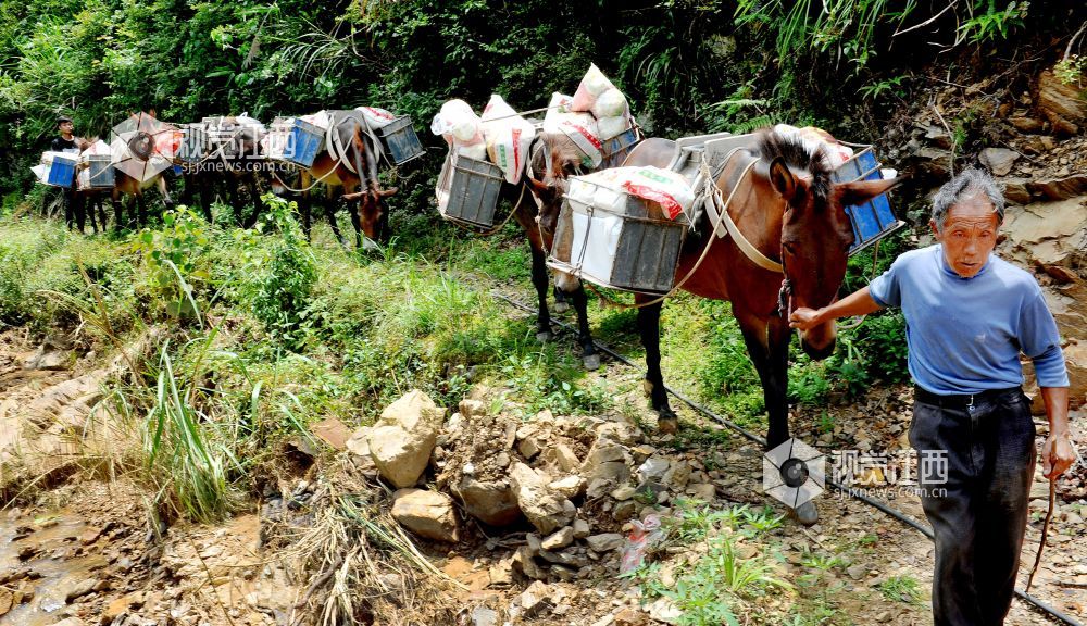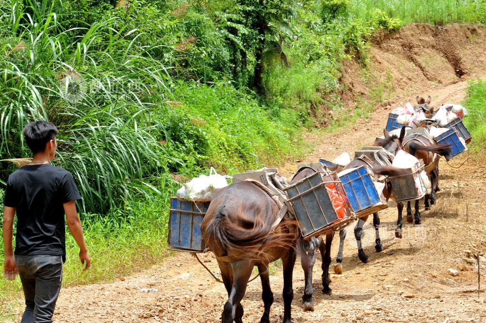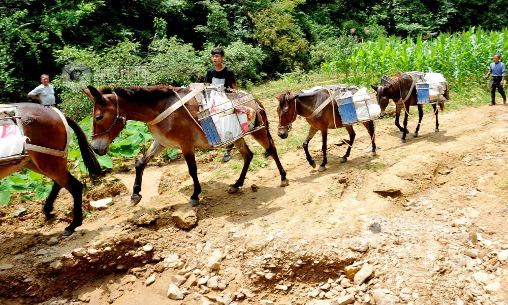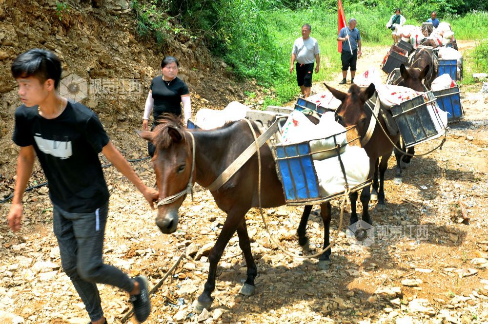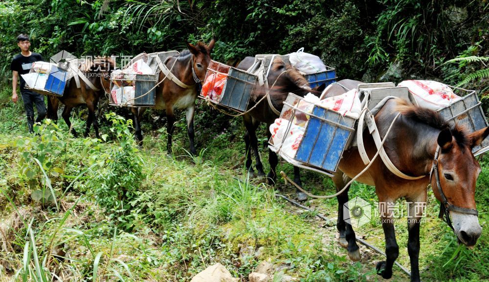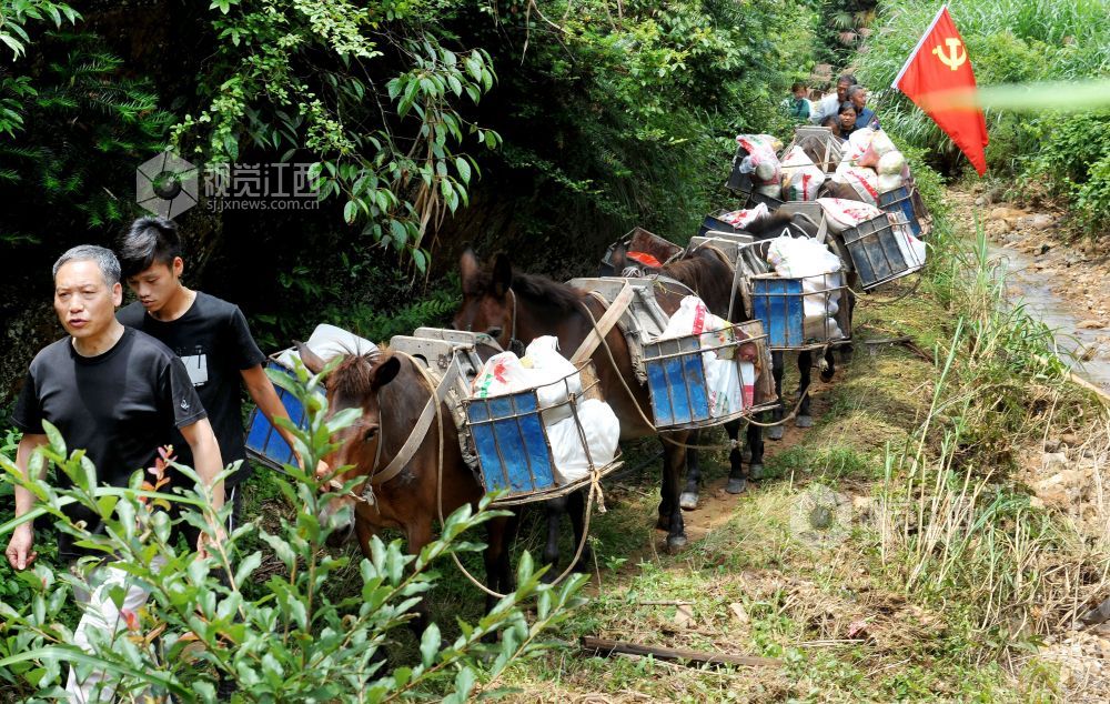 2022年6月25日,江西省玉山县横街镇党员干部志愿者服务队用马队运输,将生活应急物资送往该镇周山村最远的村民小组的家里。