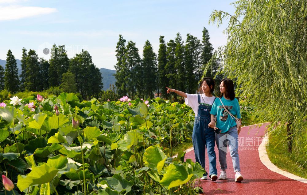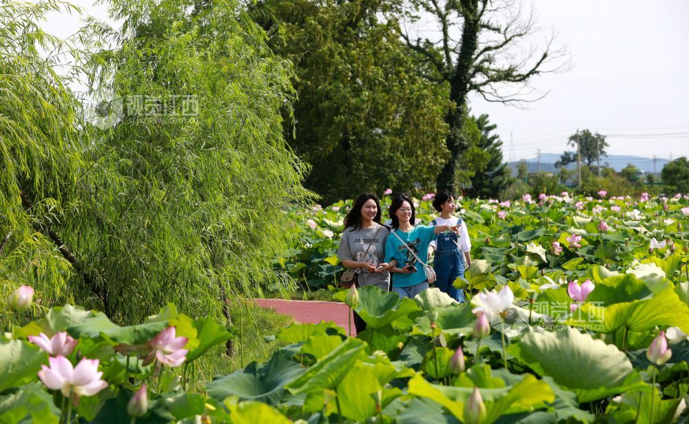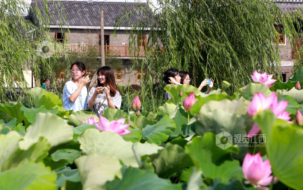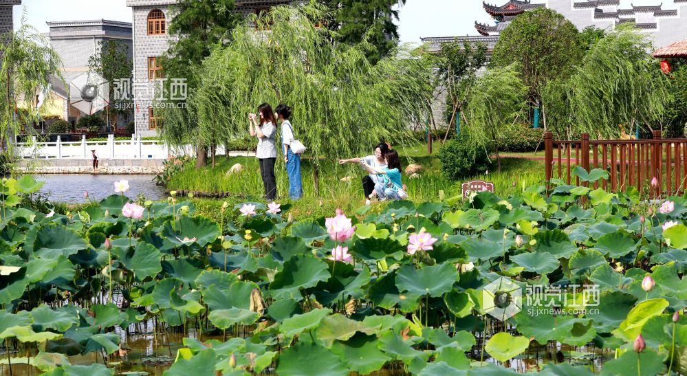 2022年6月28日,江西省吉安市吉水县醪桥镇固洲古村荷花盛开,微风过处,荷叶田田,引来众多游客前来游玩赏荷。连日来,江西省吉安市吉水县城乡各地荷花竞相盛开,为炎炎夏日增添一丝凉爽,引来众多游客前来游玩赏花。