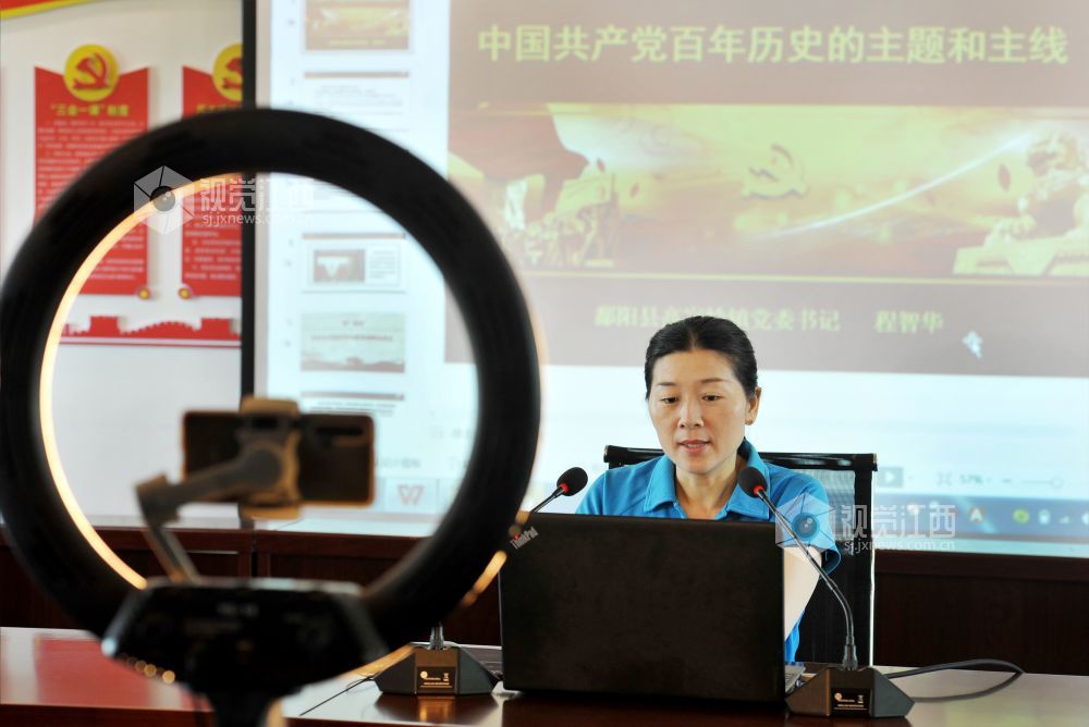 2022年6月26日,江西省鄱阳县高家岭镇党委书记程智华利用微信平台,线上给村镇两级党员干部授课。