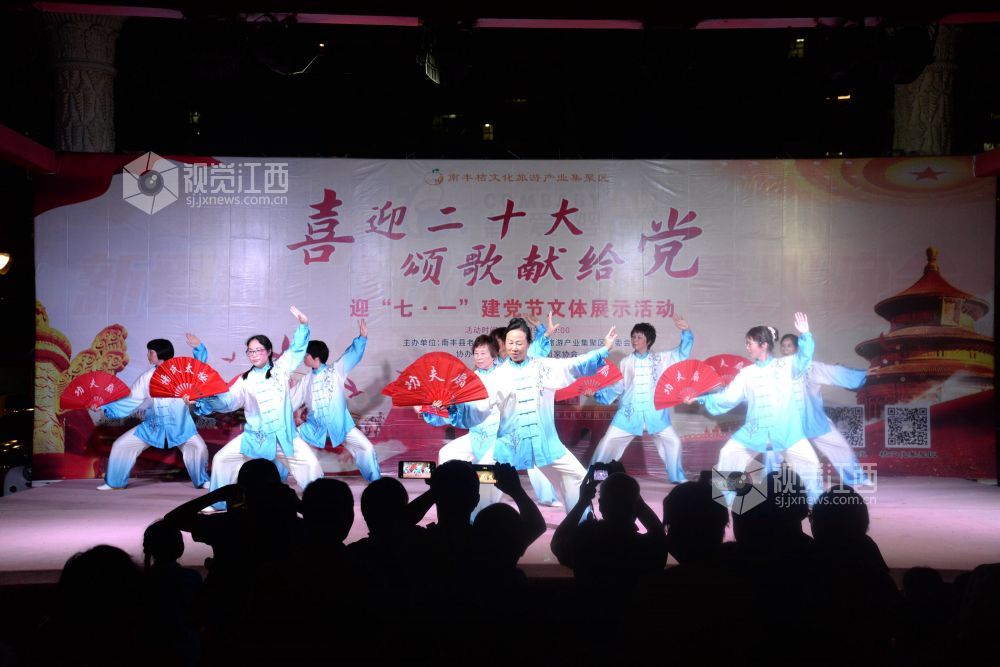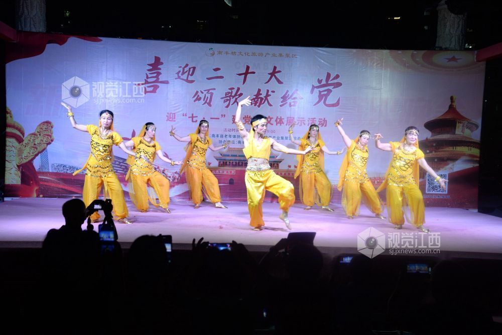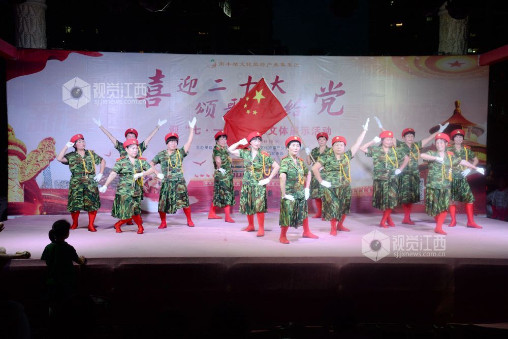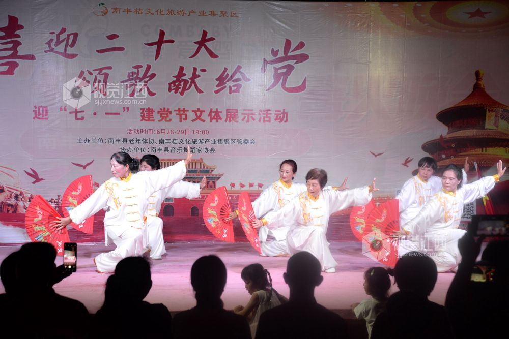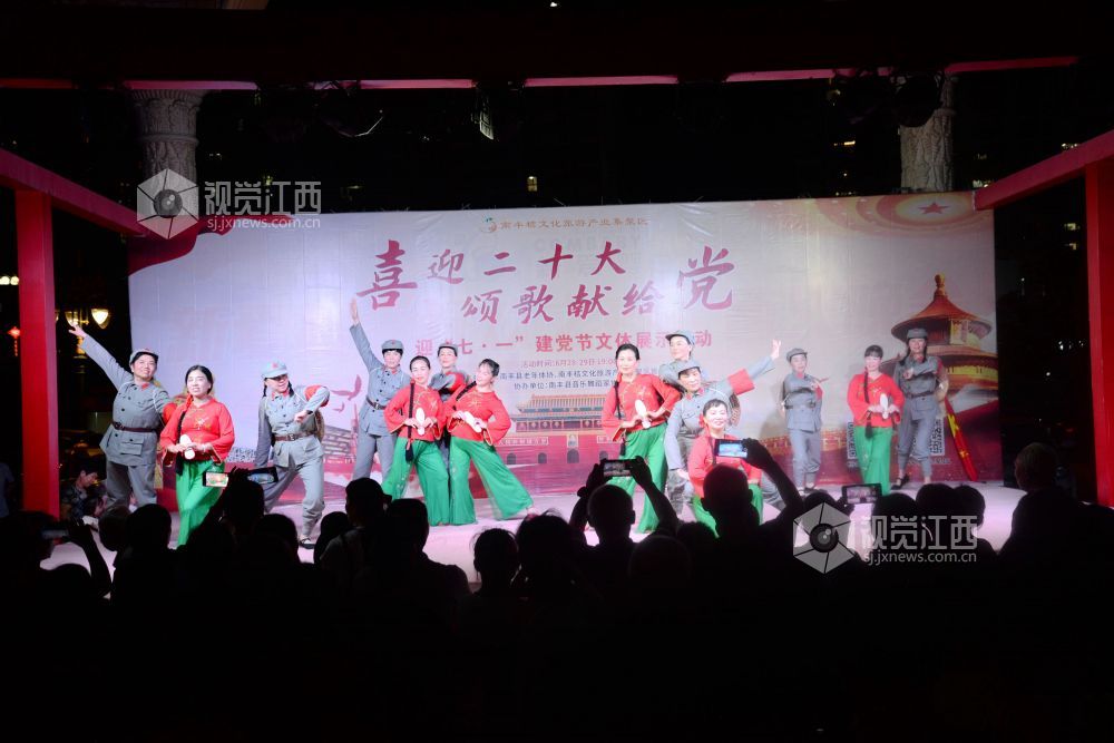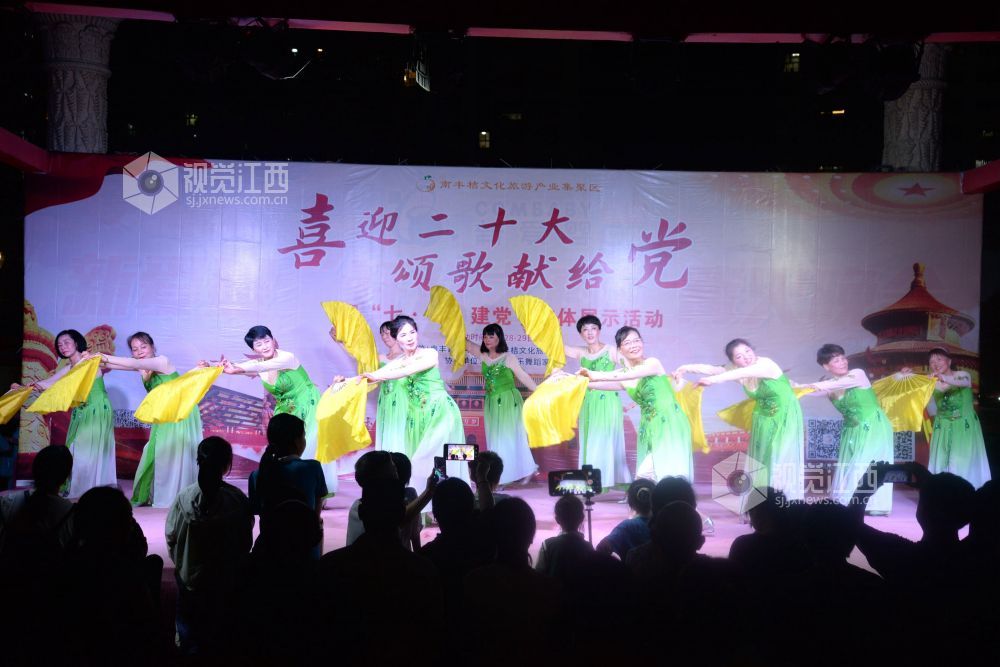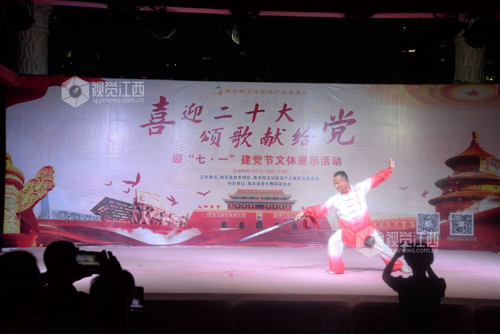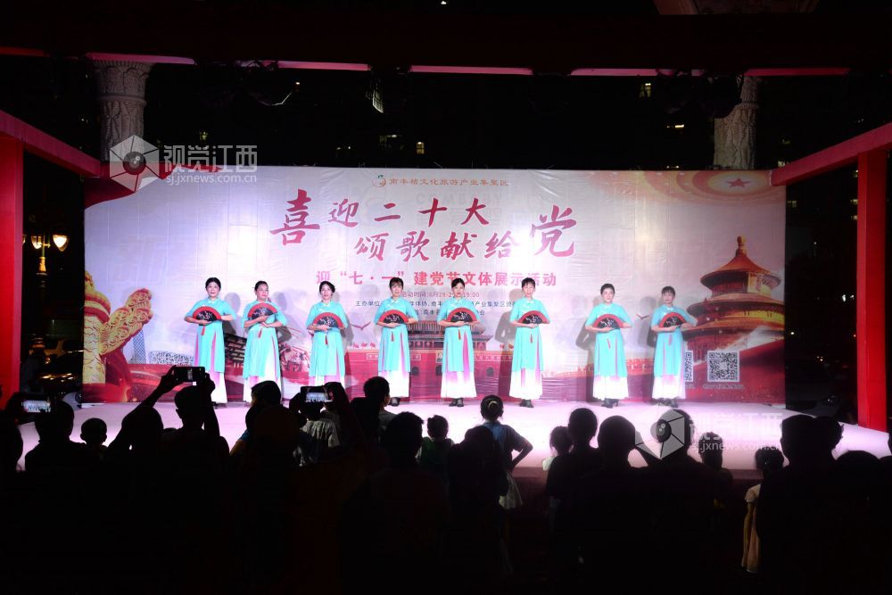 2022年6月28日晚,由江西省抚州市南丰县老年体协、南丰桔文化旅游产业聚集区管委会主办,南丰县音乐舞蹈家协会承办的“喜迎二十大 颂歌献给党”——迎“七一”建党节文体展示活动在国安夜市举行,12个精彩纷呈的文体展示节目,赢得现场观众的一致好评。