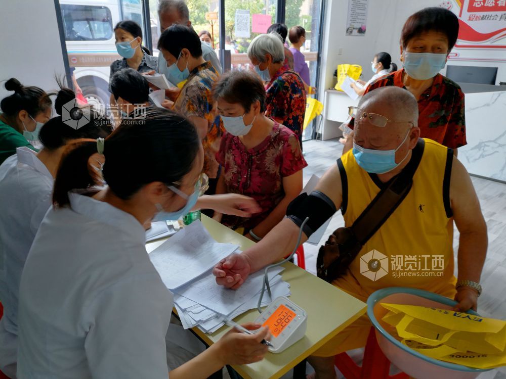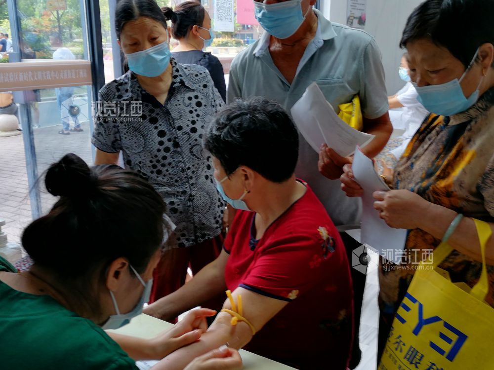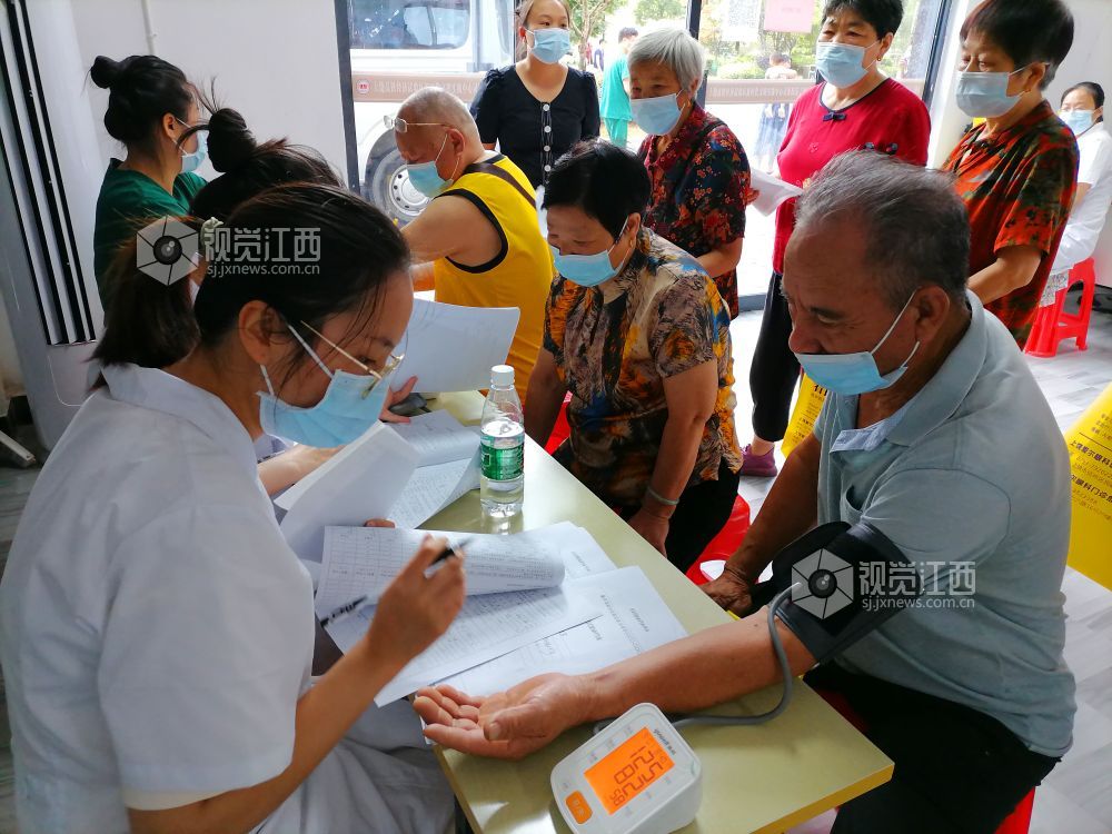 6月28日,洪灾过后江西省上饶市灵溪镇卫生院的医务人员携带医疗器材来到上饶市高铁经济试验区稼轩花园安置小区上门为小区群众免费义诊,这一行动深受广大群众好评。
