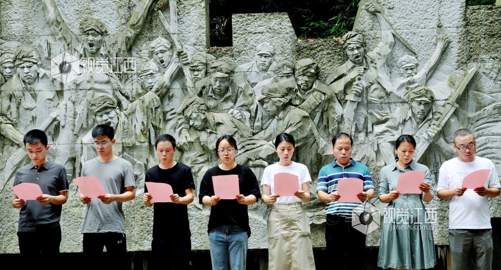 2022年6月30日,江西省德兴市部分归国留学青年和归国外派教师代表在该市省级爱国主义教育基地瞻仰革命烈士、聆听红色革命故事。