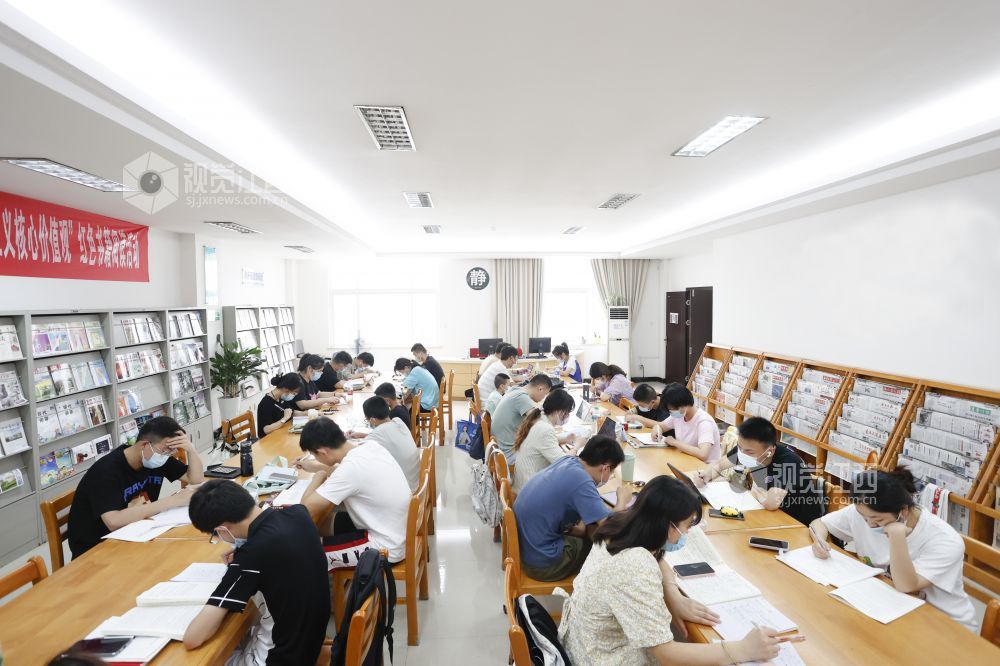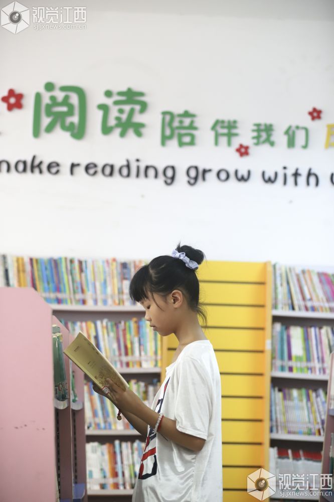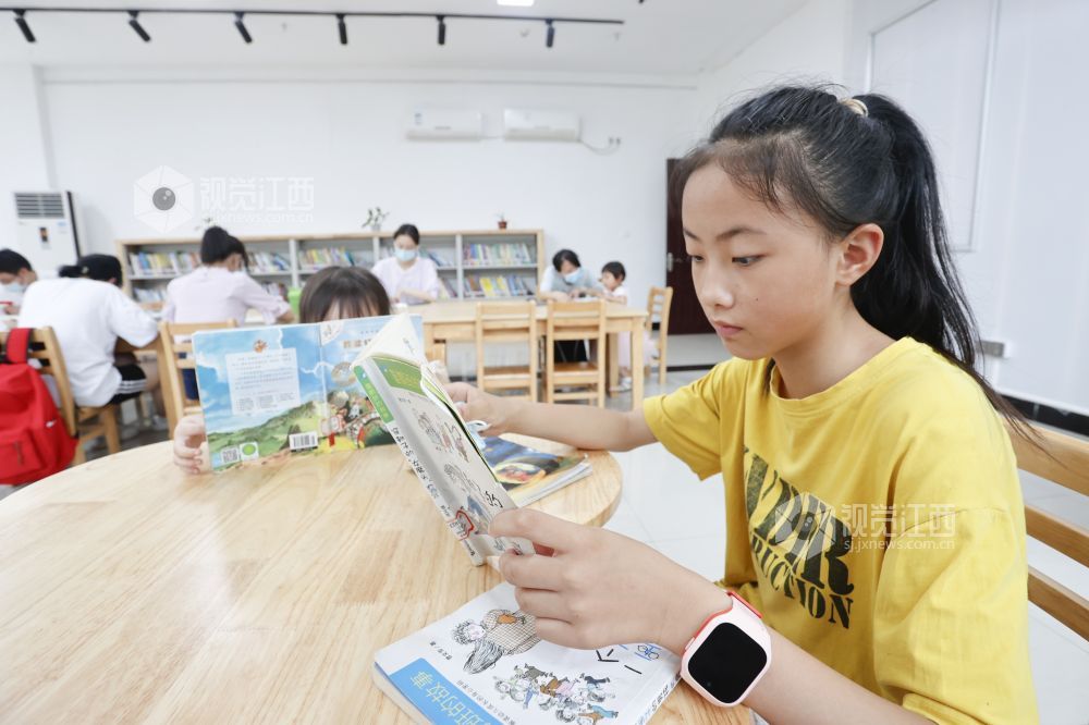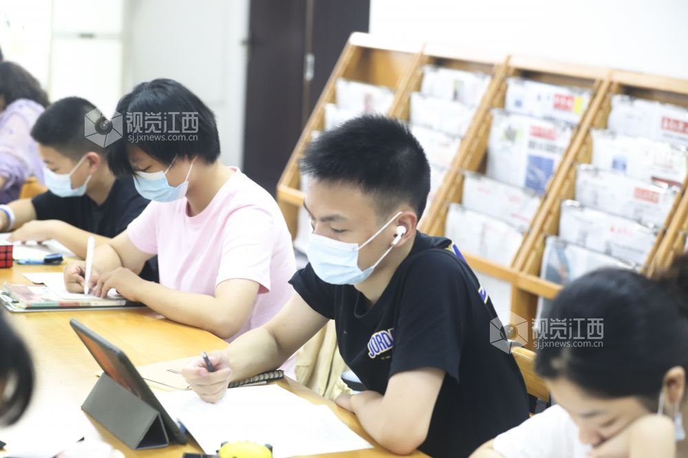 2022年7月5日,江西省九江市湖口县图书馆,小读者们正在阅读图书。暑假期间,书香满溢的该县图书馆“热度”攀升,不少小读者在这里畅游书海,增长知识,尽享书香之夏。
