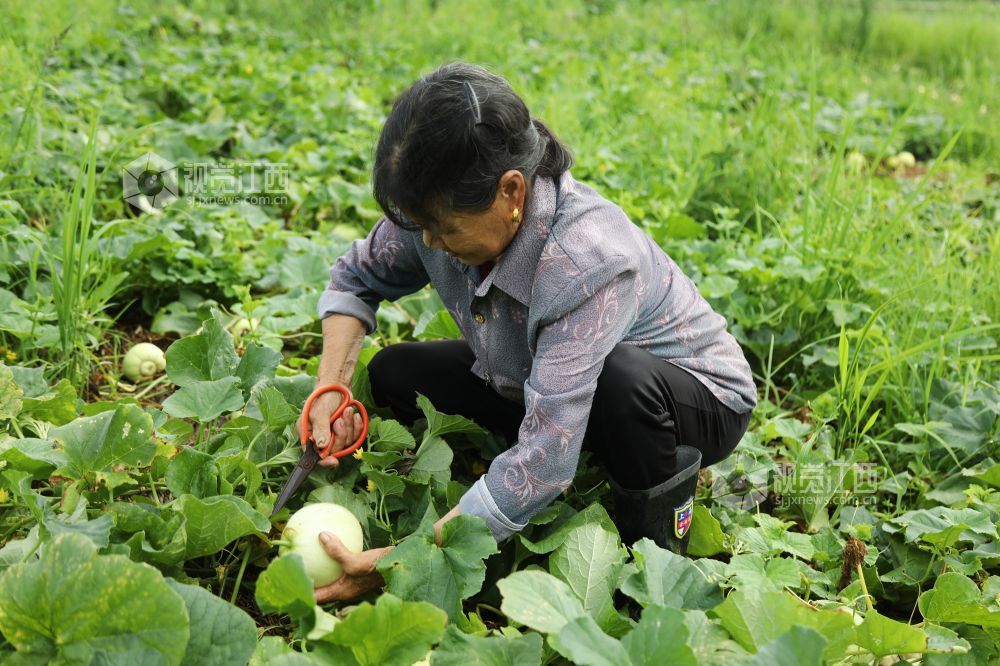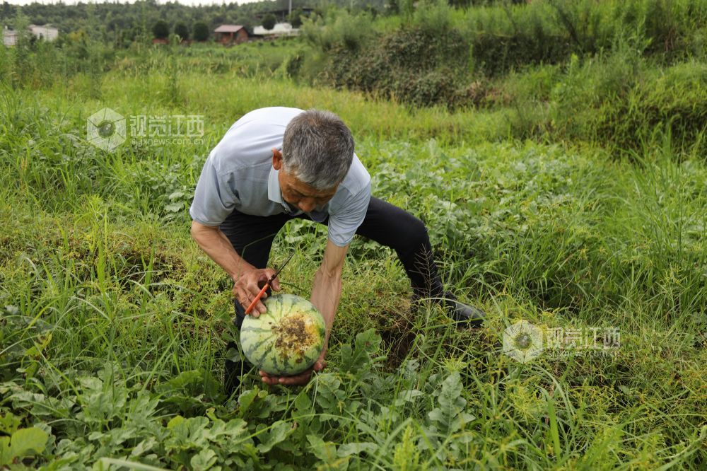 7月7日,江西省莲花县升坊镇沙屋村脱贫户尹金祥、林宝娇夫妇正在瓜田里采摘甜瓜。