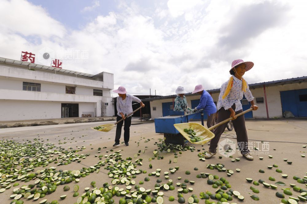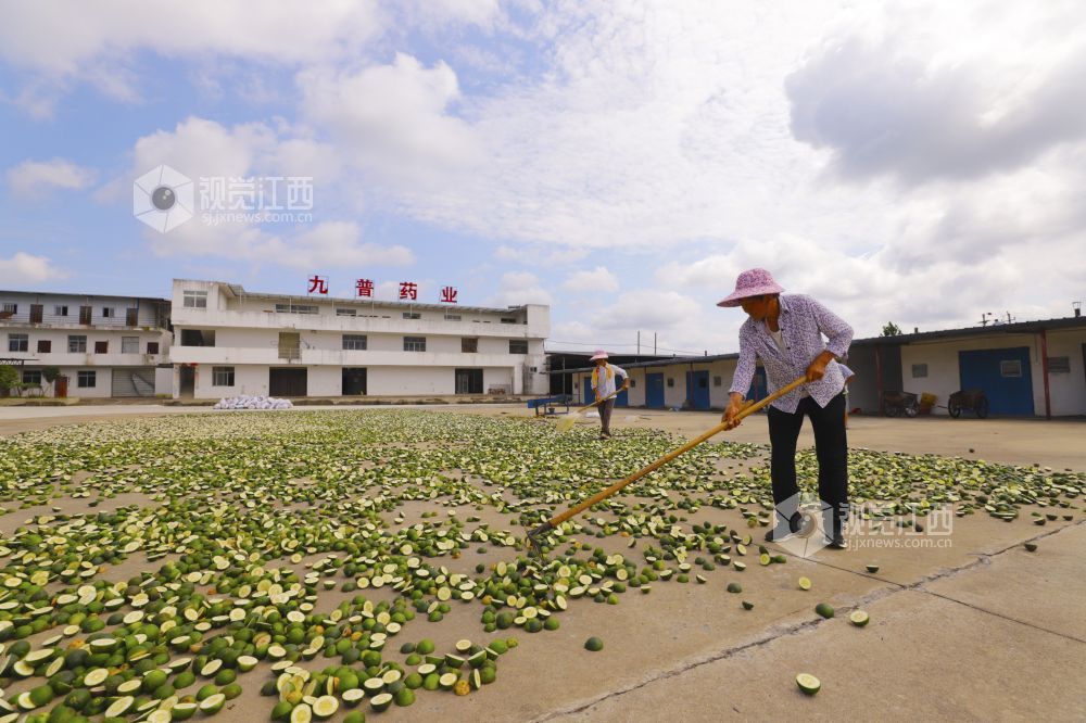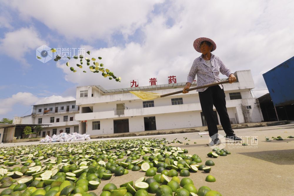 7月7日,小暑节气,江西省湖口县武山镇元青中药材种植专业合作社忙着采摘加工枳壳。