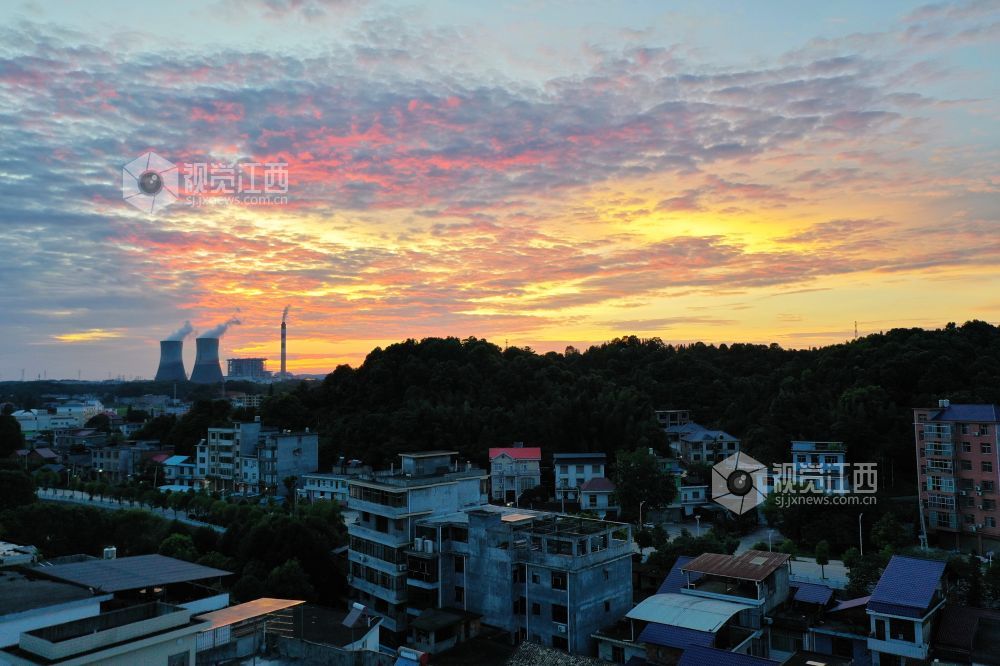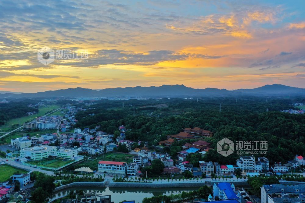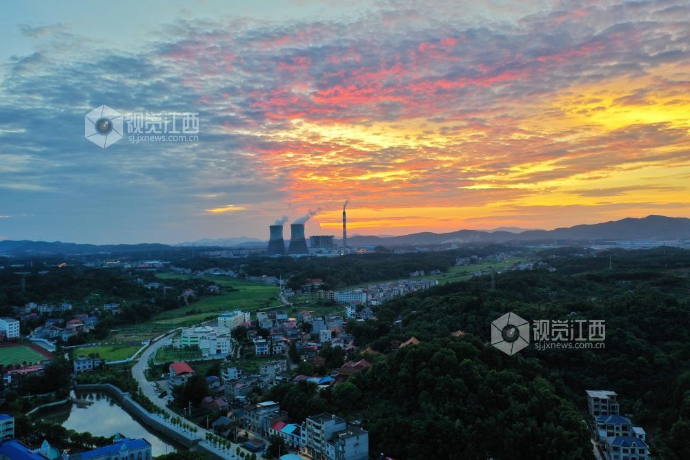 2022年7月8日晚,无人机航拍江西省萍乡市芦溪县出现绚丽晚霞,美轮美奂,十分壮美。