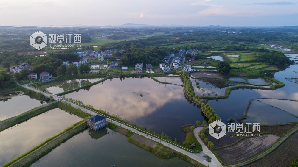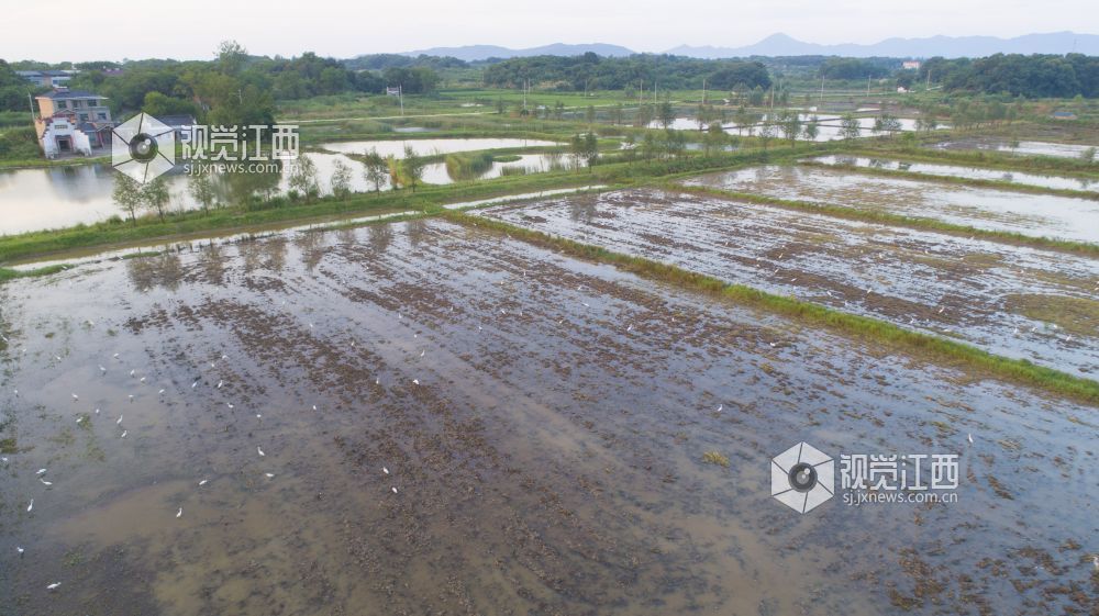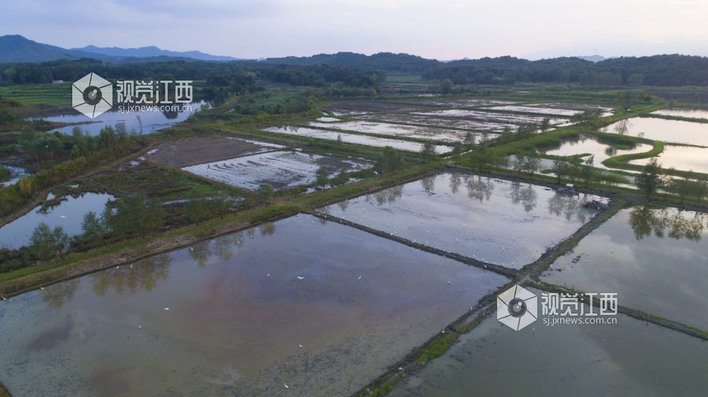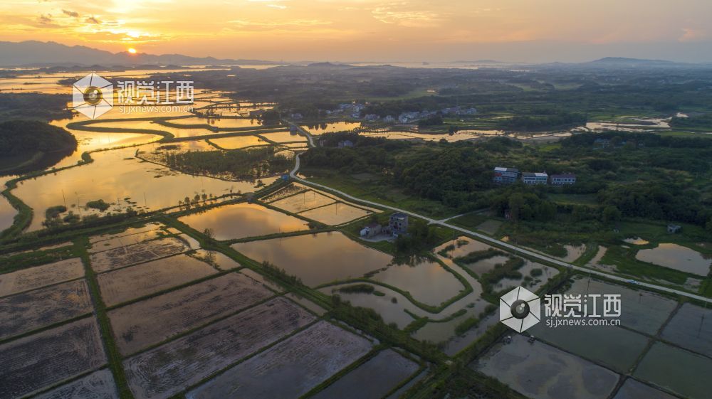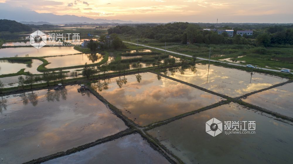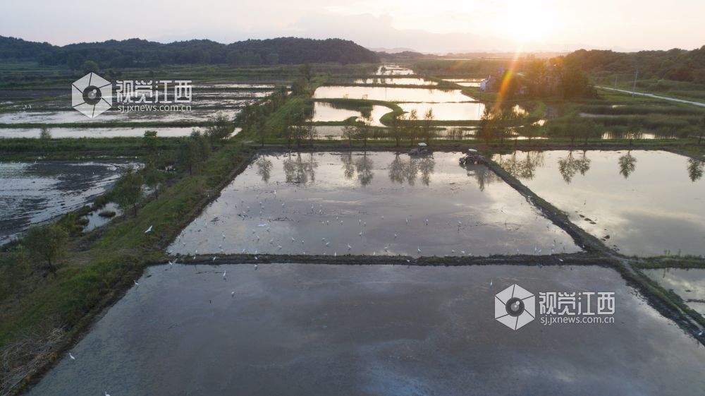 该村紧邻鄱阳湖鞋山水域,自古水运发达、商贸繁荣。历经秀美乡村建设,这里山清水秀,稻田平整,水面如镜。夕阳西下时分,晚霞似锦,成群鹭鸟紧随耕田机,时而飞舞、时而觅食、时而栖息,动静之间交相辉映,尽显乡村振兴的美好生态画卷。