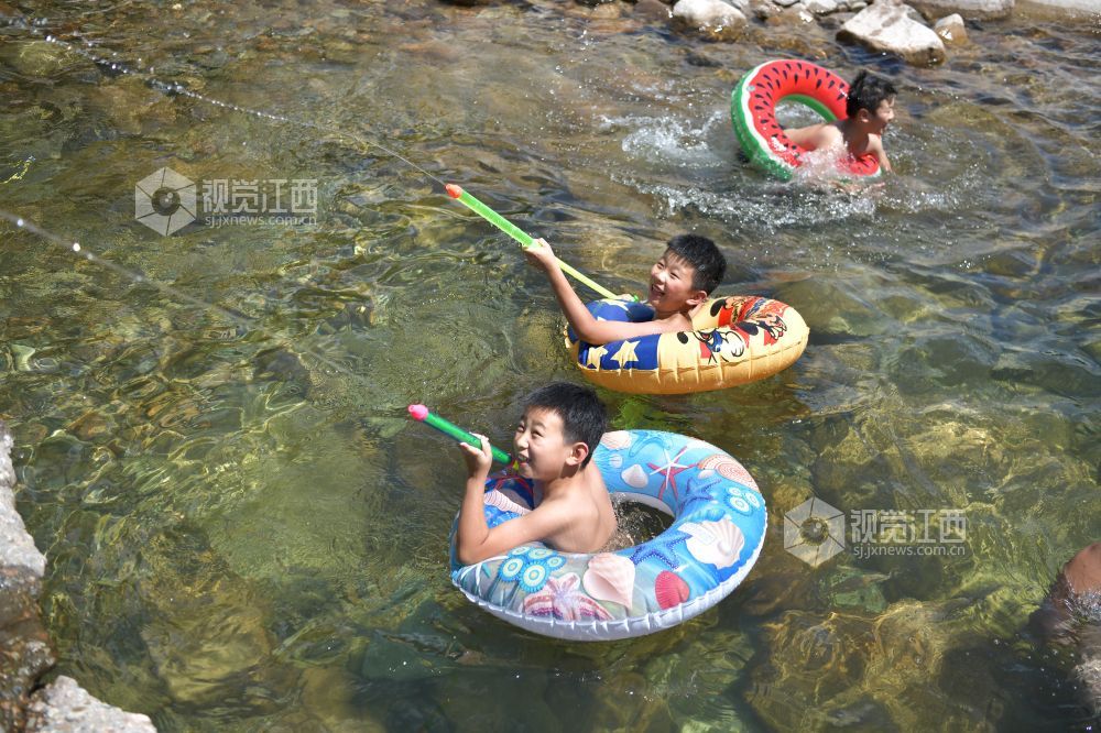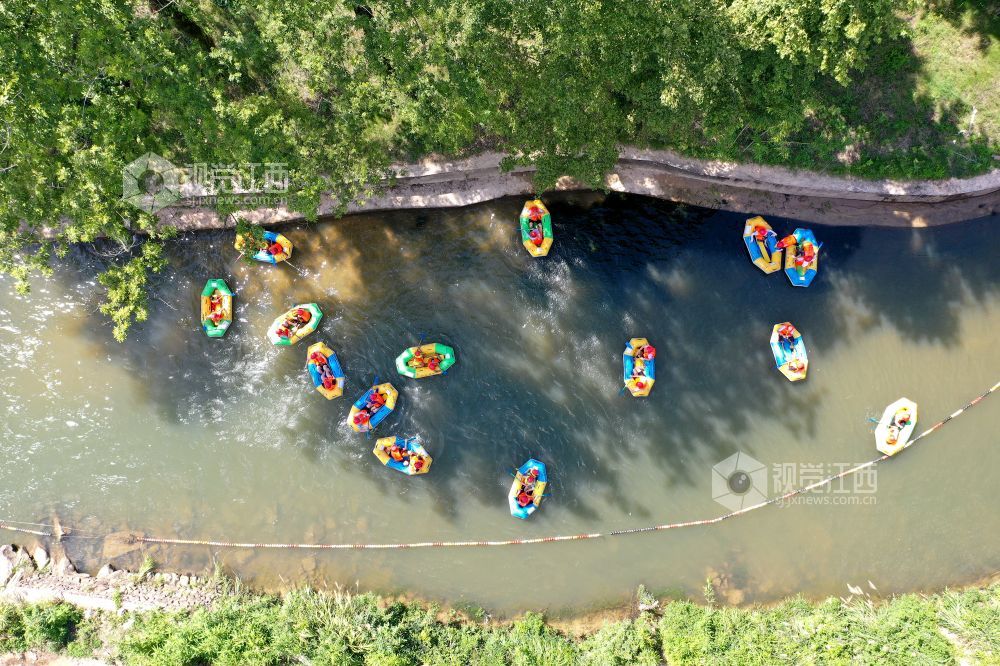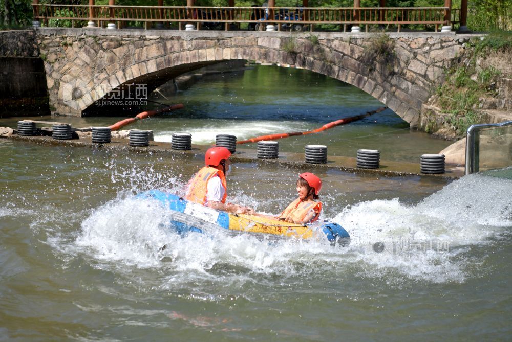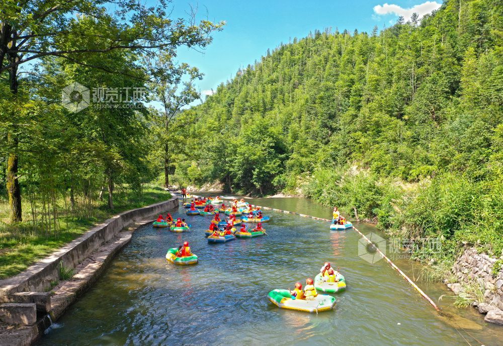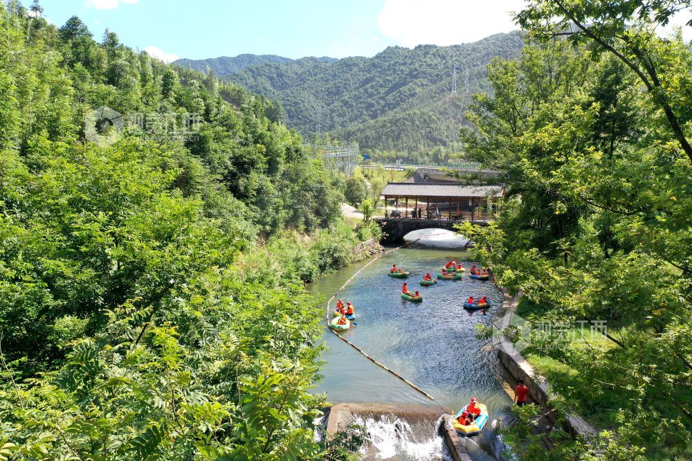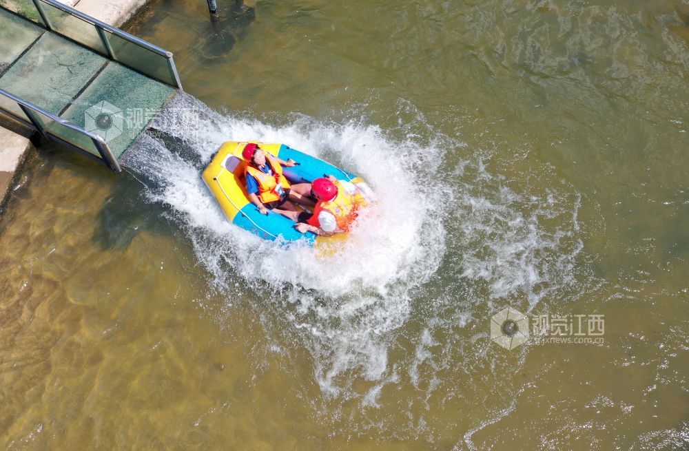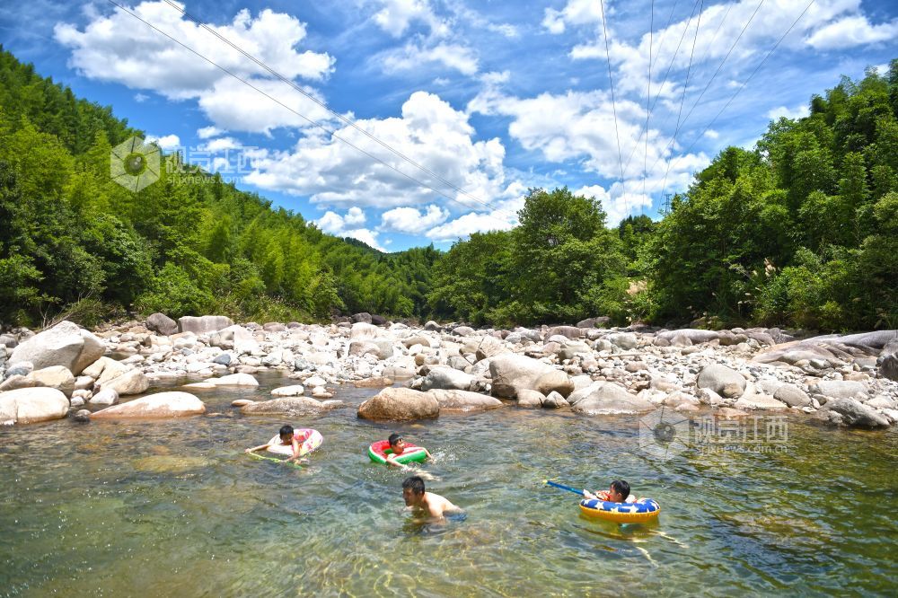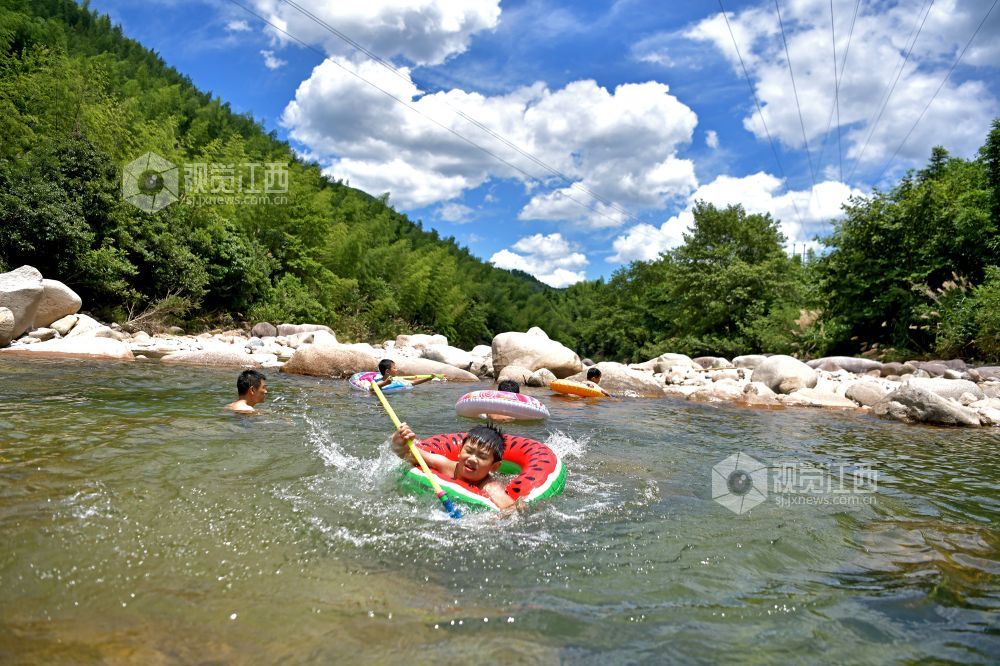 2022年7月10日,在江西省上饶市铅山县葛仙山镇仙谷漂流,前来漂流的游客络绎不绝。近年来,铅山县依托独特的地理、气候和生态优势,大力发展避暑休闲旅游和乡村旅游业,炎炎夏日里,乡村避暑游火热。