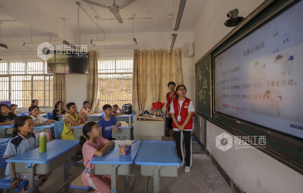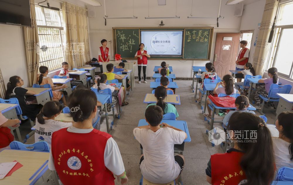 7月13日,江西九江职业大学青年志愿者利用在湖口县流芳乡支教支农的机会,为暑期托管的学生开展防溺水安全教育。
