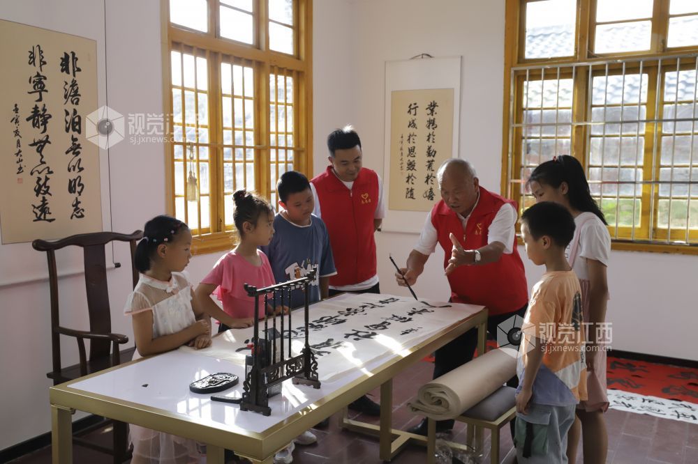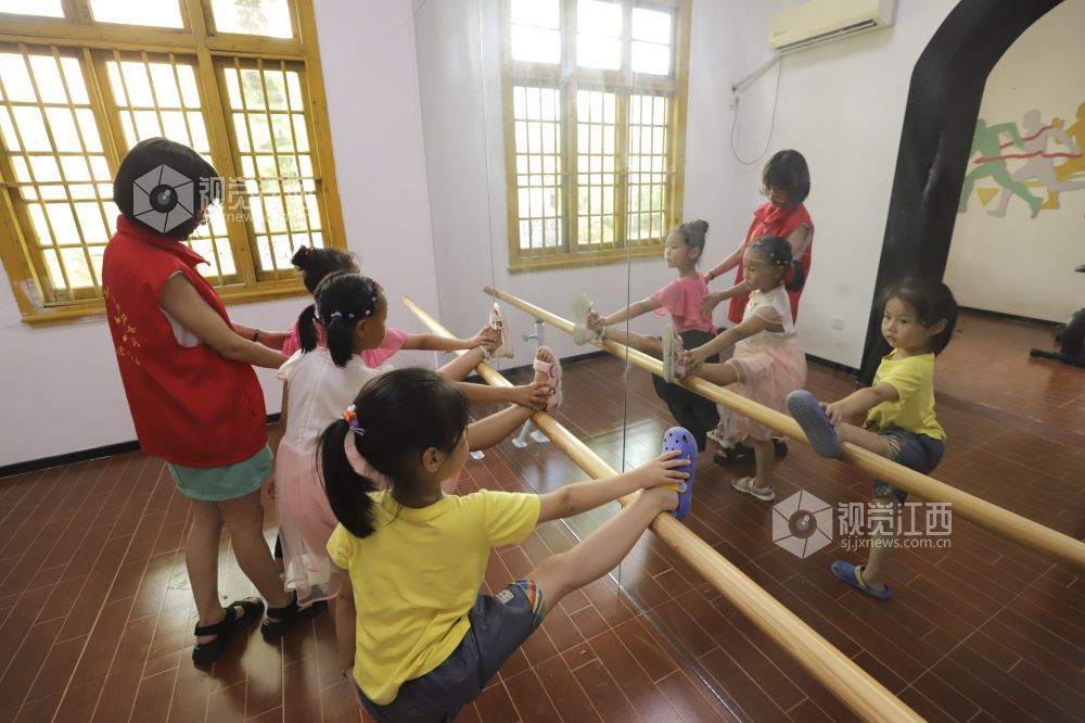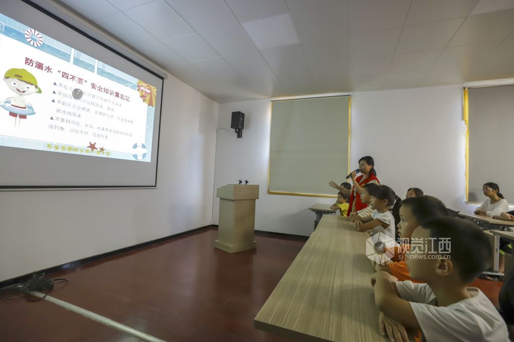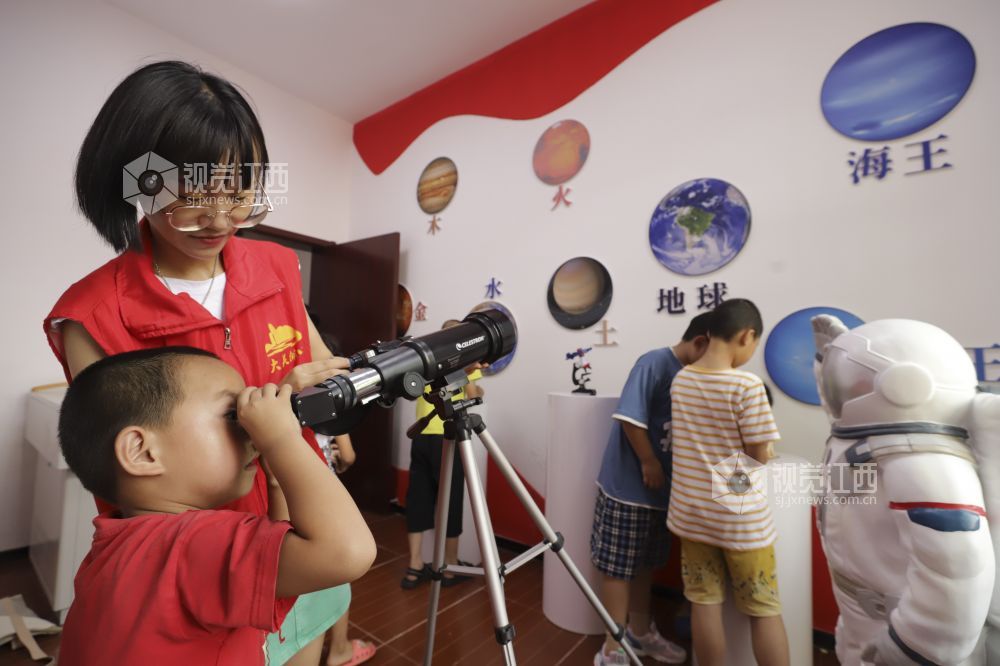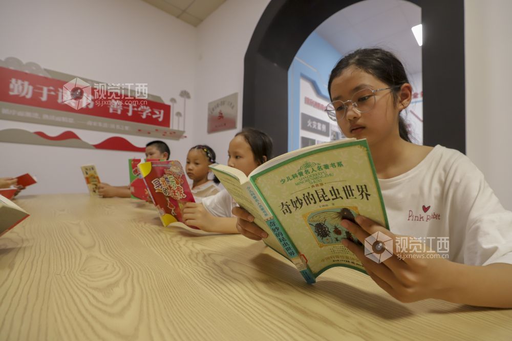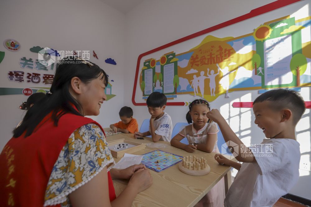 7月15日,江西省湖口县武山镇留守儿童在新时代文明实践所里开心度假。