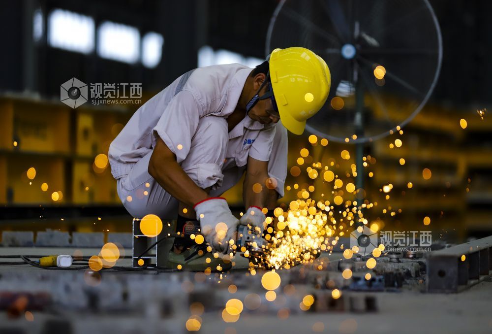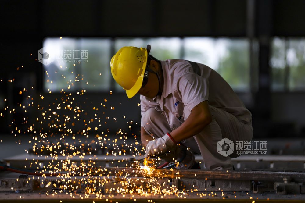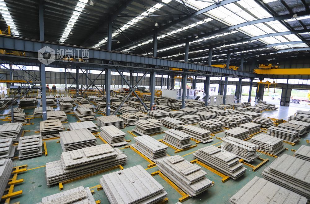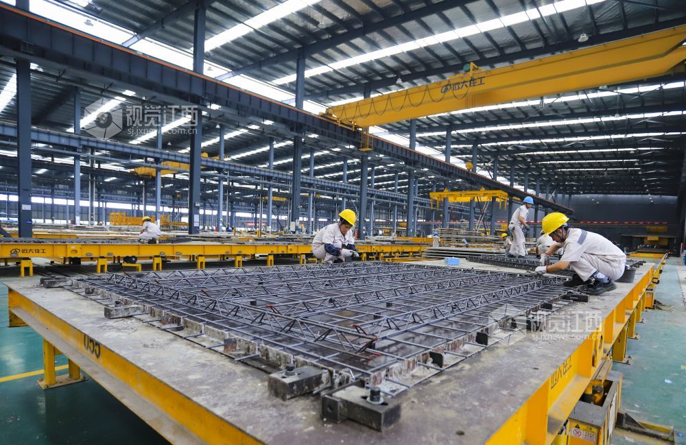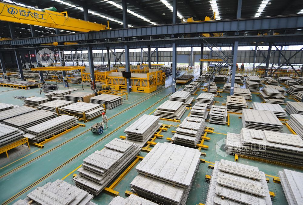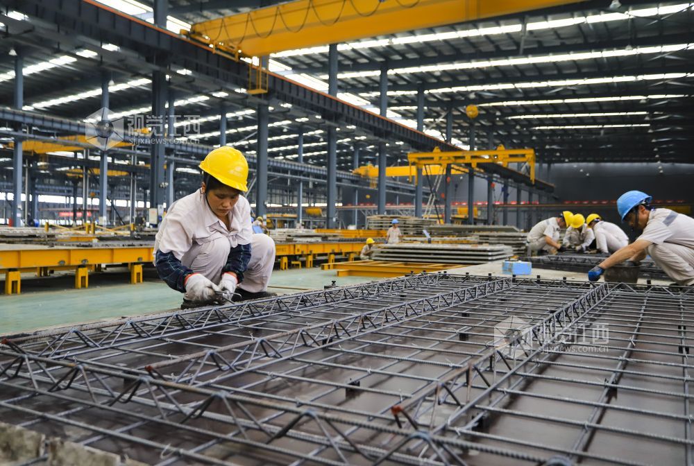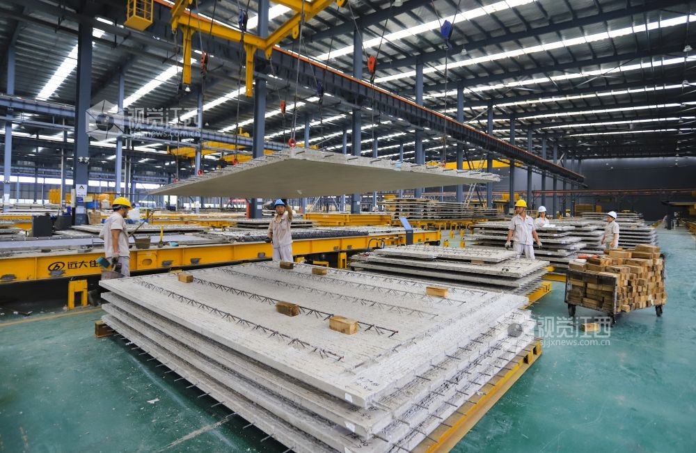 2022年7月19日,江西省九江市湖口县高新园区内的装配式建筑公司生产线一派繁忙,工人正全力以赴赶制订单。