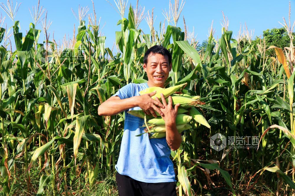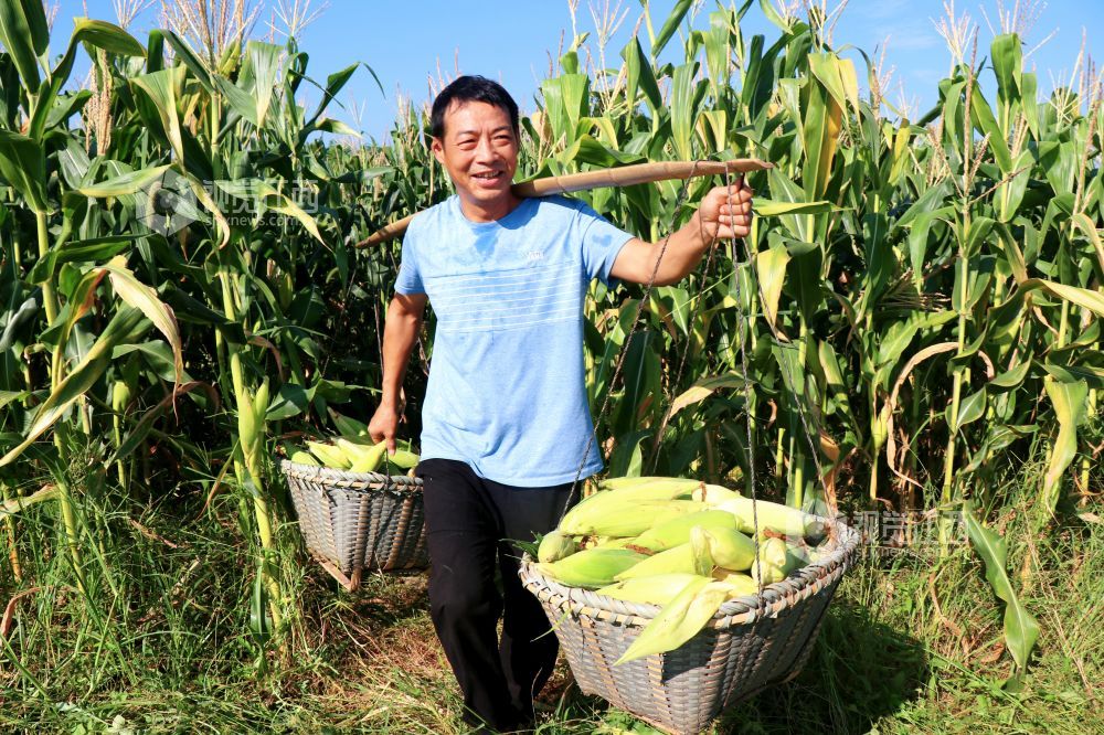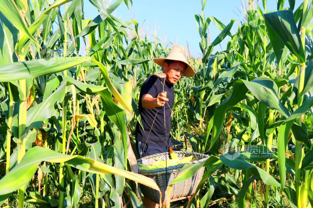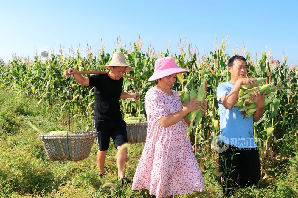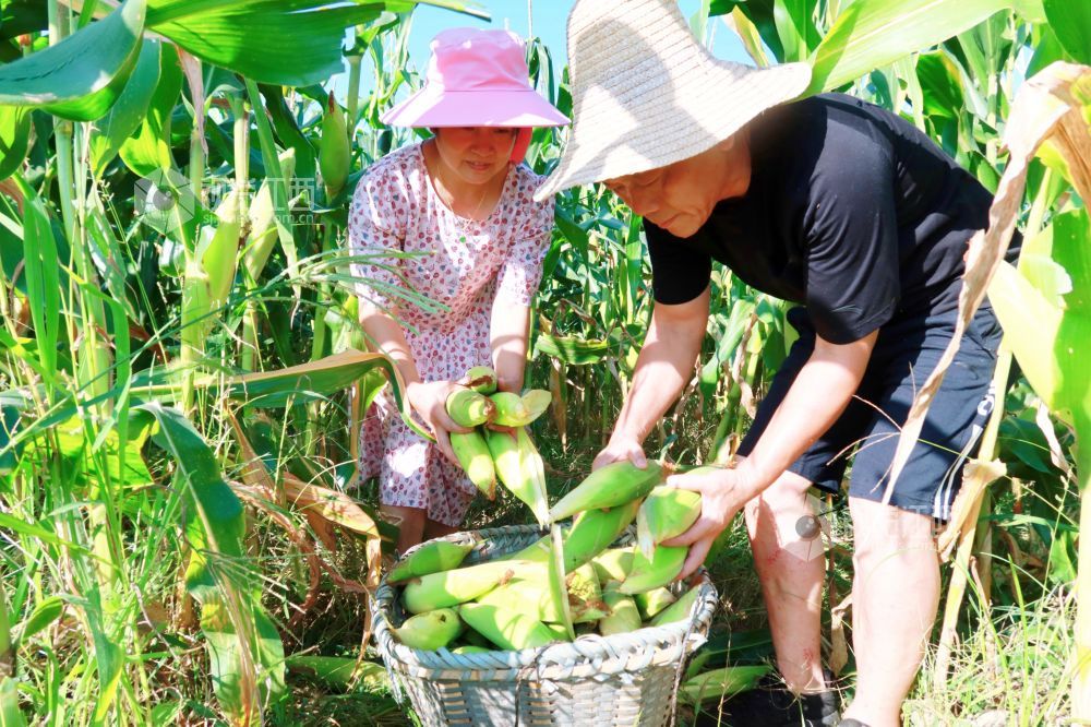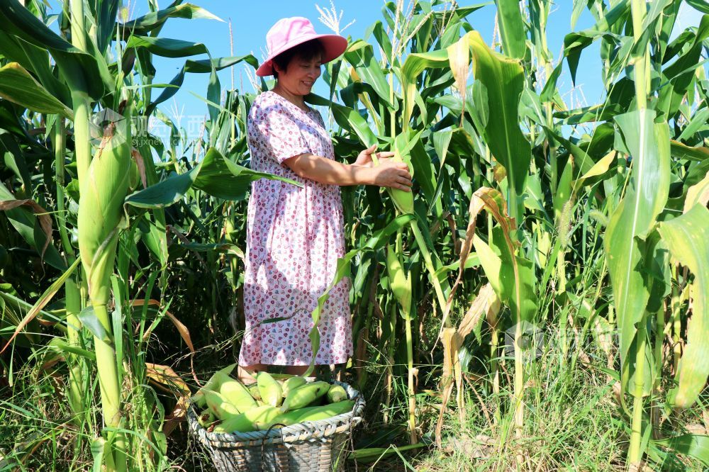 2022年7月22日,江西省余干县瑞洪镇湾头村鲜食玉米合作社水果玉米种植基地,农户忙着采收新鲜水果玉米上市。