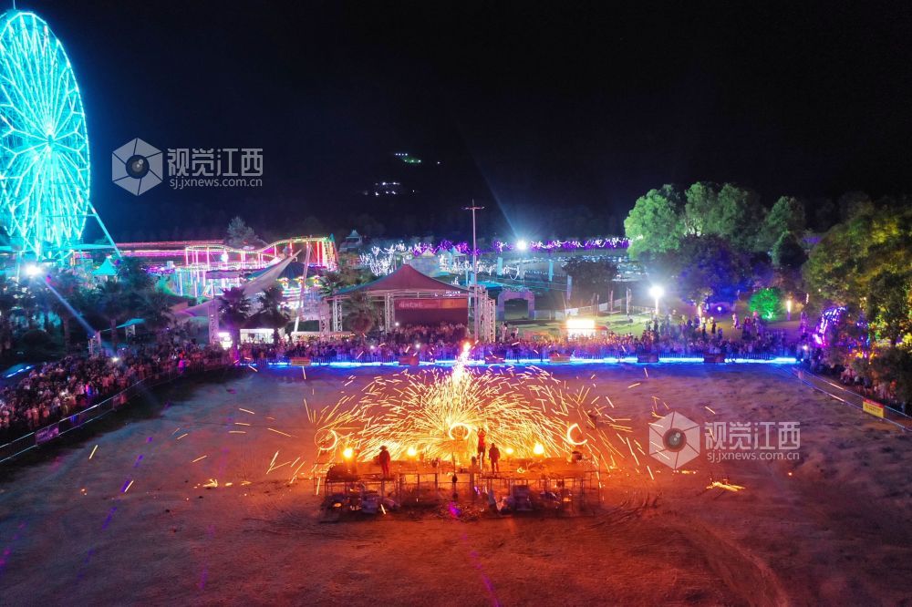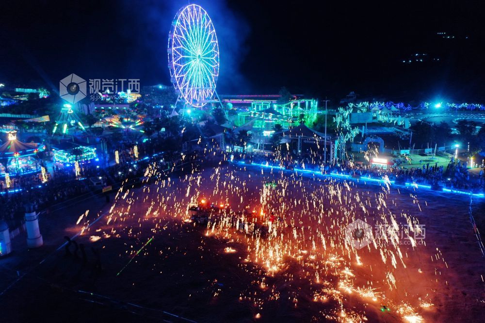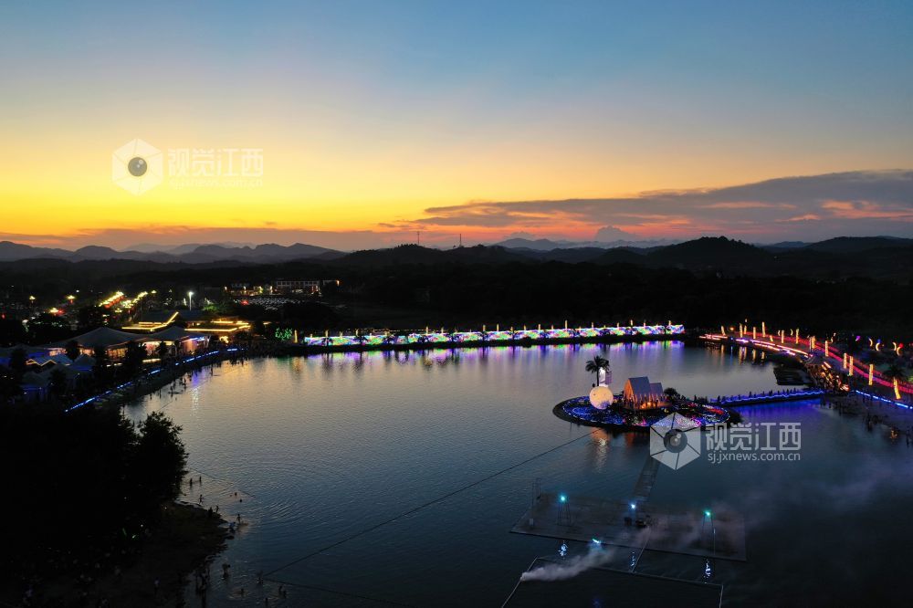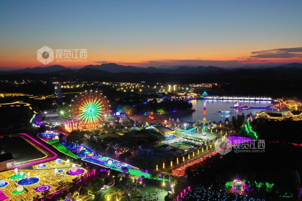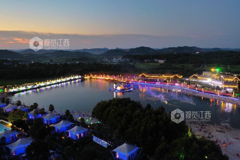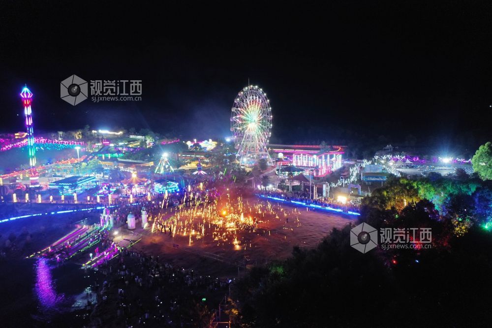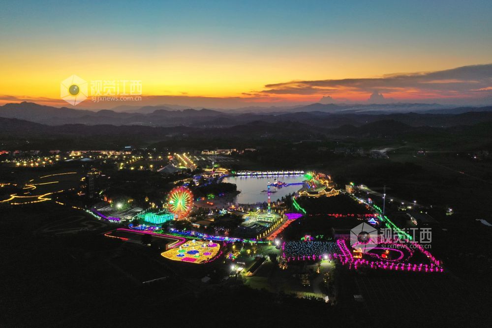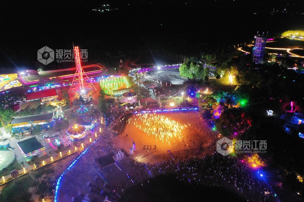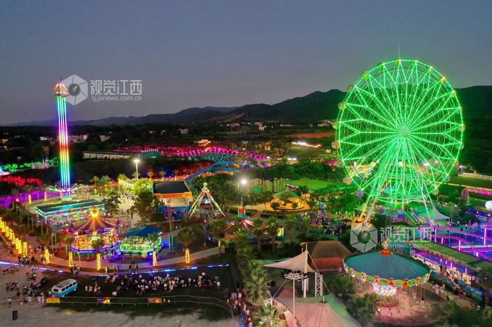 2022年7月23日,江西省萍乡市芦溪县仙凤三宝园,灯光璀璨,美轮美奂,前来游玩的市民络绎不绝。