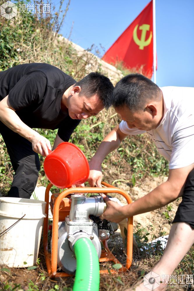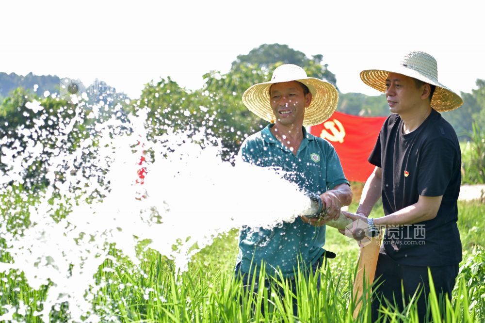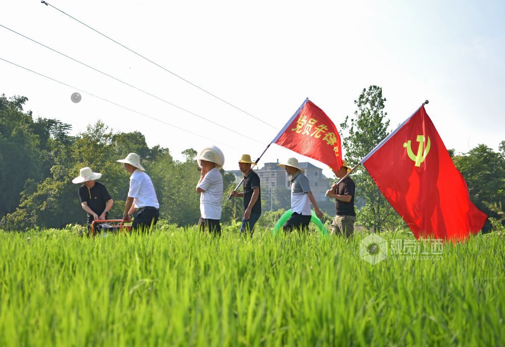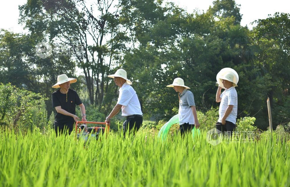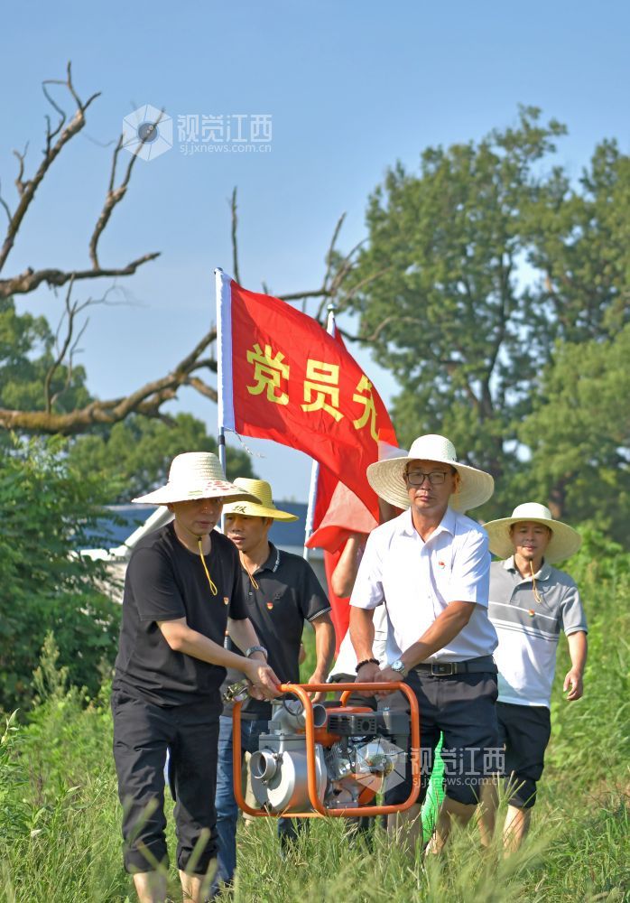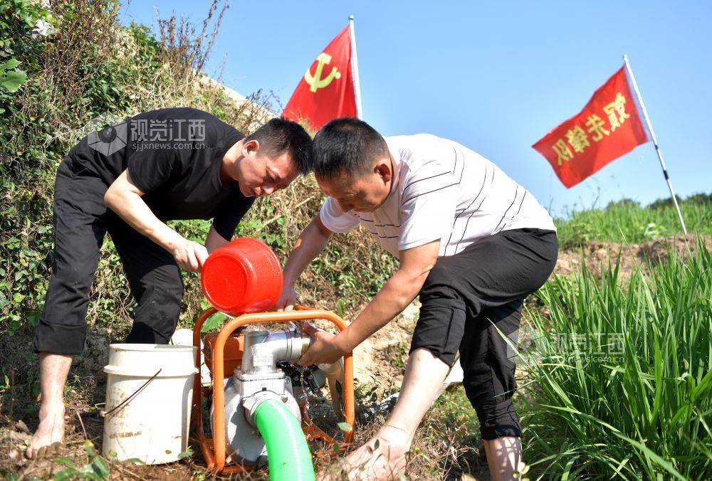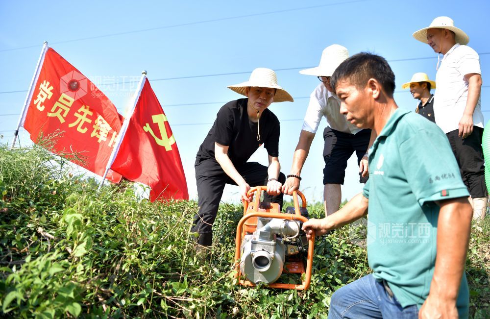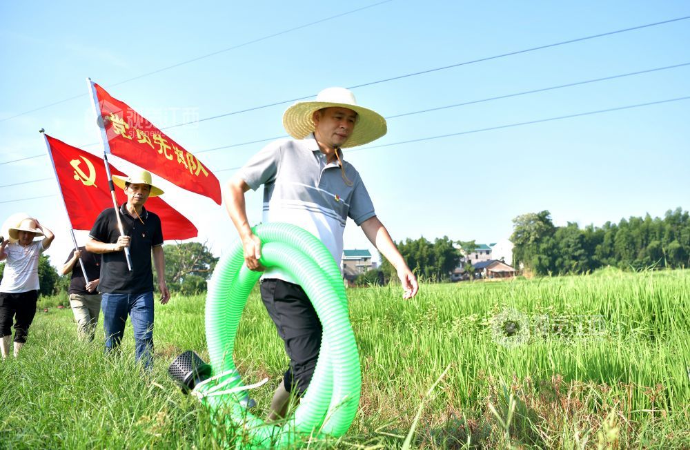 2022年7月25日,江西省上饶市铅山县农业农村产业发展服务中心党员先锋队,赴该县汪二镇下程村与种粮大户一起灌溉稻田。