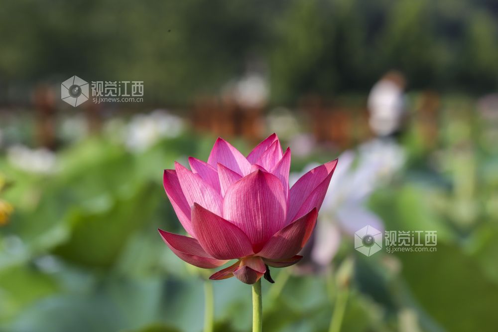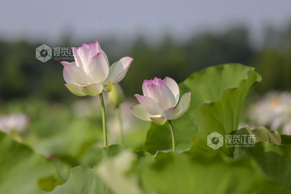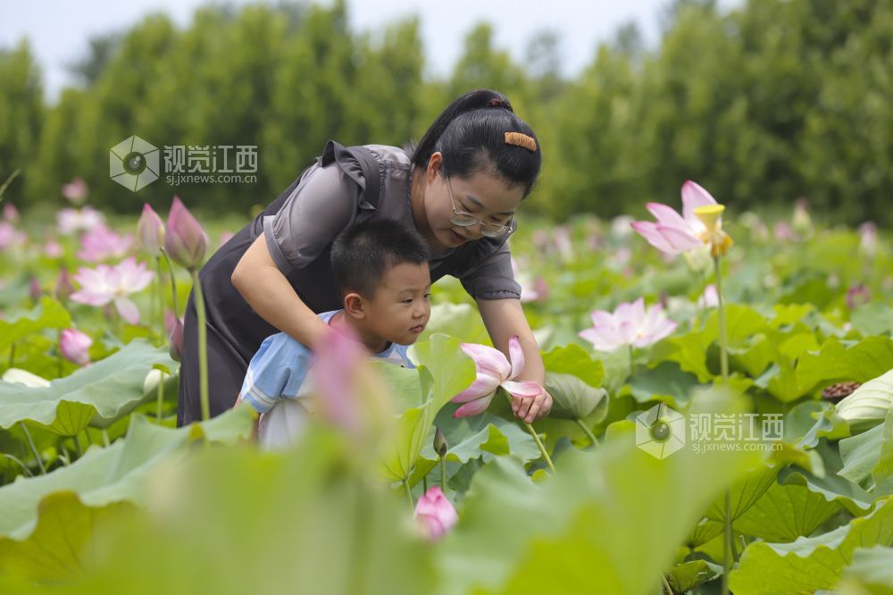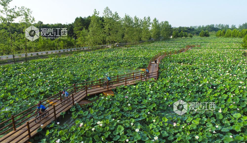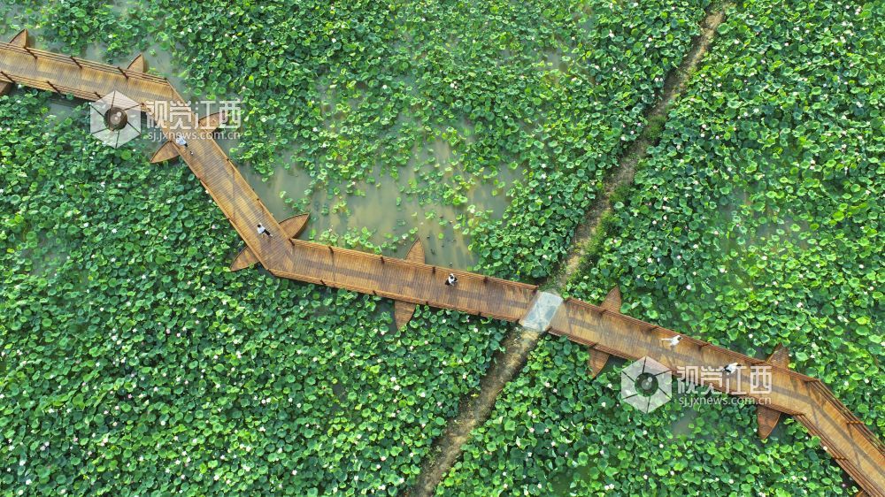 中伏时节,江西省湖口县城山镇陈岭村路旁百亩白莲,花开正盛,清香馥郁,引来不少游客驻足赏荷、采莲、休闲。