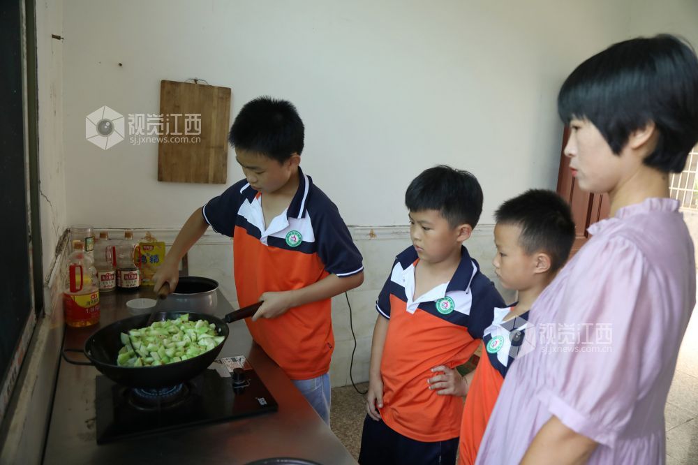 2022年07月29日,江西省莲花县六市乡六市村留守儿童托管之家,老师指导小朋友下象棋、画画、玩游戏、炒菜、摘西瓜。