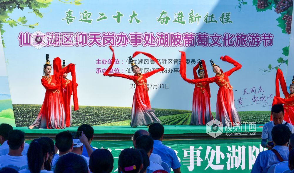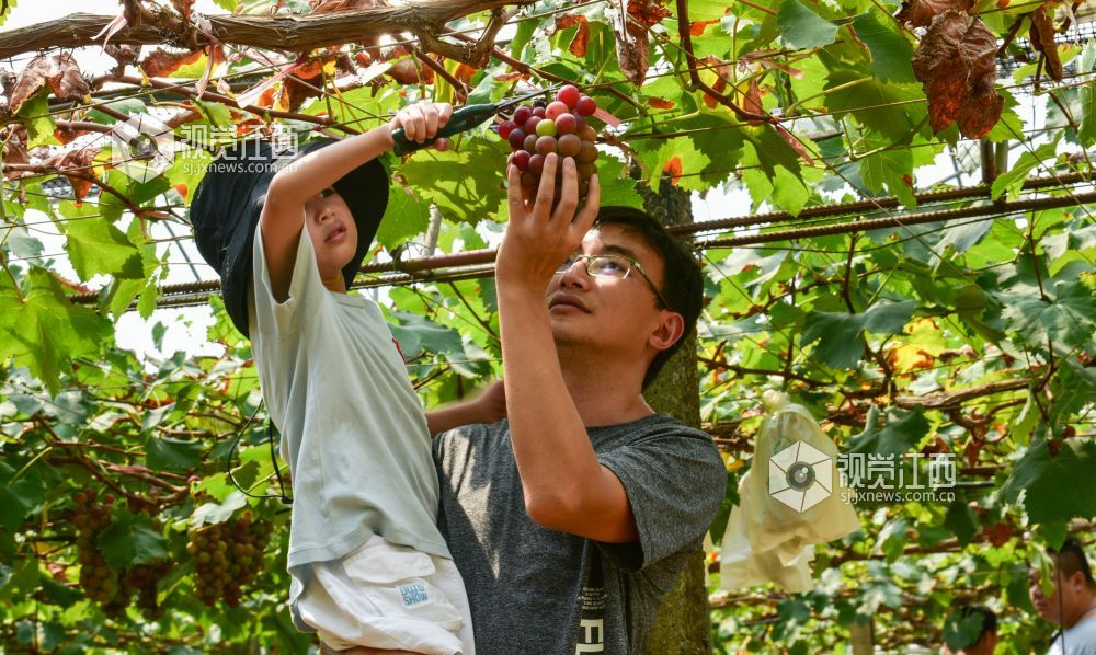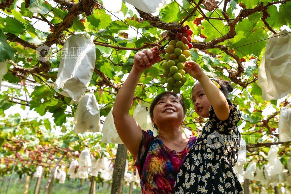 7月31日,新余市仙女湖区仰天岗办事处湖陂村一年一度的葡萄文化旅游节开幕了。