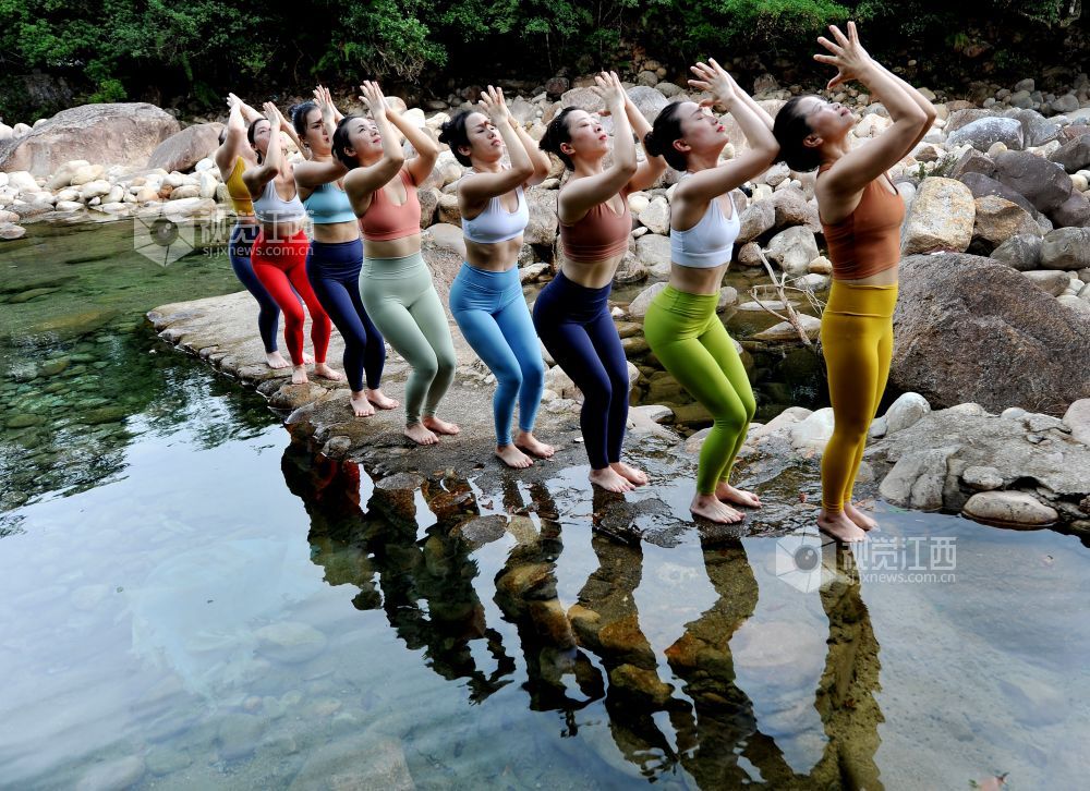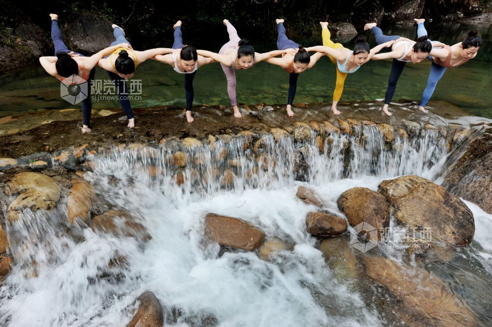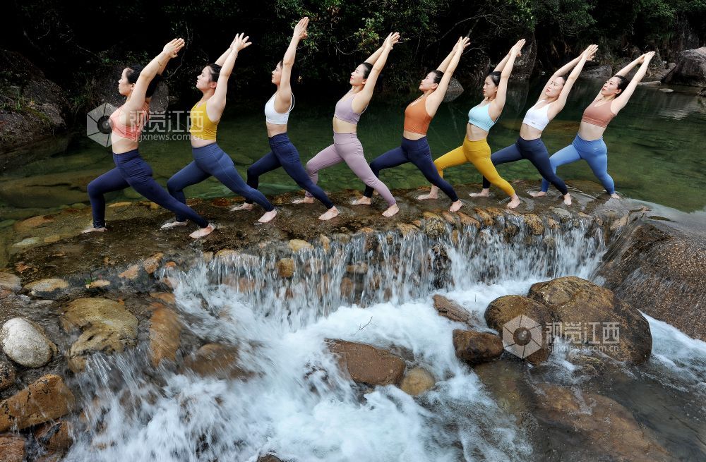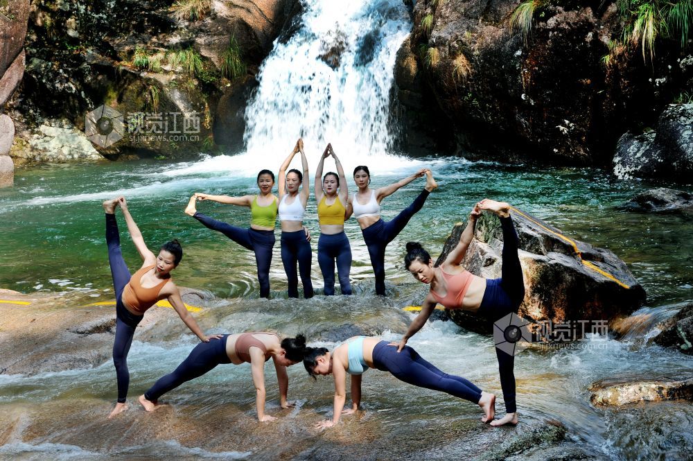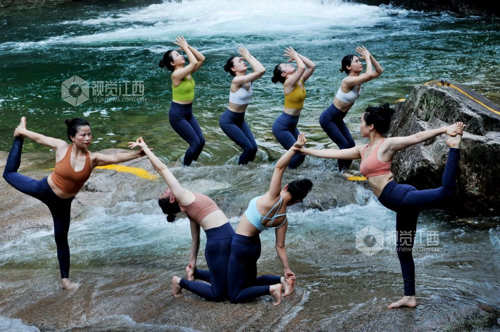 当天,江西省德兴市8名瑜伽达人,相约来到该市大茅山梧风洞景区,在景区峡谷上演绎各种造型优雅、形体美丽的水上瑜伽技艺,从而让这一高雅的体型技艺与深山峡谷溪流相映成趣,形成天人合一的美丽景象,给人以美的享受。