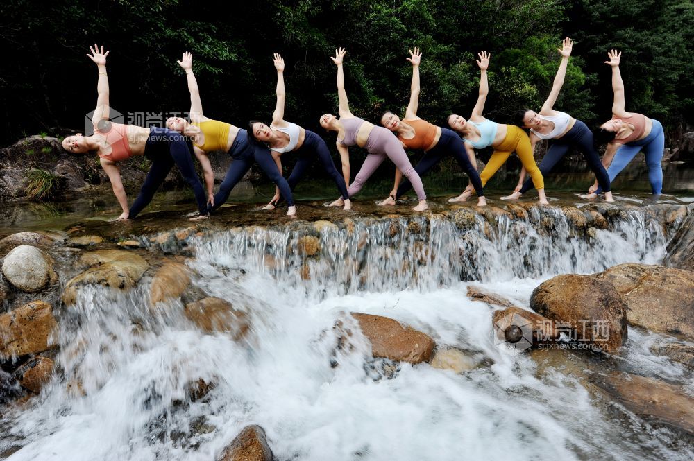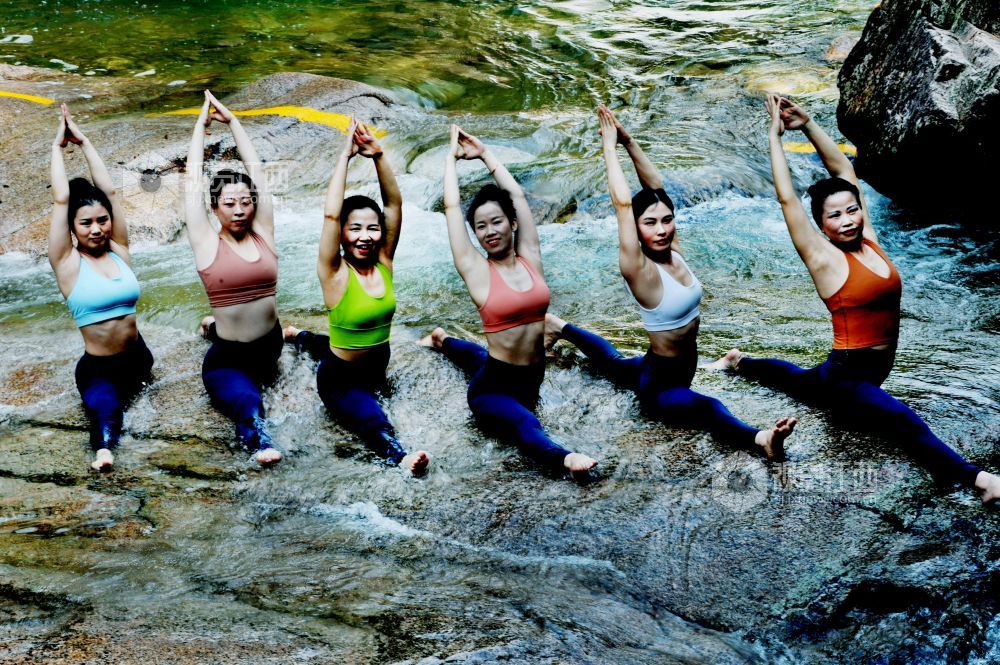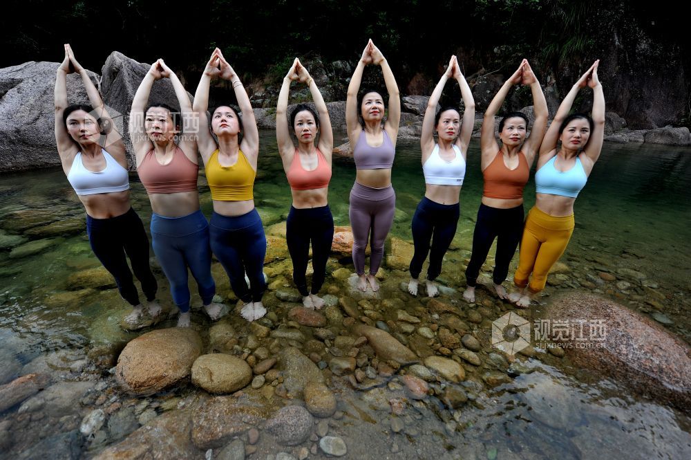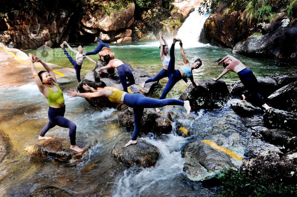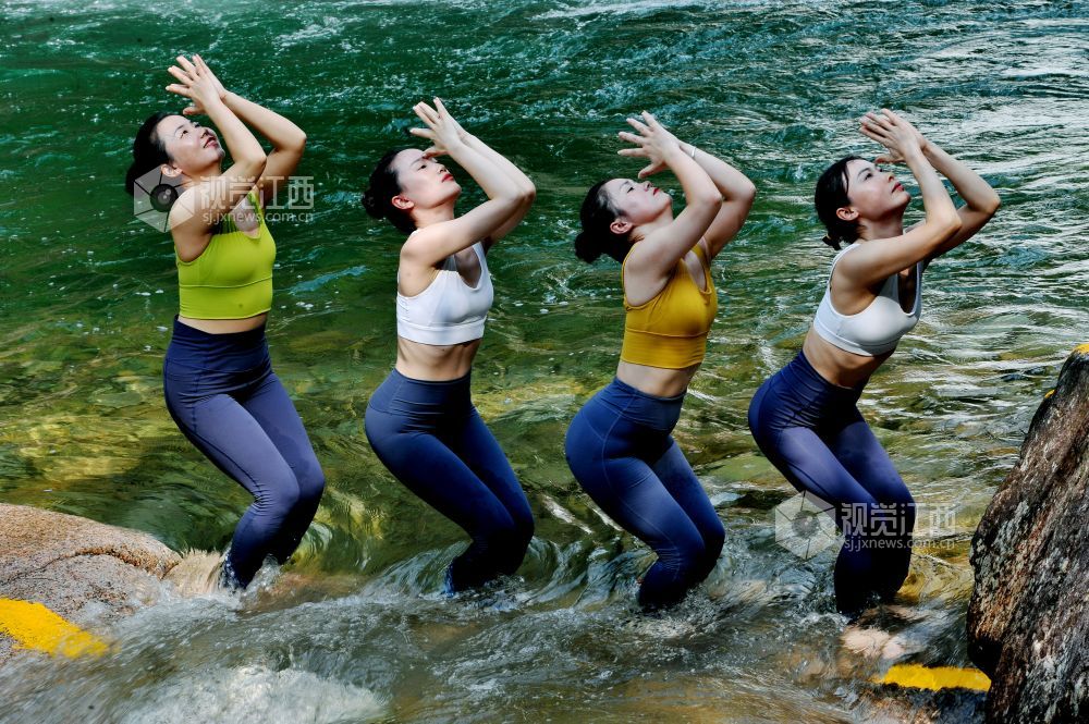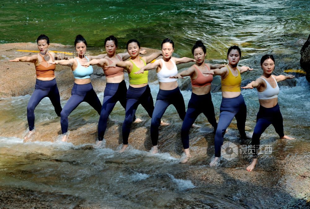 当天,江西省德兴市8名瑜伽达人,相约来到该市大茅山梧风洞景区,在景区峡谷上演绎各种造型优雅、形体美丽的水上瑜伽技艺,从而让这一高雅的体型技艺与深山峡谷溪流相映成趣,形成天人合一的美丽景象,给人以美的享受。