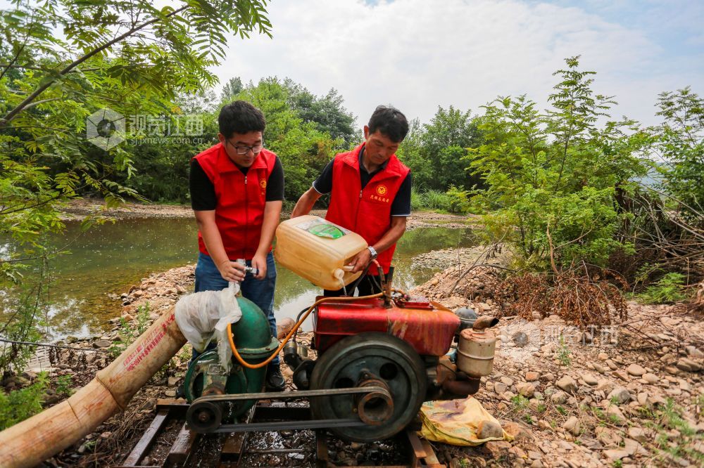 2022年8月3日,江西省瑞昌市范镇党员志愿者在该镇开展抽水抗旱服务。