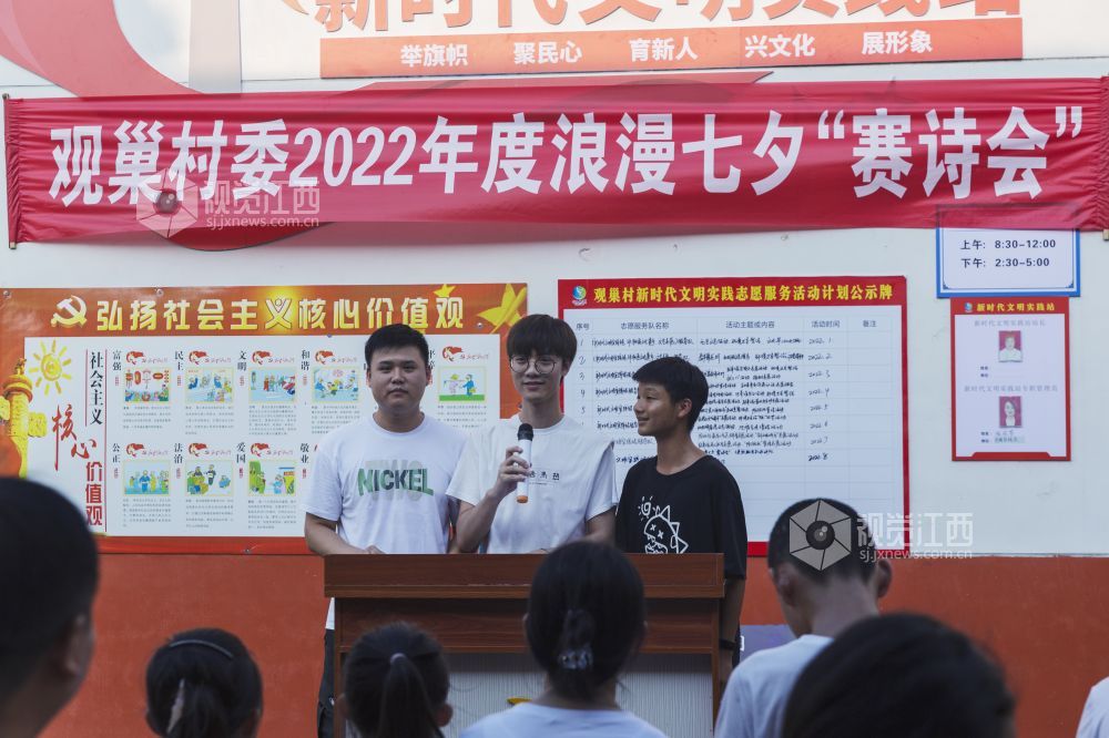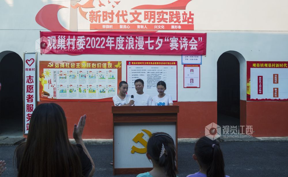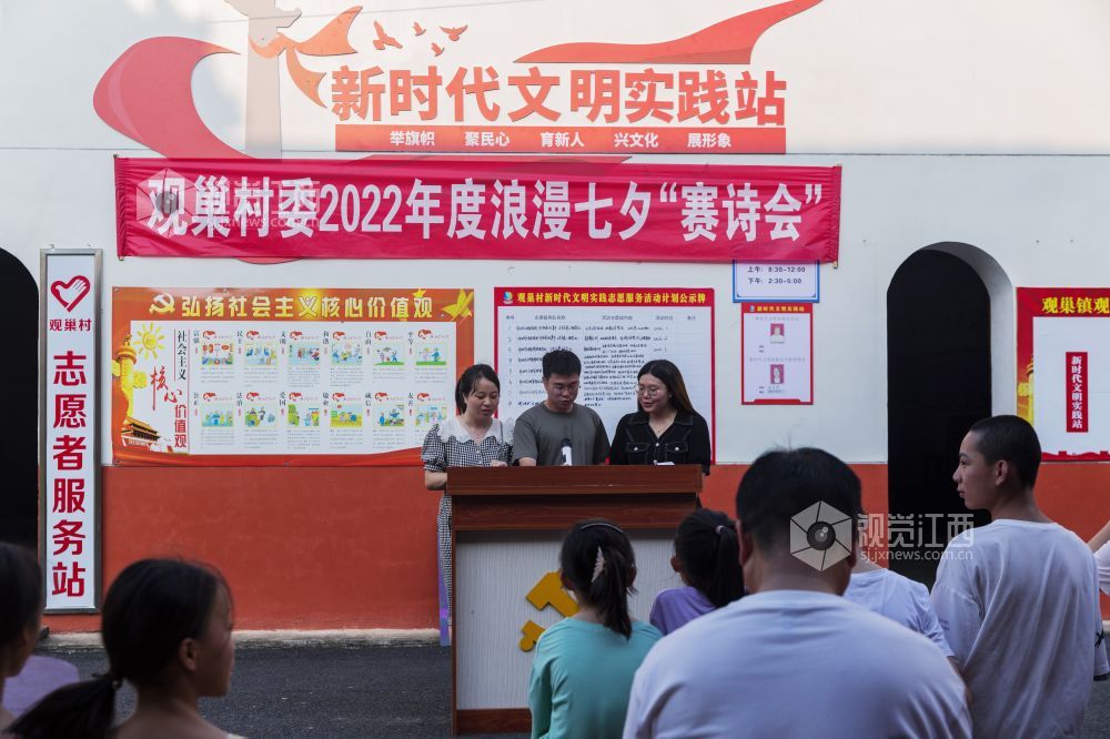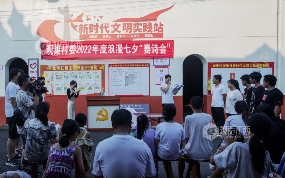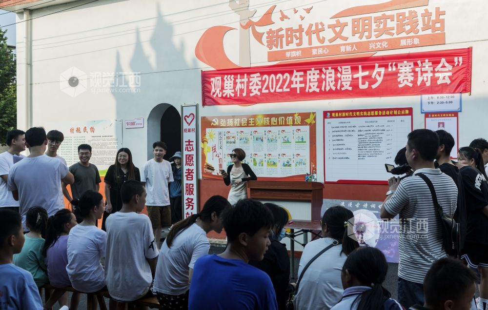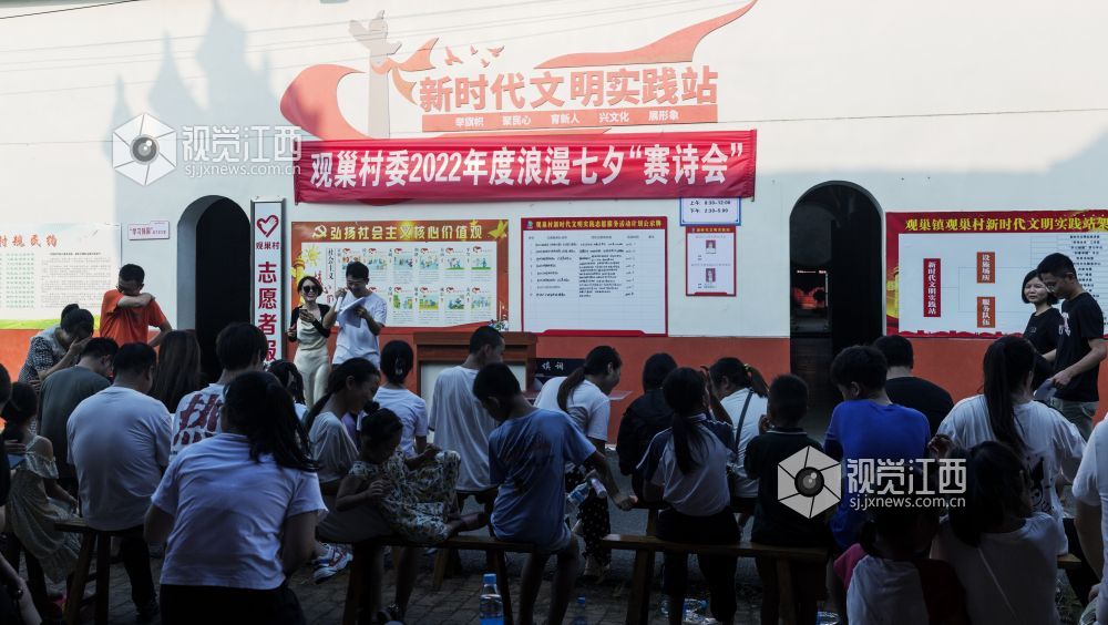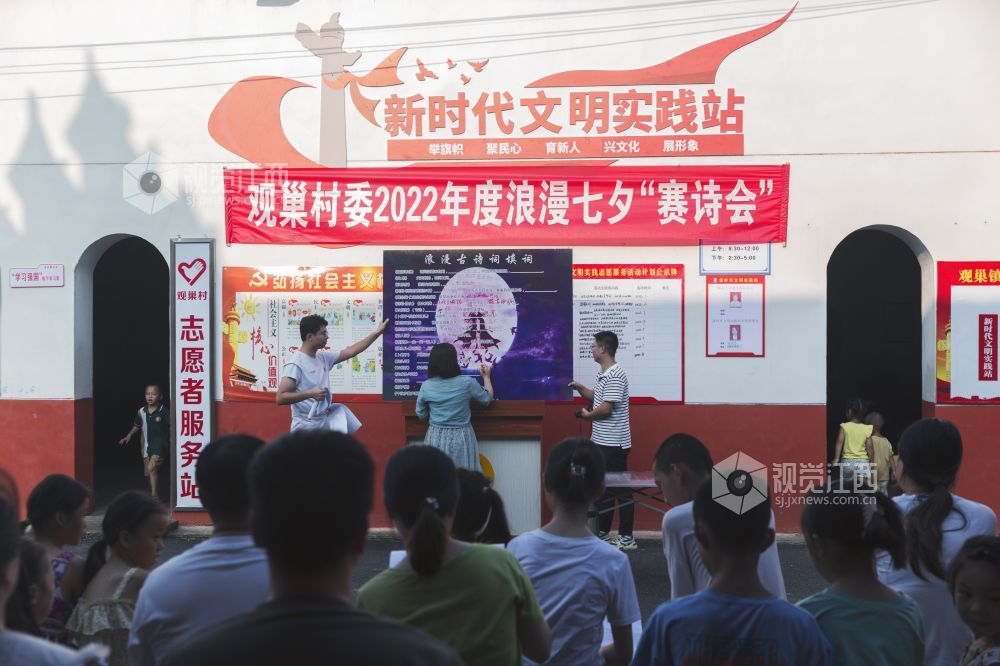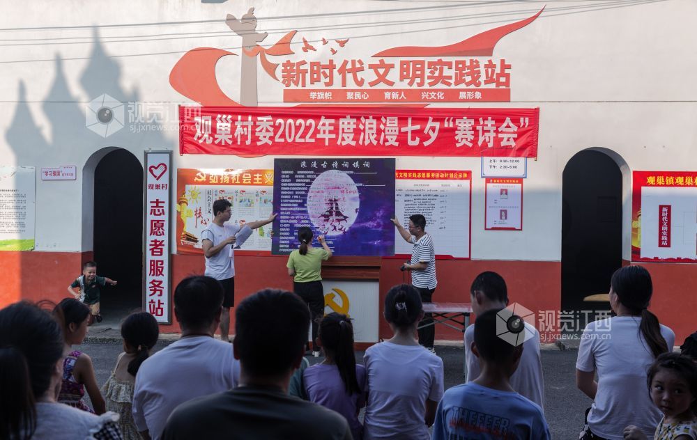 8月3日,在七仙女传说之乡的江西省新余市仙女湖区观巢镇文明实践站,组织了一场以古诗填词、古诗接龙、古诗朗诵为主要内容的以诗会友赛诗会,吸引众多村民和学生前来观看,使大家共同感受到了浪漫七夕和传统文化的魅力。