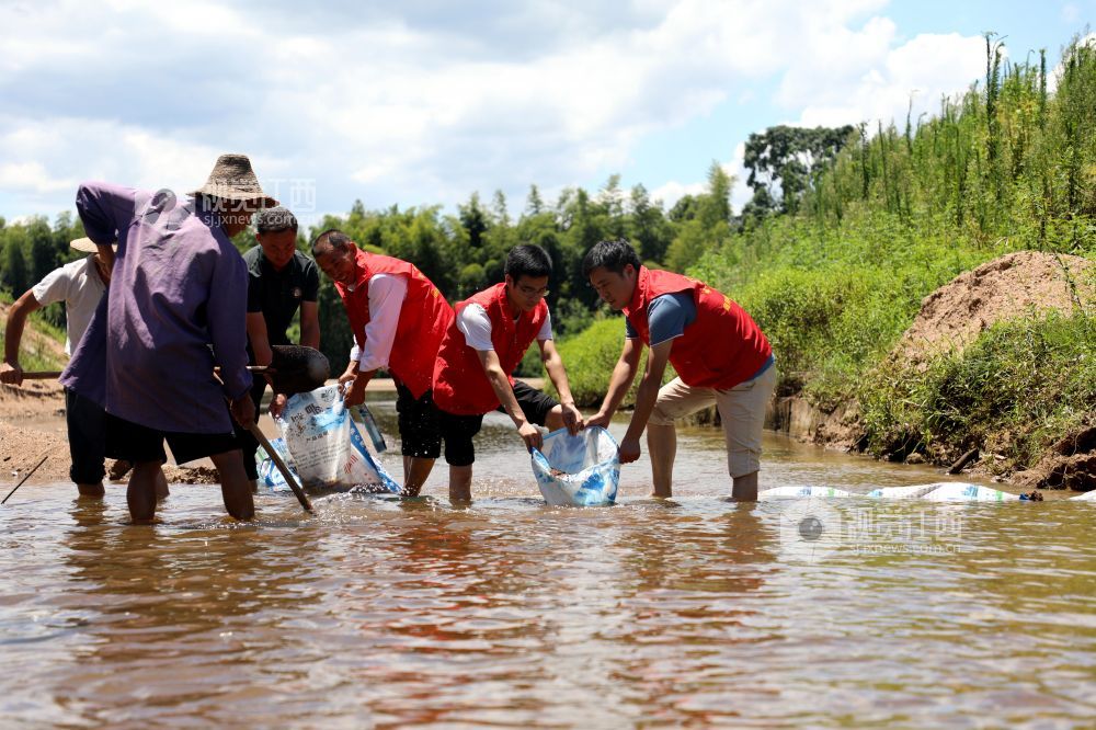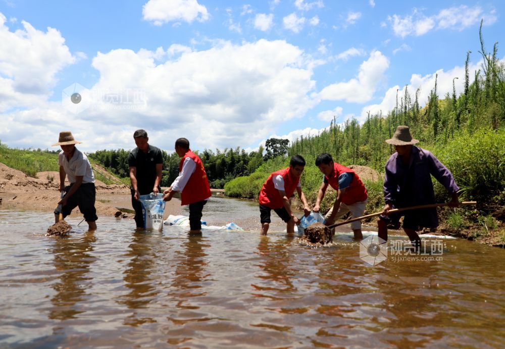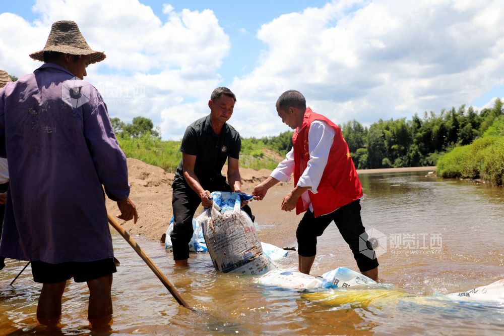 8月4日,当地人大代表与群众在鹿冈乡恩江河与罗家河交汇处构建蓄水“沙袋墙”,形成一个抗旱蓄水池,以供30KW单级双吸卧式离心泵将恩江河水倒抽到罗家河流中去,此次抽水倒灌可解决罗家村江口组、岭下等村小组1200亩水稻用水。