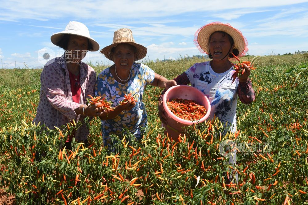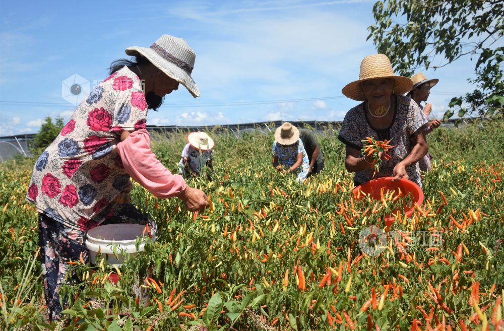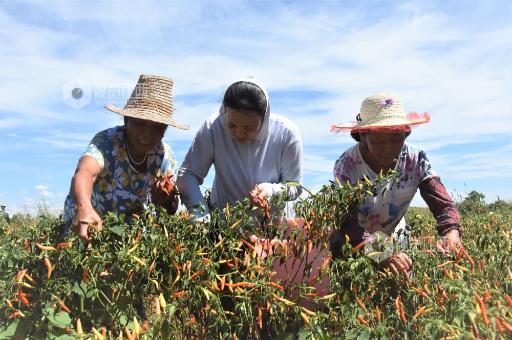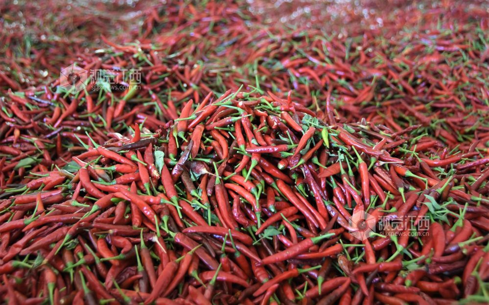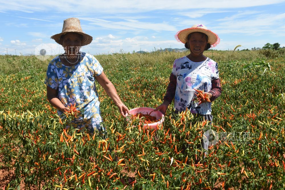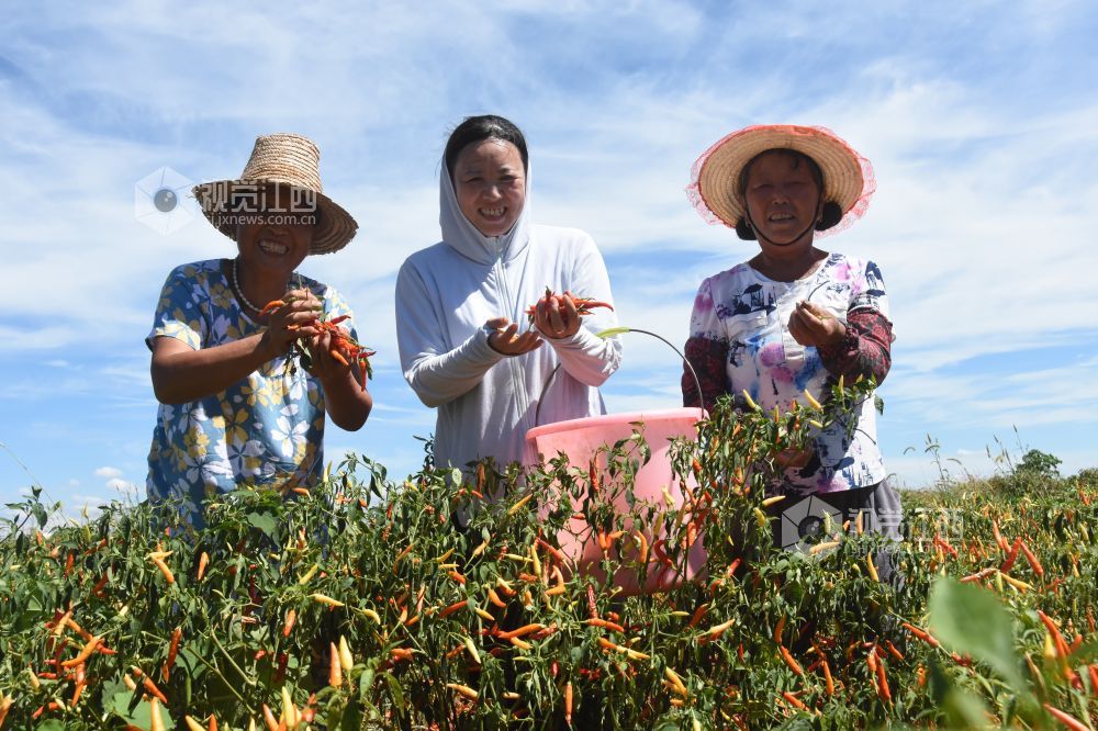 2022年8月6日,地处江西省鄱阳县油墩街镇乾湾村的鄱阳县湘满华辣椒种植基地 红彤彤的千亩辣椒长势喜人,合作社社员们正在釆摘新鲜的朝天椒,基地一派繁忙。