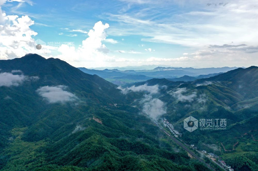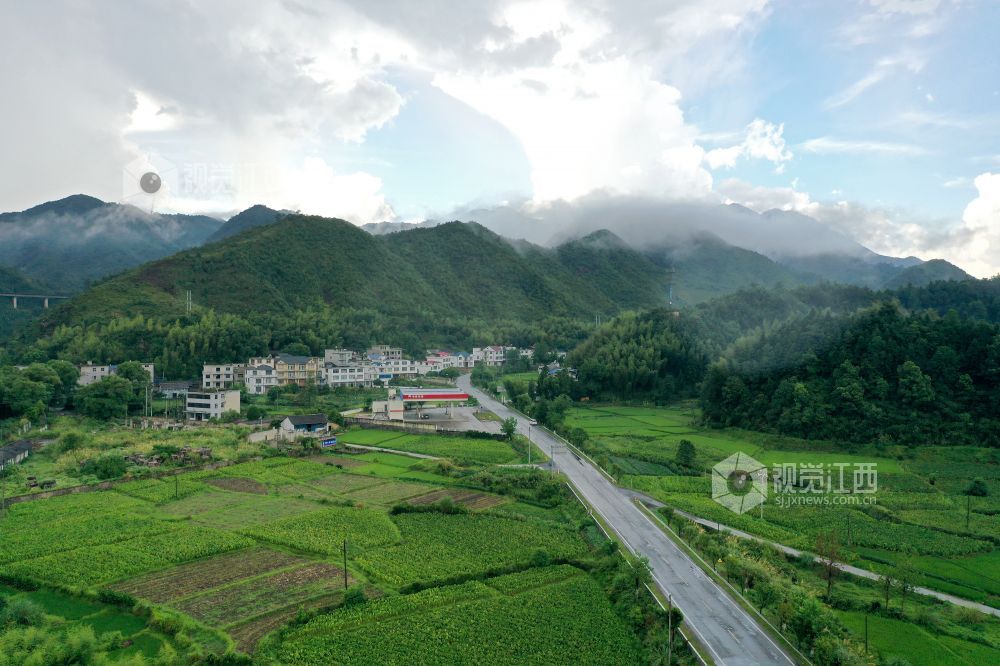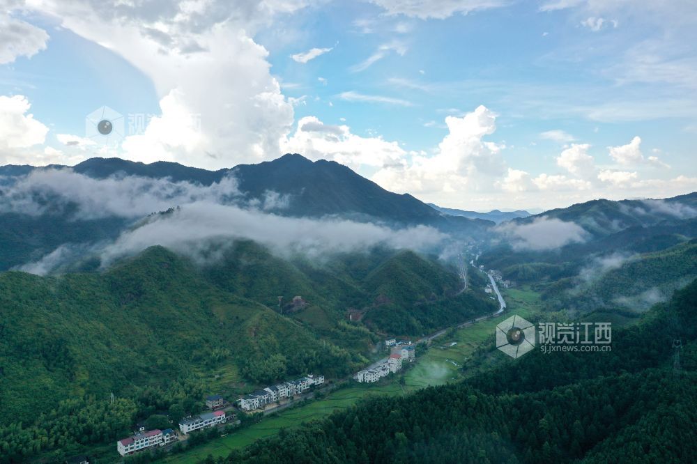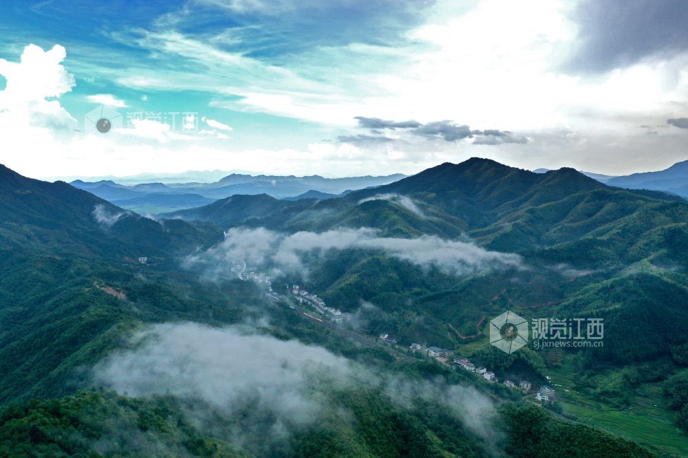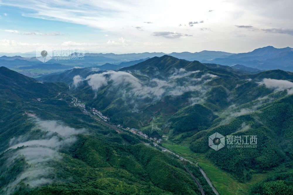 8月6日,航拍江西省上饶市铅山县武夷山镇云雾缭绕,绿水青山与民居互相映衬,构成一幅美丽的乡村画卷。近年来,铅山县大力实施乡村振兴战略,加强生态环境建设,发展特色农业产业,使农村面貌焕然一新。