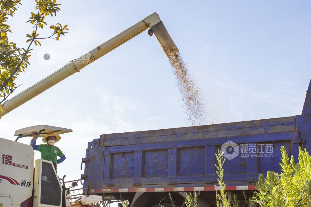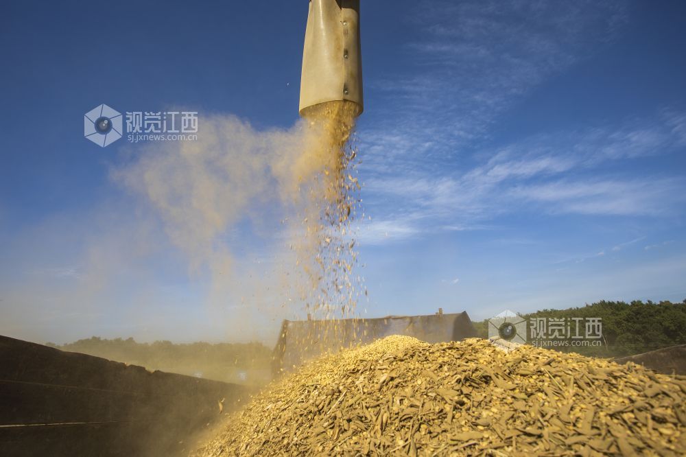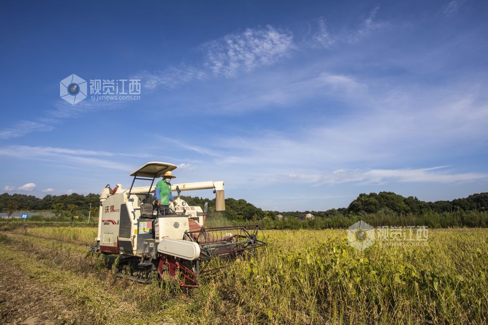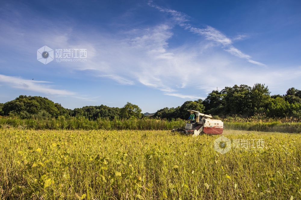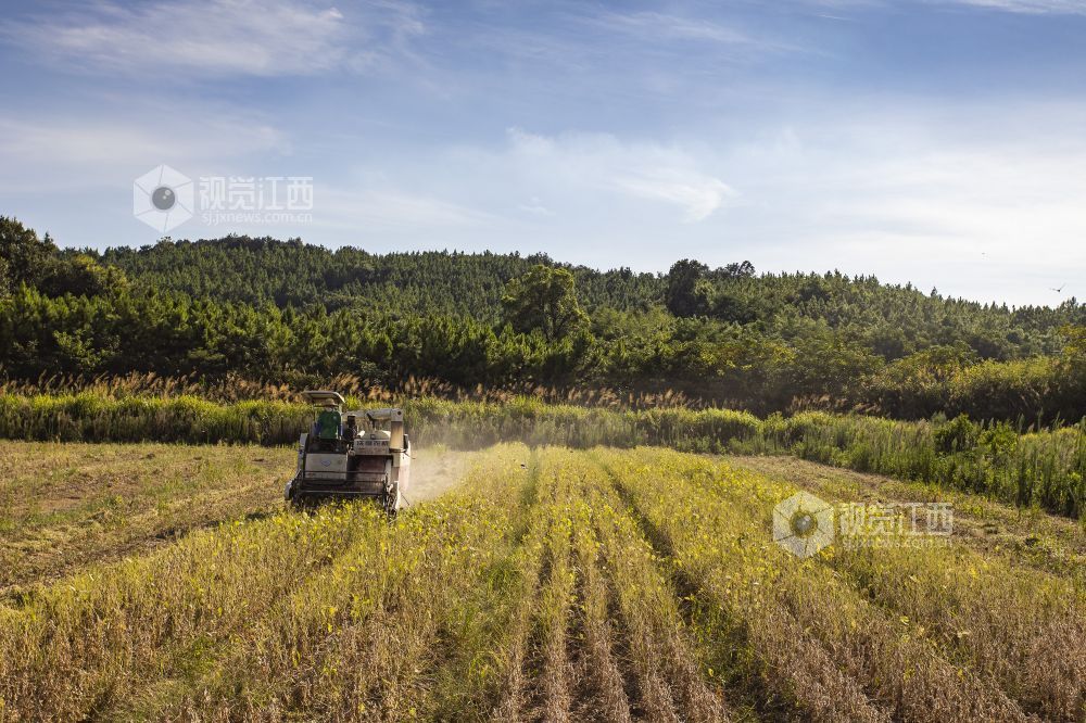 8月7日,立秋之际,江西湖口县流芳乡省级现代农业产业园青年村大豆种植基地,百余亩春大豆开镰收割。