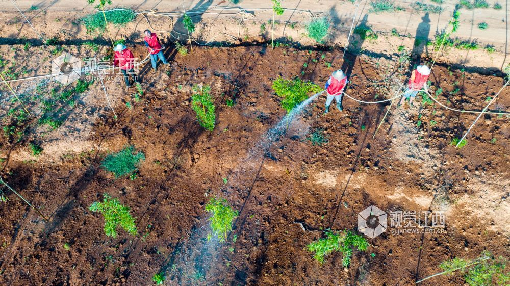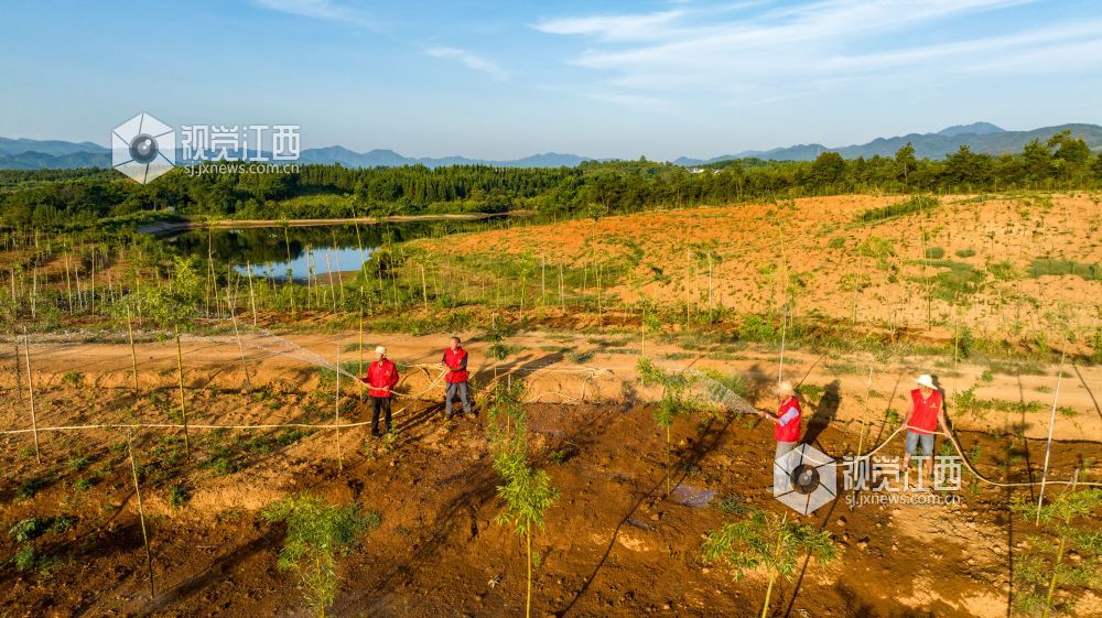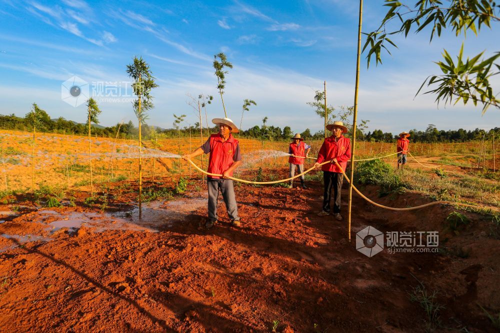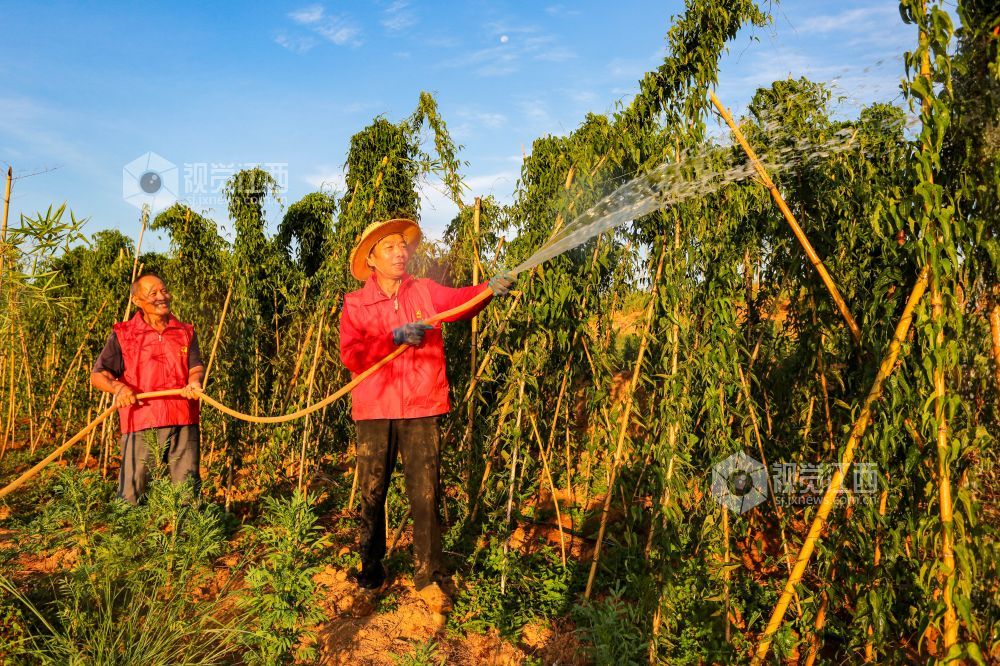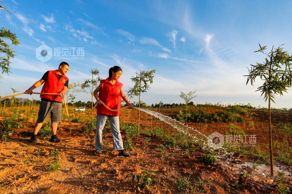 2022年8月15日,在江西省瑞昌市桂林街道永积村雷竹种植基地及山药良种繁育基地,党员志愿者积极投入到抗旱保苗工作。