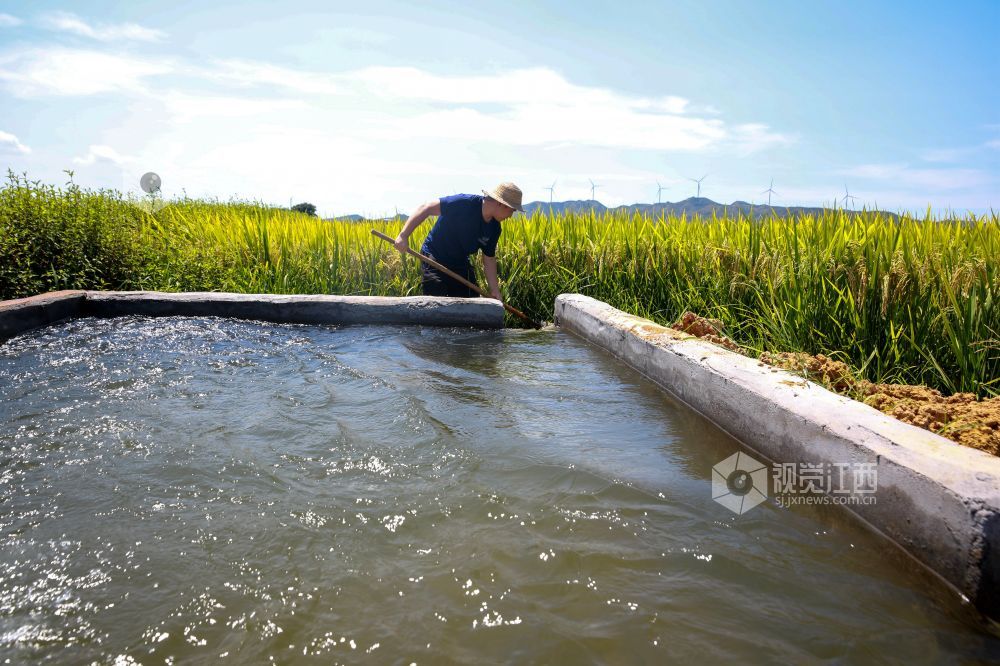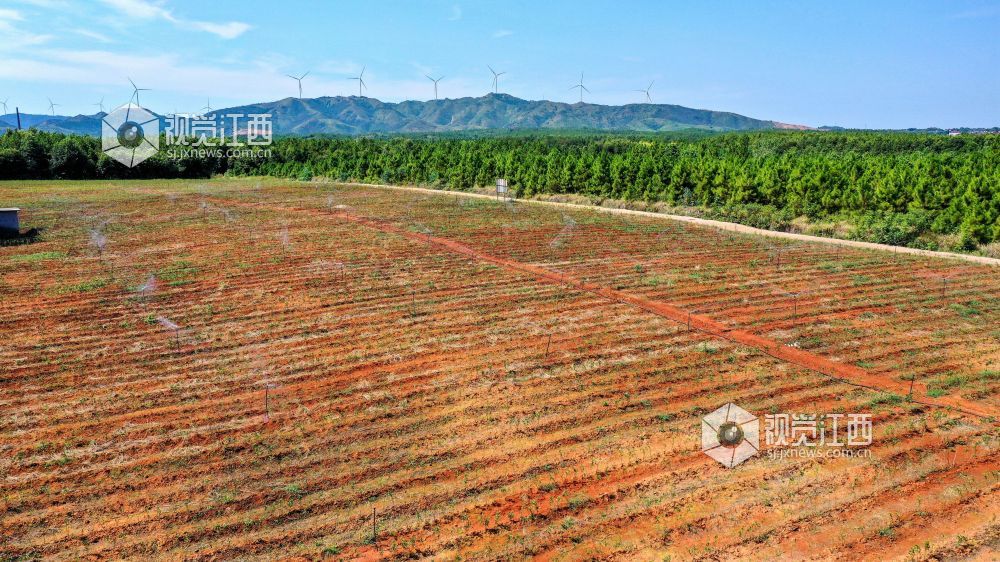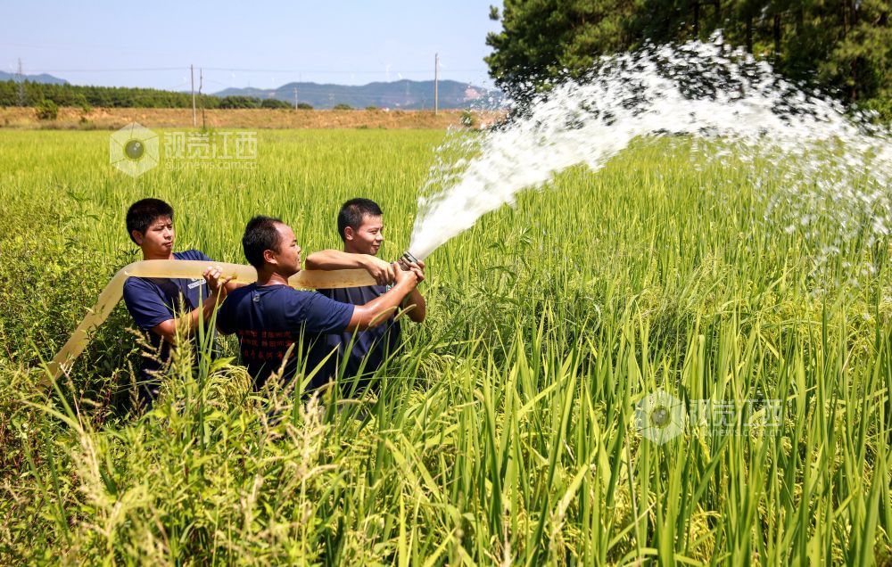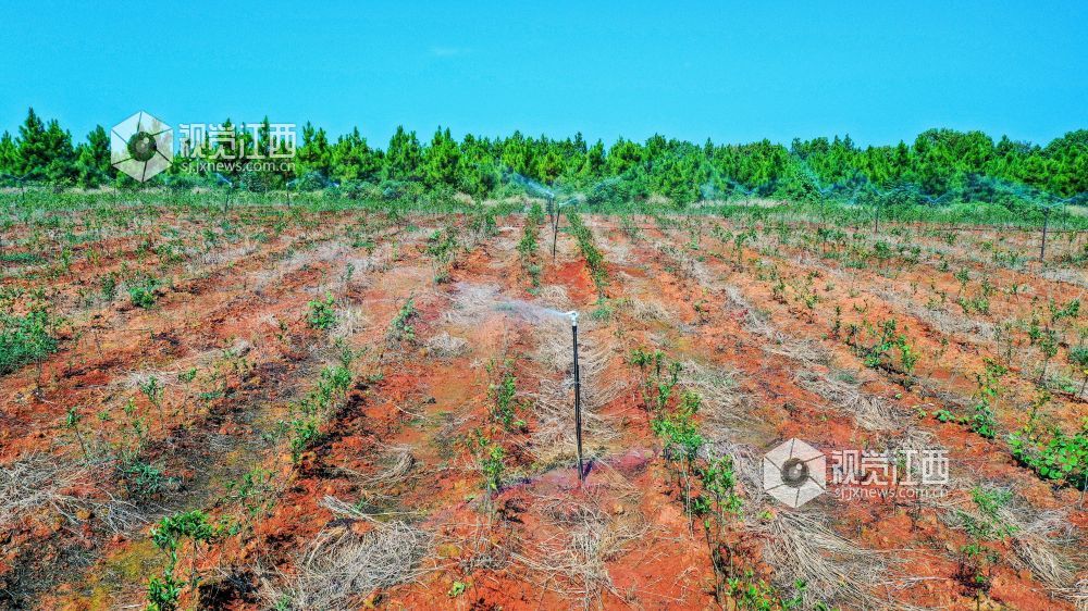 2022年8月17日,江西省吉安市吉水县枫江镇下陇洲村白茶基地,新安装的喷灌设备正在为白茶苗解“渴”。面对持续高温少雨天气,吉水县科学统筹资金和设备投入抗旱工作,各级党员干部和群众奋战抗旱一线,力争将旱情损失降低到最小,确保秋粮丰收。