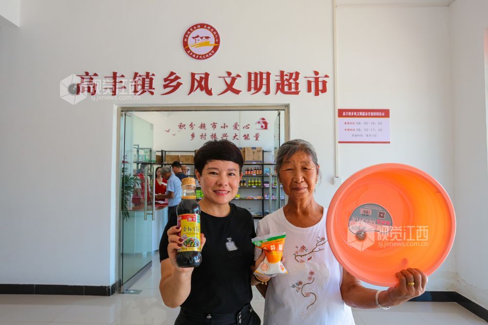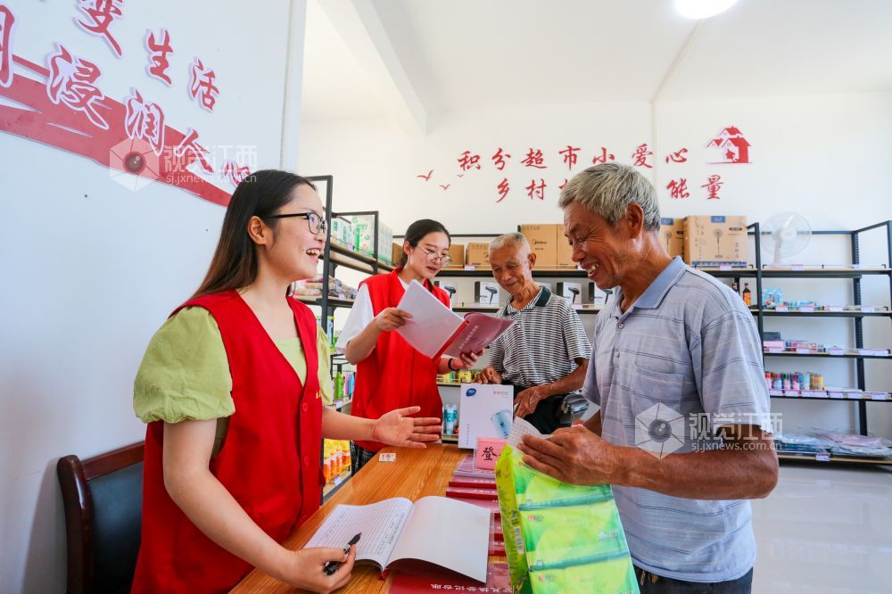 2022年8月18日,江西省瑞昌市高丰镇乐丰村村民在镇“乡风文明超市”兑换生活用品。据了解,在新时代文明实践活动中,瑞昌市高丰镇设立“乡风文明超市”,建立文明积分制度,获取的积分可以到该超市兑换生活日用品和土特产。此举既让村民感受到真真切切的实惠,又激发了他们投身文明实践、志愿服务、集体公益活动的热情。