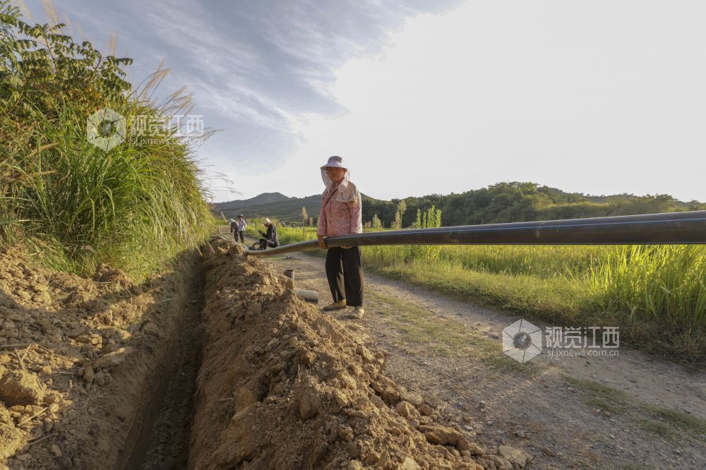 8月19日,江西省湖口县流芳乡青年村在抢铺节水抗旱管道。管道抽水抗旱精准、节约,不会造成水源浪费。旱情发生以来,该县坚持蓄好水、用好水、管好水的原则,科学调度、精准施策、高效抗旱。