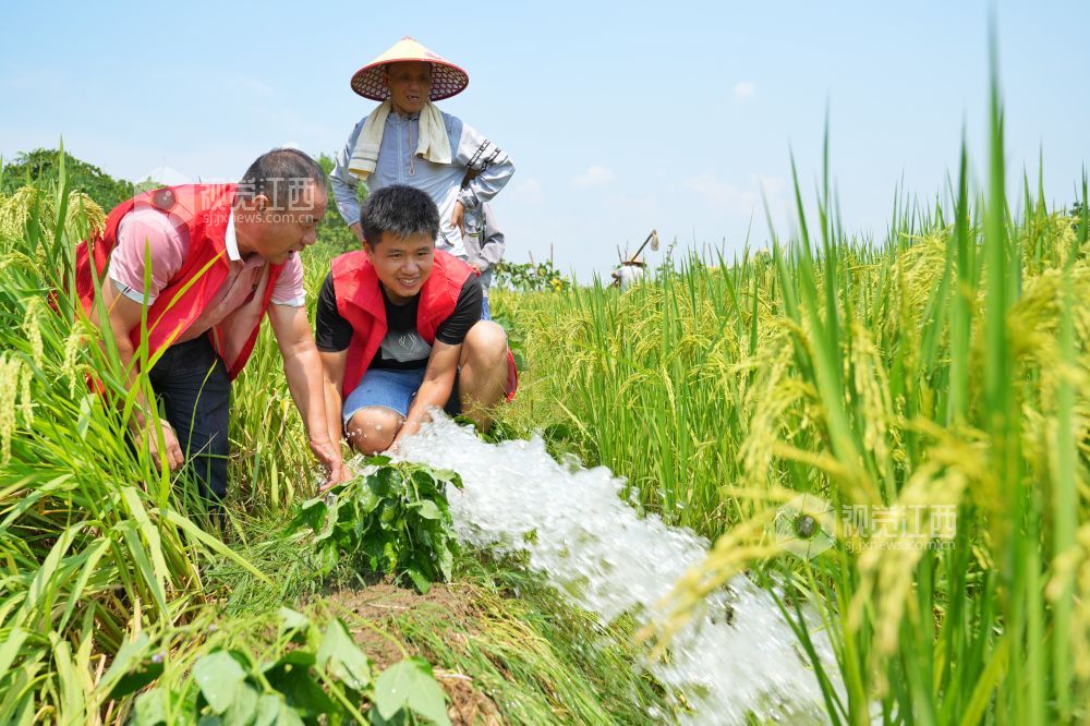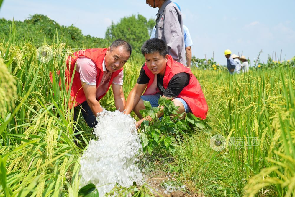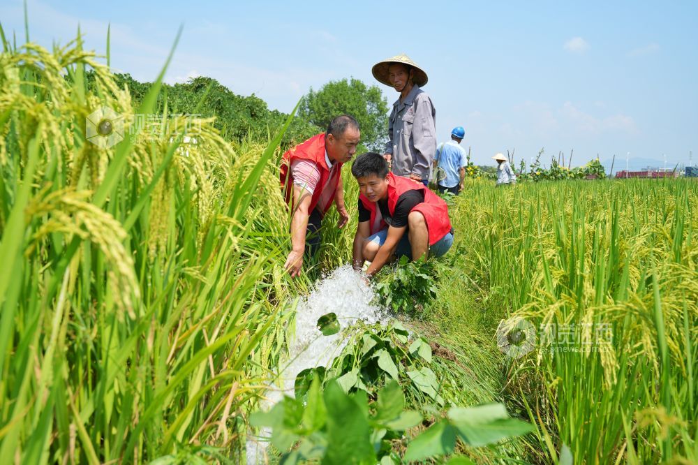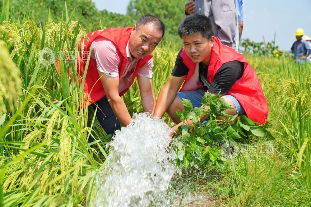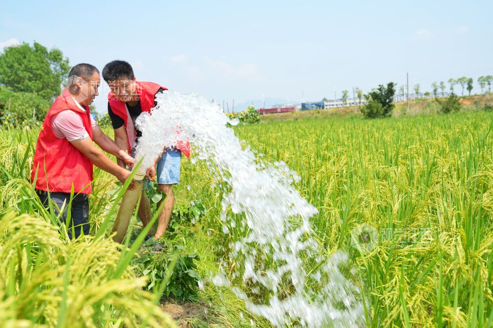 2022年8月24日,江西省萍乡市芦溪县芦溪镇丰泉村,党员志愿者帮助农户水稻进行抗旱浇灌。
