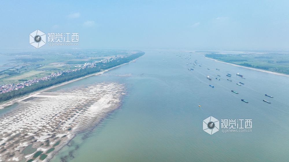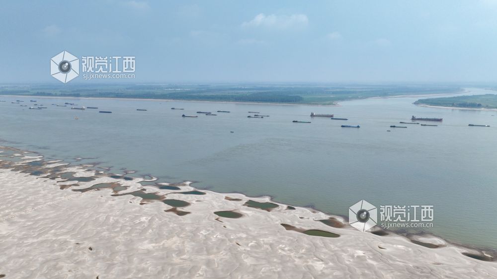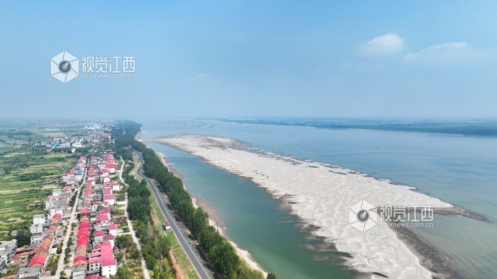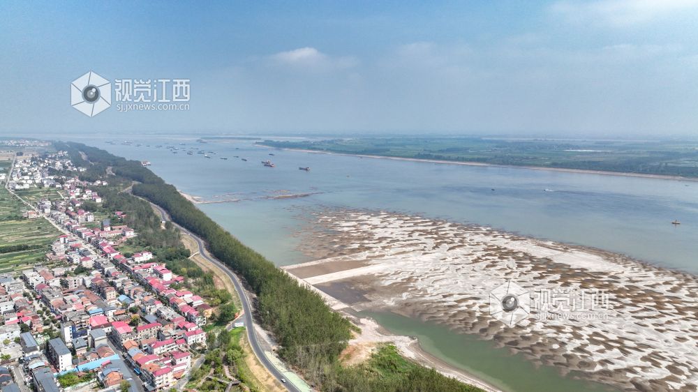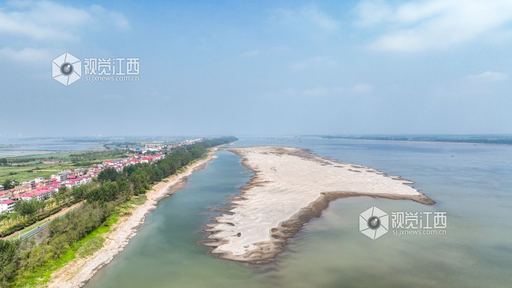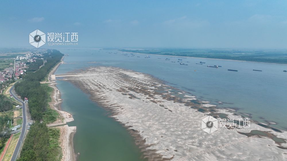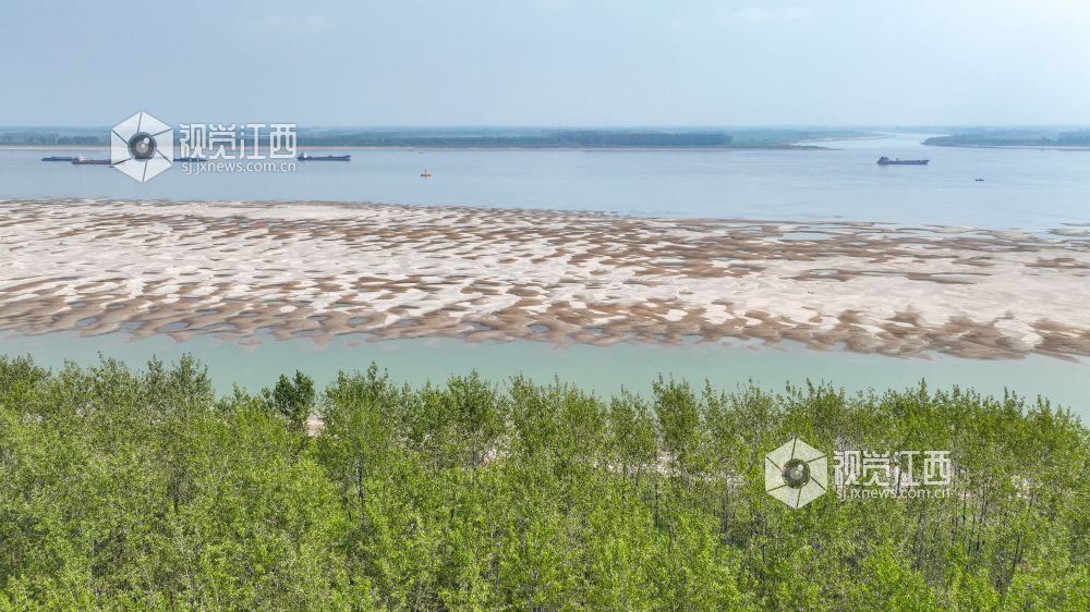 连日来,受降水偏少及持续高温影响,长江九江段水位持续降低,在九江市柴桑区城子镇,长江裸露出部分滩涂,较往年提前三个多月。
