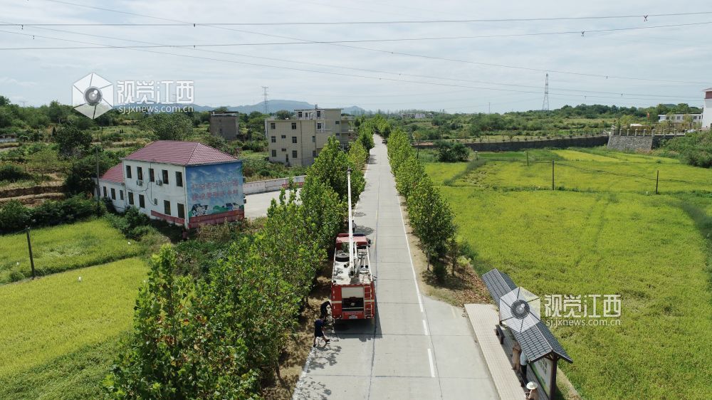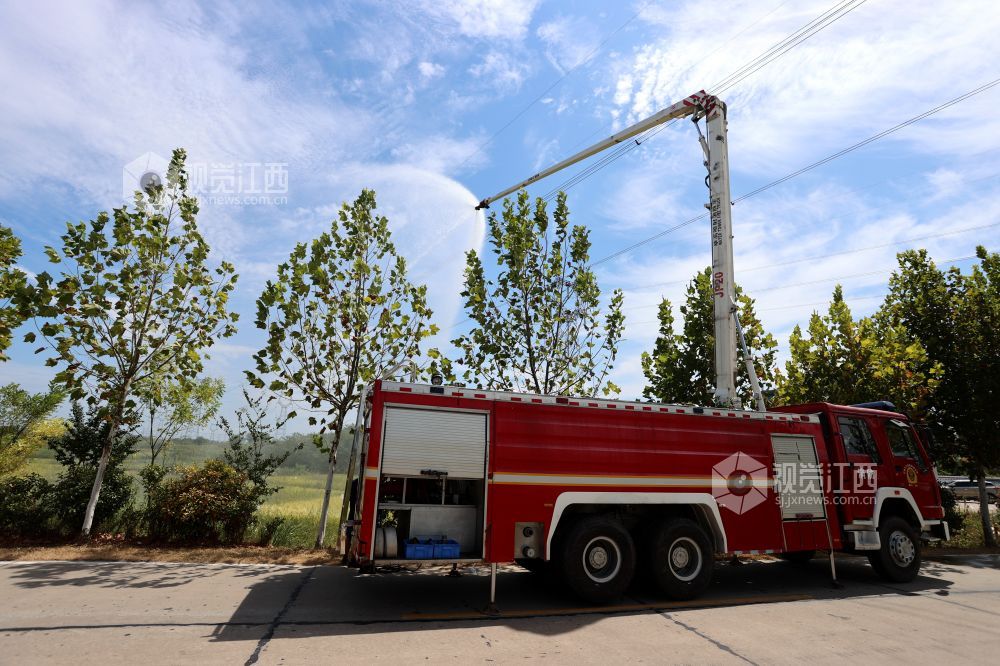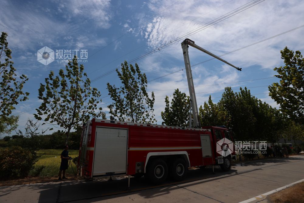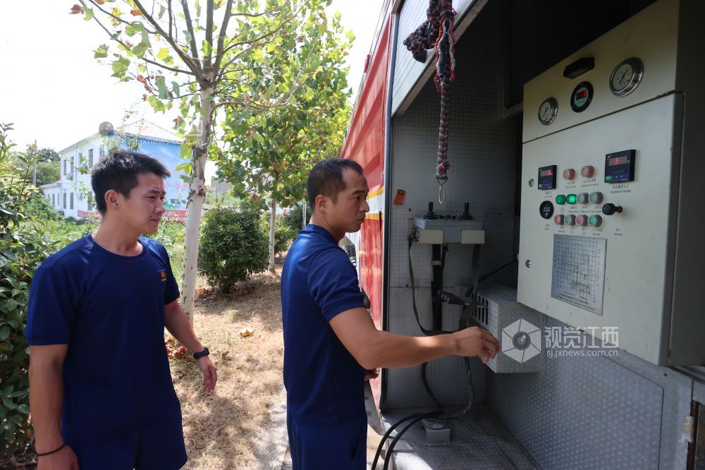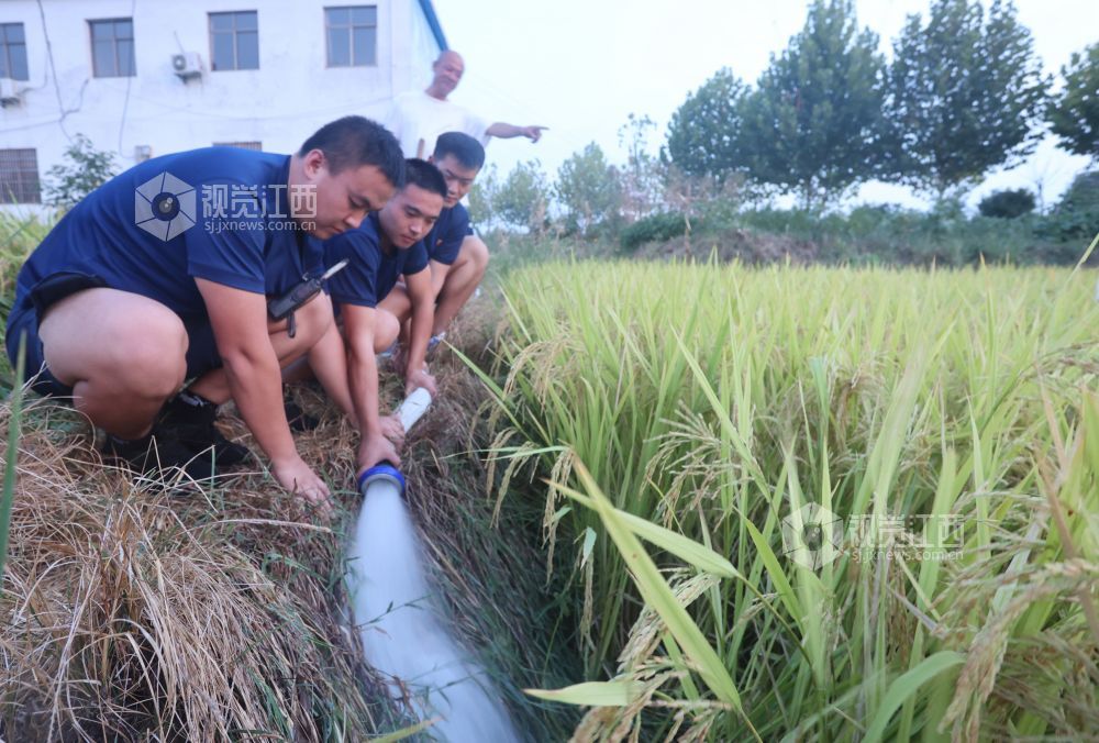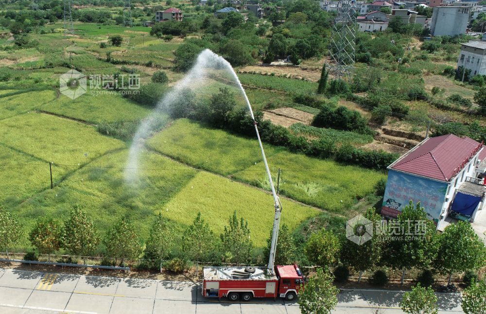 2022年8月26日,江西省九江市湖口县消防救援大队充分发挥消防车储水量大,运输方便的优势,将水送到马影镇观桥村群众家门口和田间地头,对稻田进行喷洒灌溉。